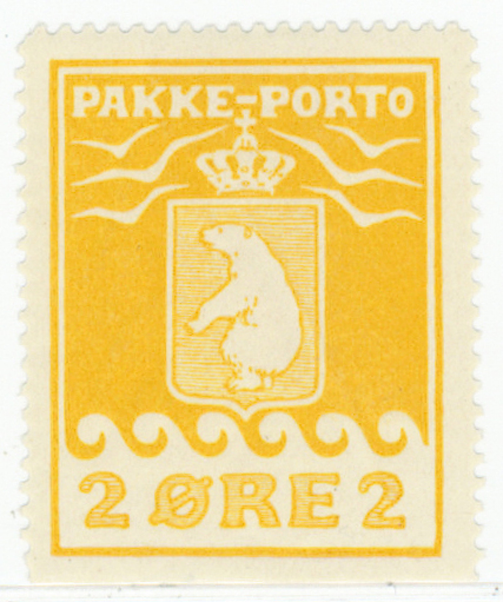 1915 Pakkeporto 2 äyriä keltainen F. 5 I B, käyttämätön * merkki, alareuna hammastamaton