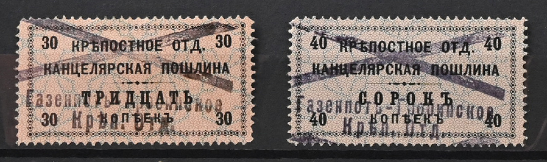 Chancellery stamps 30 and 40 kop used with Hazenpot cancels, fine condition