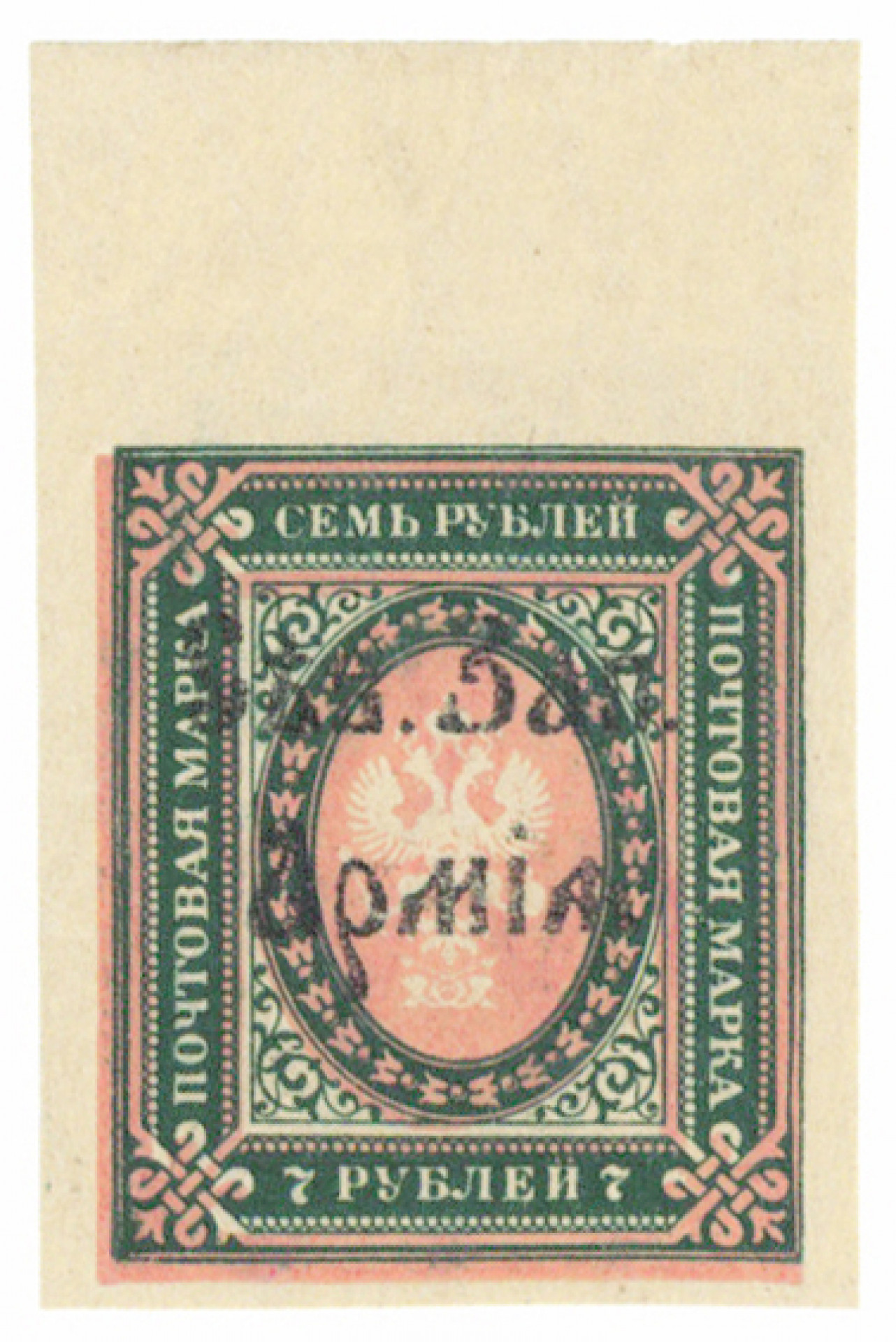 Luoteis-armeija 1919, 7 ruplaa postituore ** merkki arkin yläriviltä, ex T. Pateman