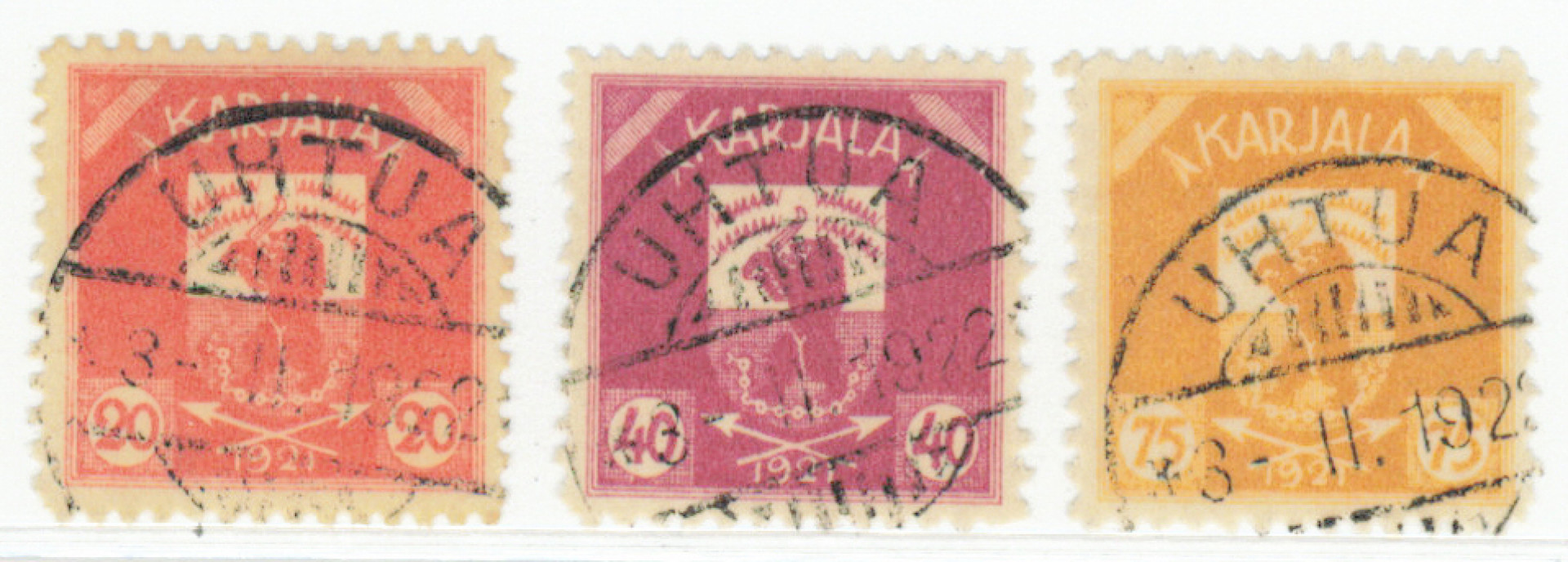 20 penniä, 40 penniä ja 75 penniä lähes loistot Uhtua 1922