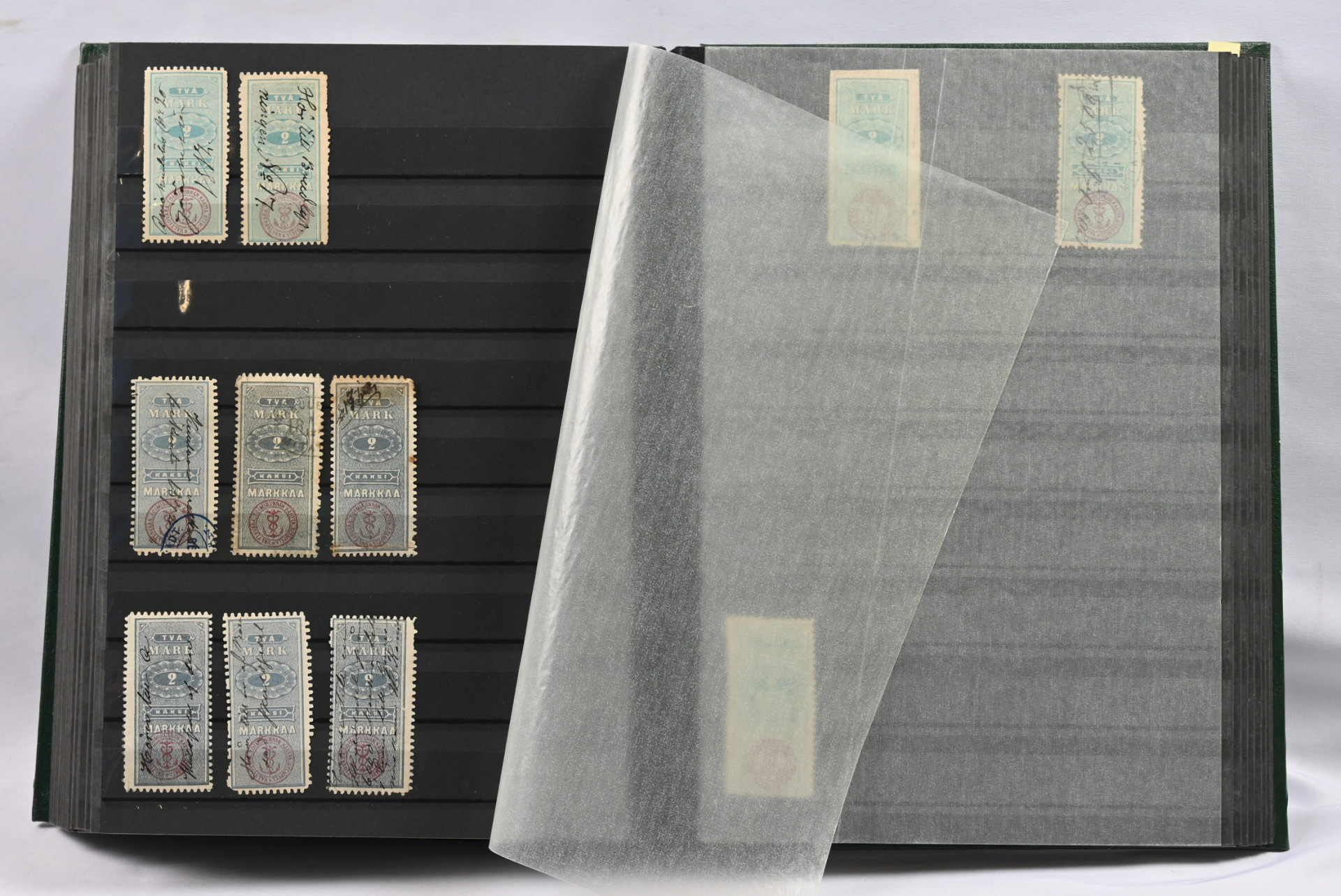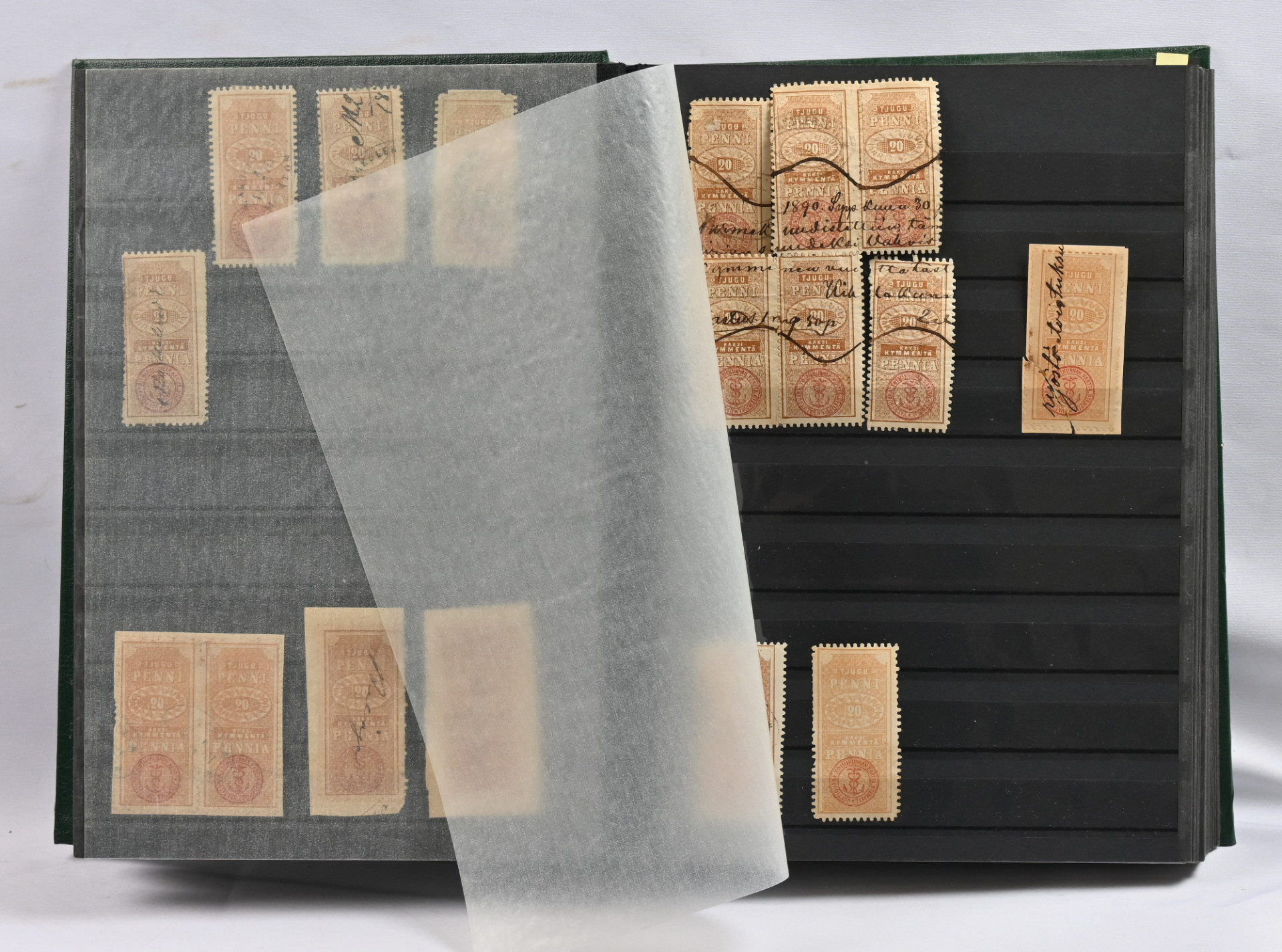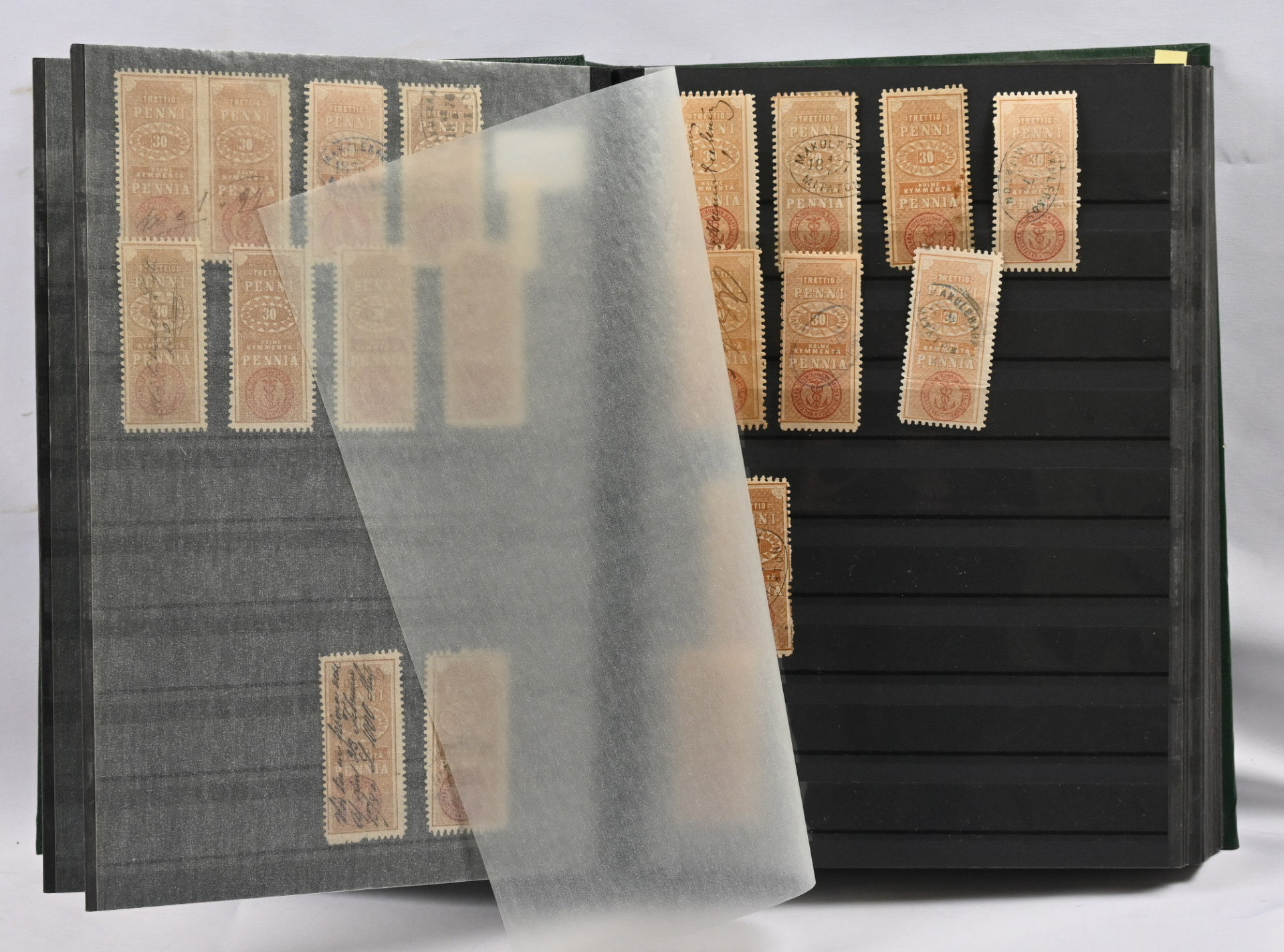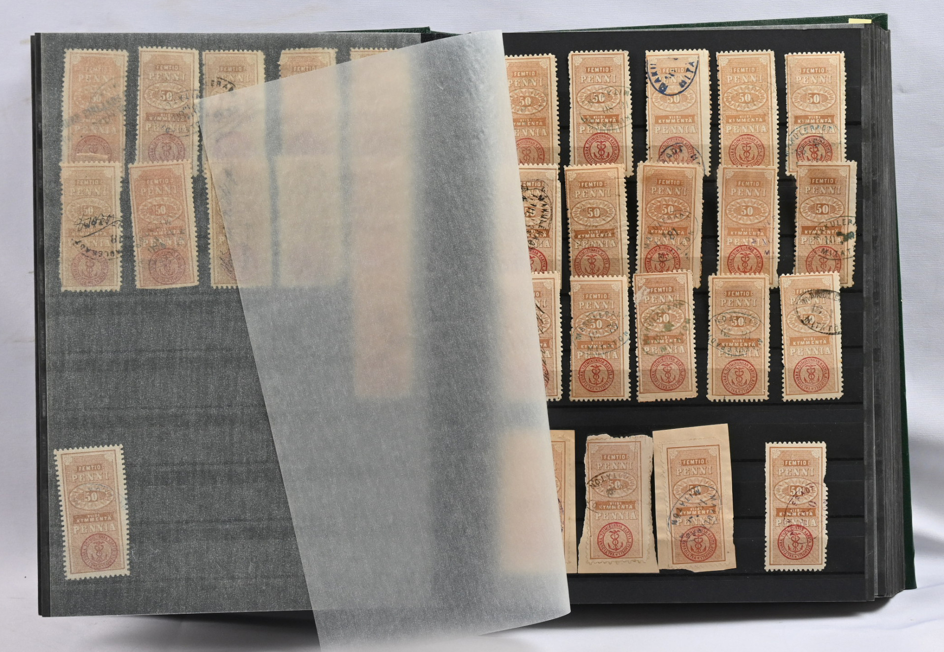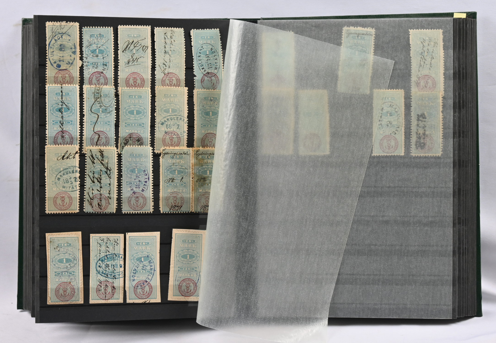 1866 iso varasto / tutkimuserä säiliökirjassa aineistoa 10 pennistä 20 markkaan noin 570 merkkiä vaihtelevalla laadulla. Mukana ex Fabergé merkkejä! Tutkittavaa