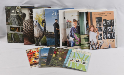 2010 - 2023 kaikki kahdeksan ”Ålands frimärken berättar” vuosikirjat. Lisäksi muutama vanhempi vuosilajitelma