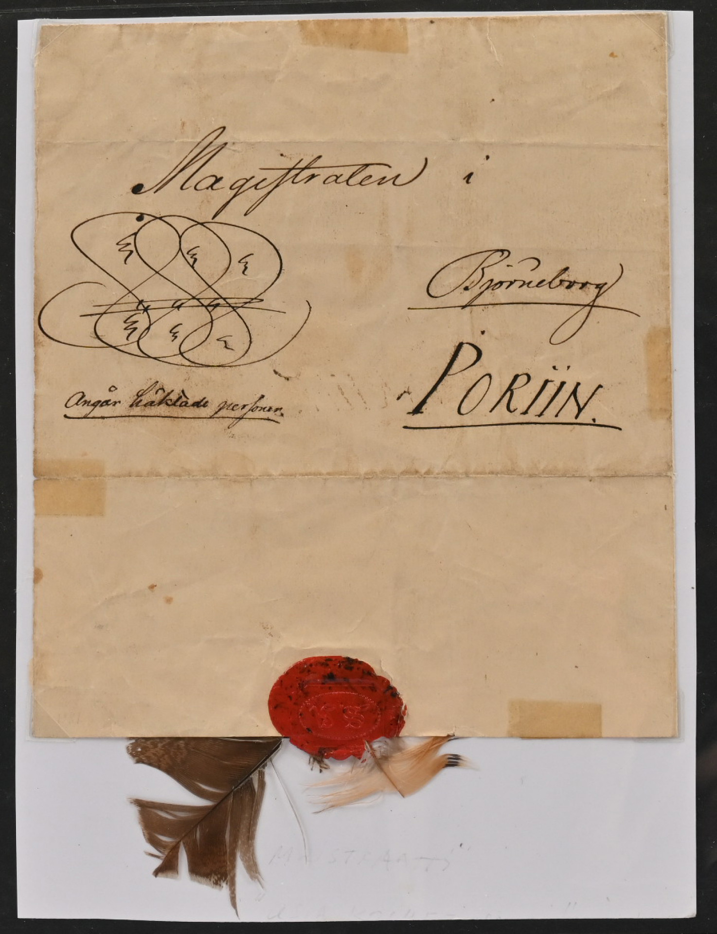 Kahden sulan kirje Poriin mutta hiukan tavanomaista ajan patinaa ja liimakkeiden jäljet. Lisäksi hieno Meanderkirje 1775 Loviisaan