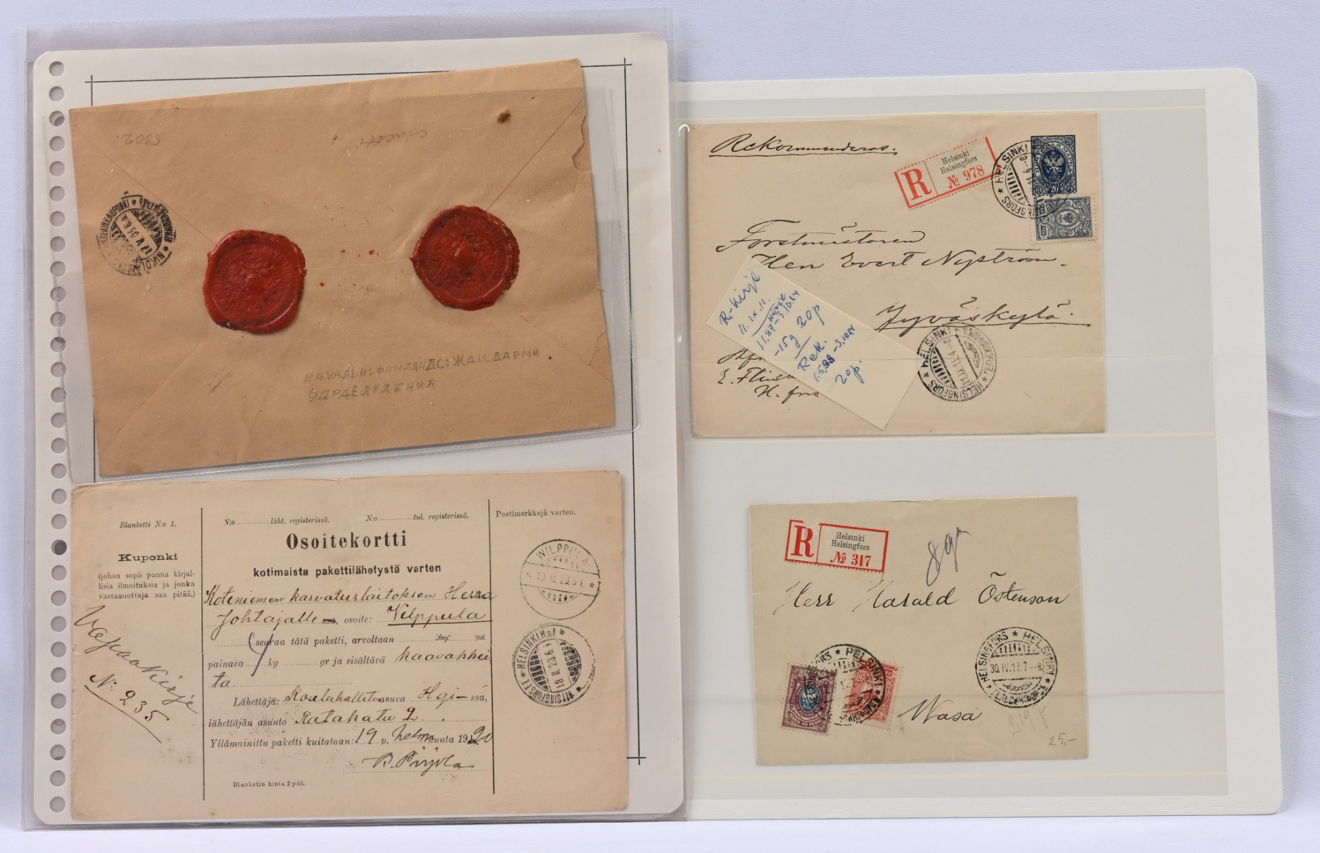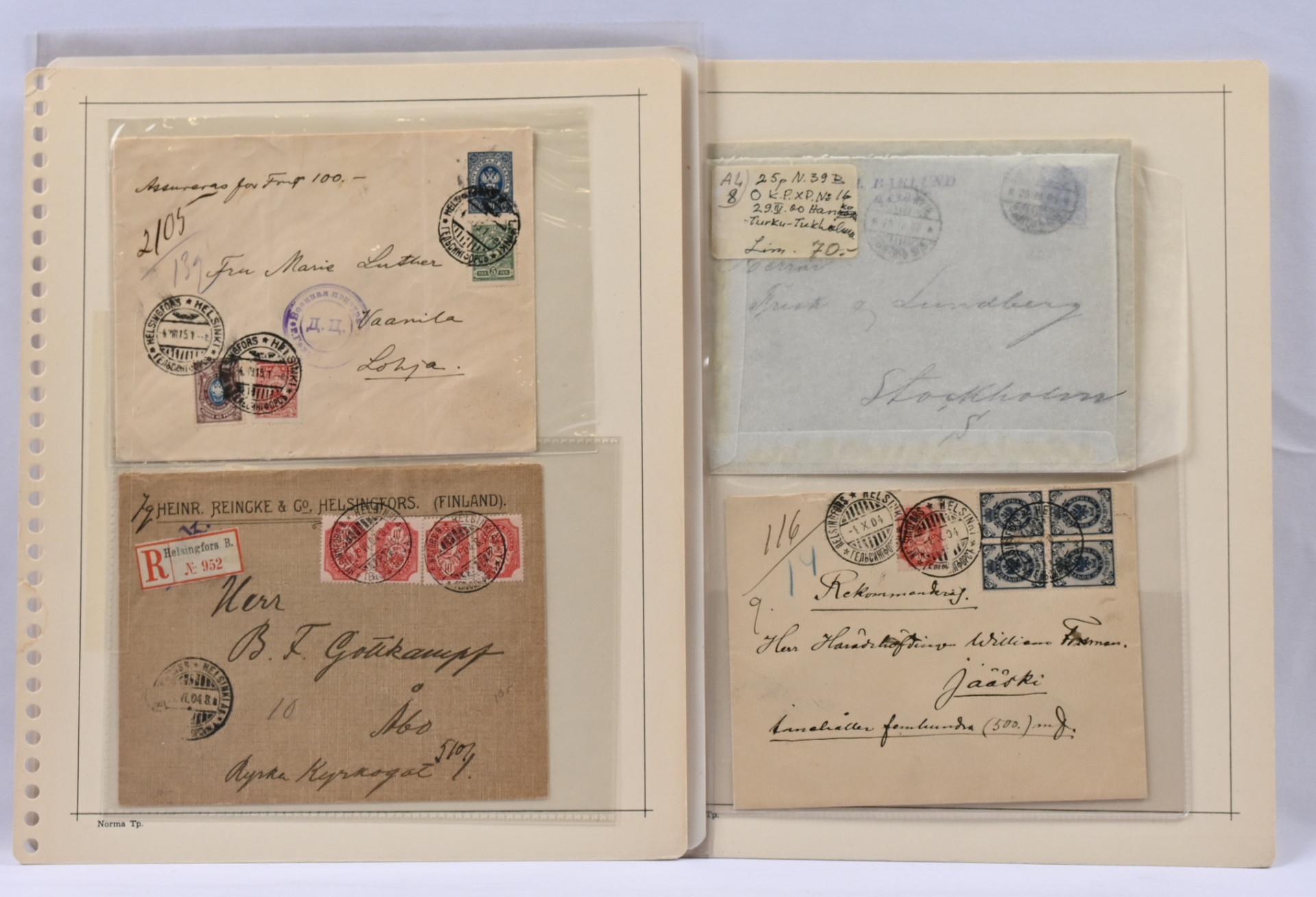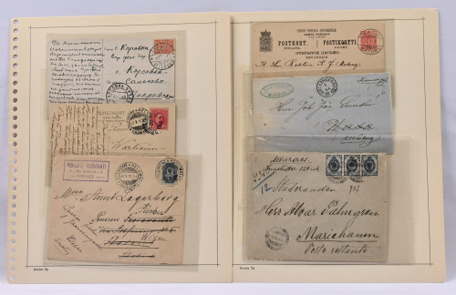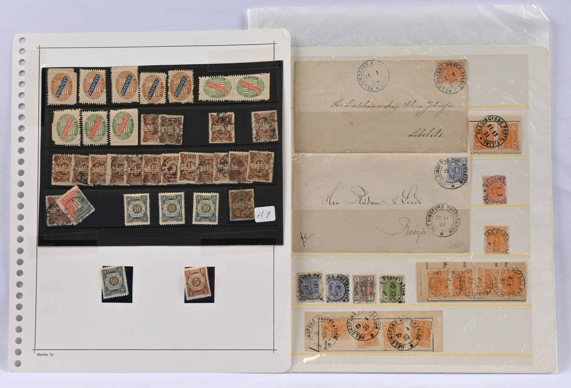Helsinki-leimamateriaalia lähetyksillä 12 kokoelmasivulla. Lisäksi vähän irtomerkkejä ja Helsingin kaupungin paikallismerkkejä.