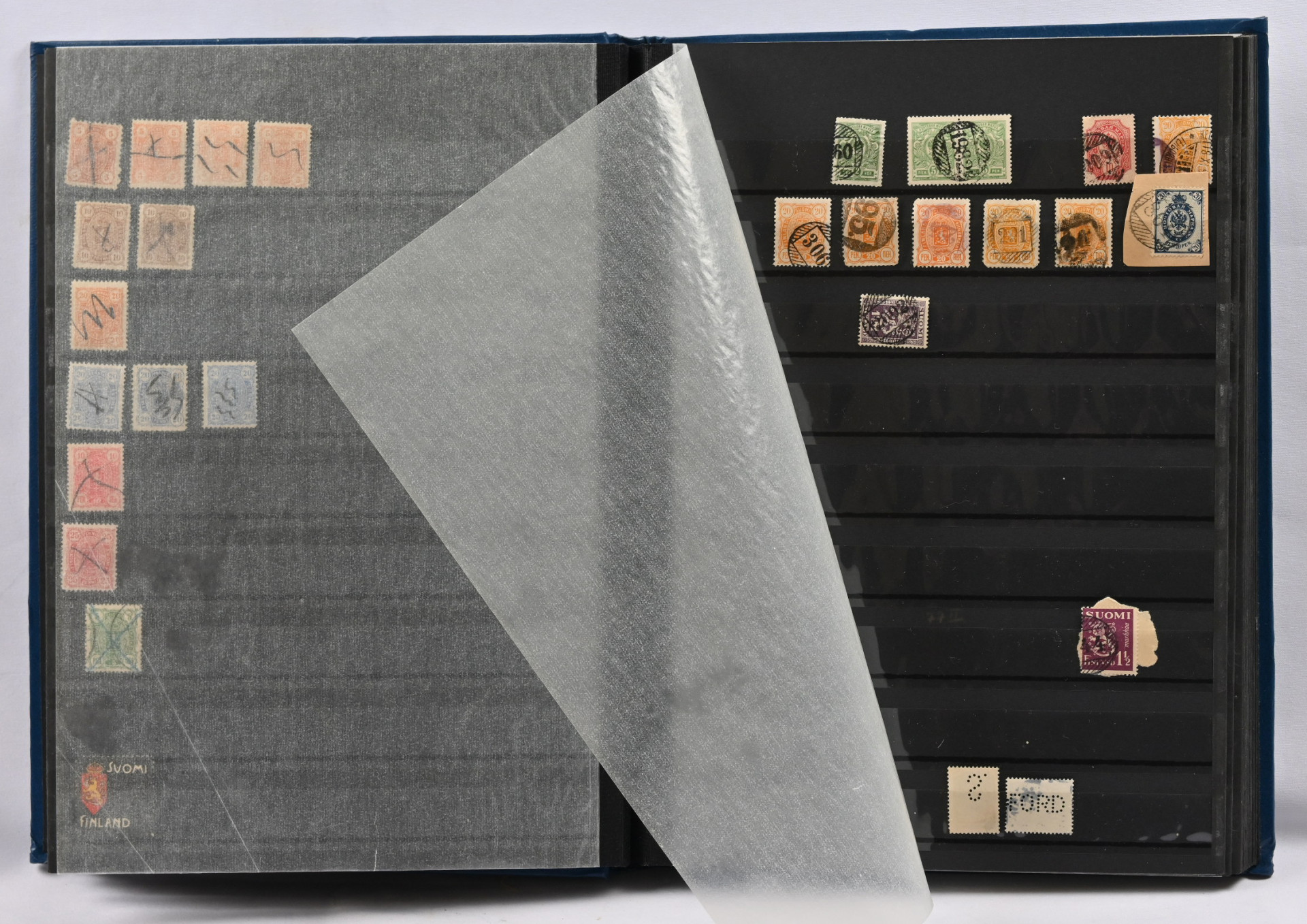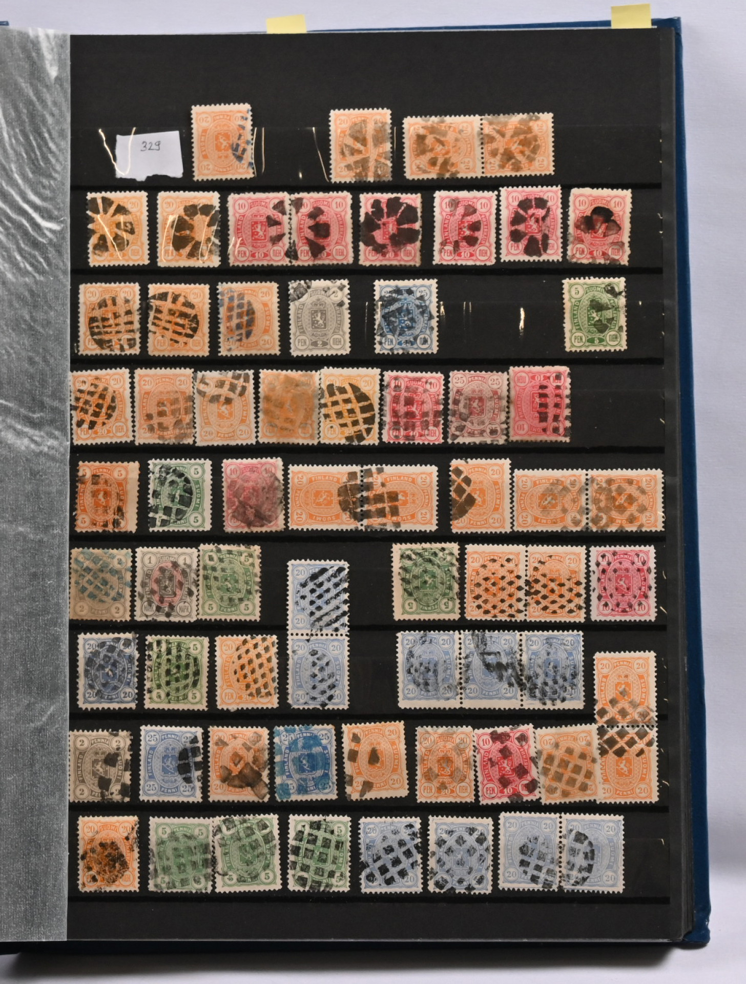 1875 - 1911 erä kuvioleimoja ja muste- ym mitätöintejä merkeillä säiliökirjassa