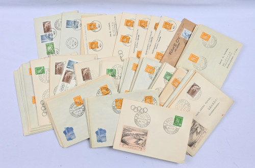1952 Helsingin olympialaiset, yli 70 erikoisleimakuorta. Mm. 15 eri postitoimipaikkaa kirjaintunnuksin ”C” - ”S”, monta harvinaista!