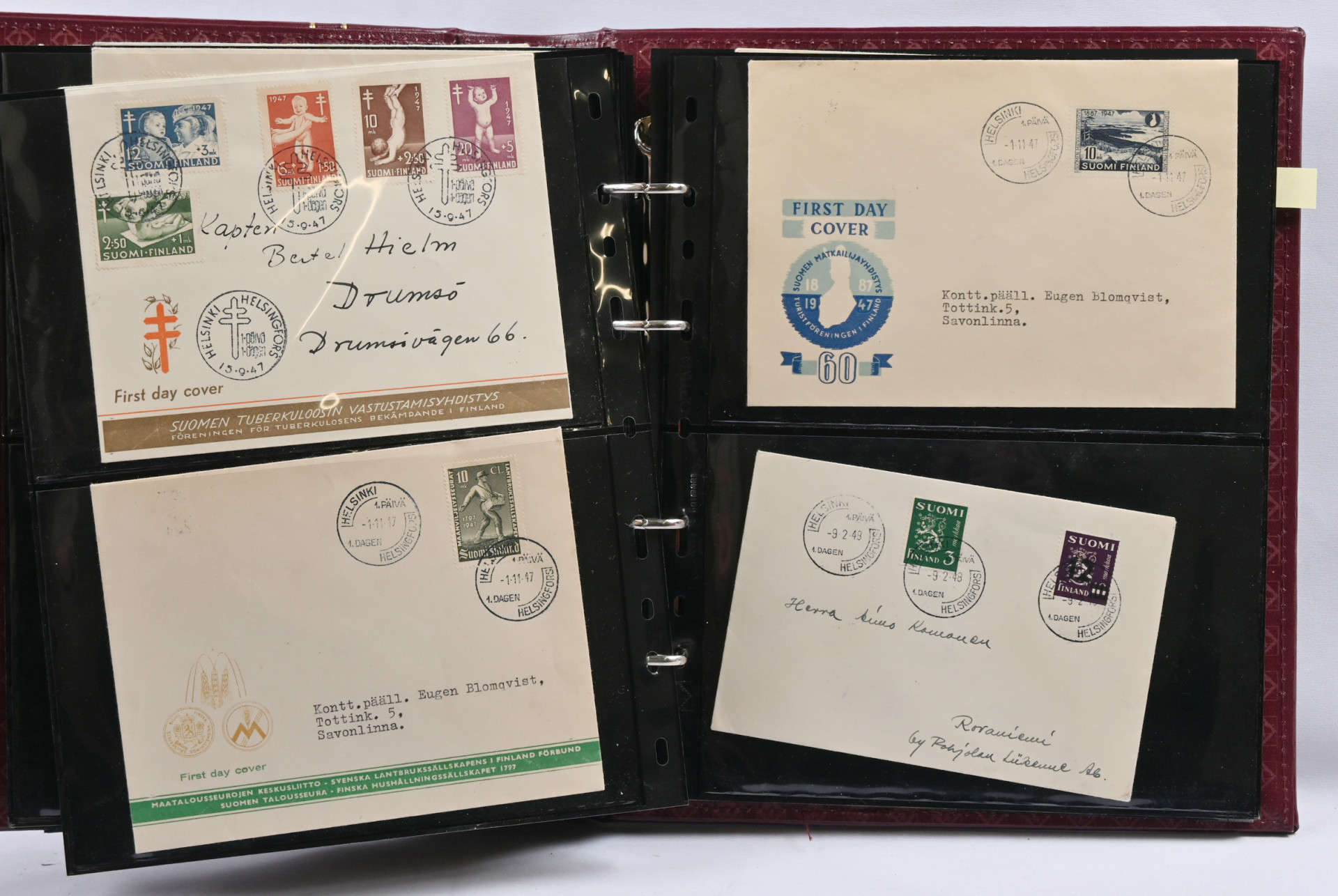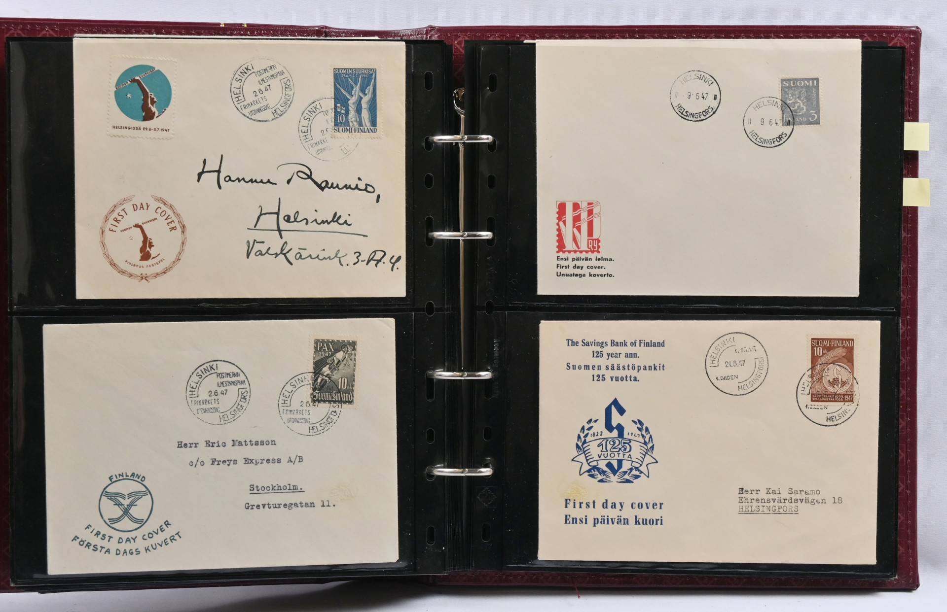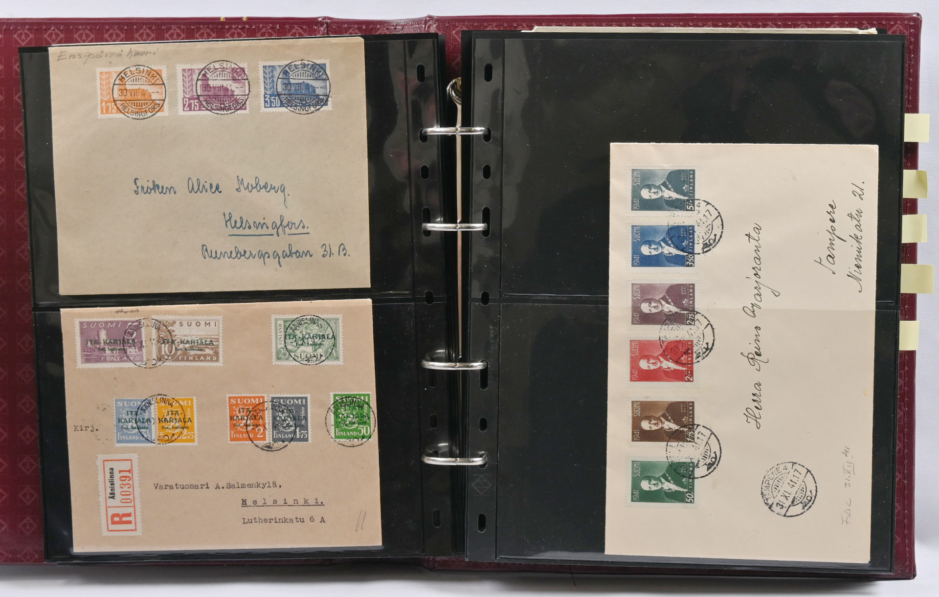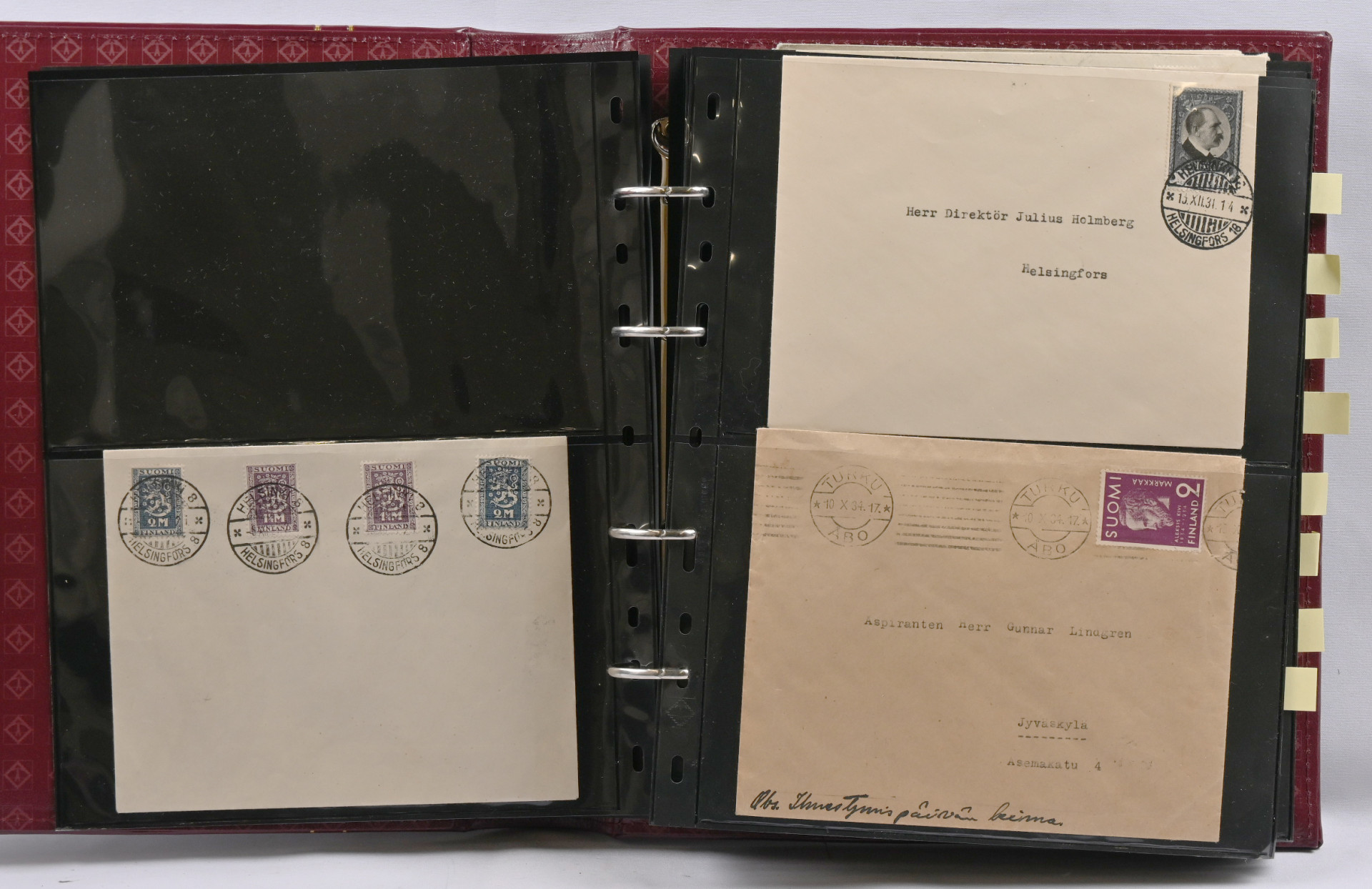 Vanha FDC -kokoelma kansiossa 1940-luvun lopulle hyviäkin mm. 1935 Kalevala sarja, Aseveli ja Kallio 24.5.1941, Viipuri sarja 30.8.1941, m/30 8/5 markkaa 16.3.1946, m/30 13.9.1948 ym