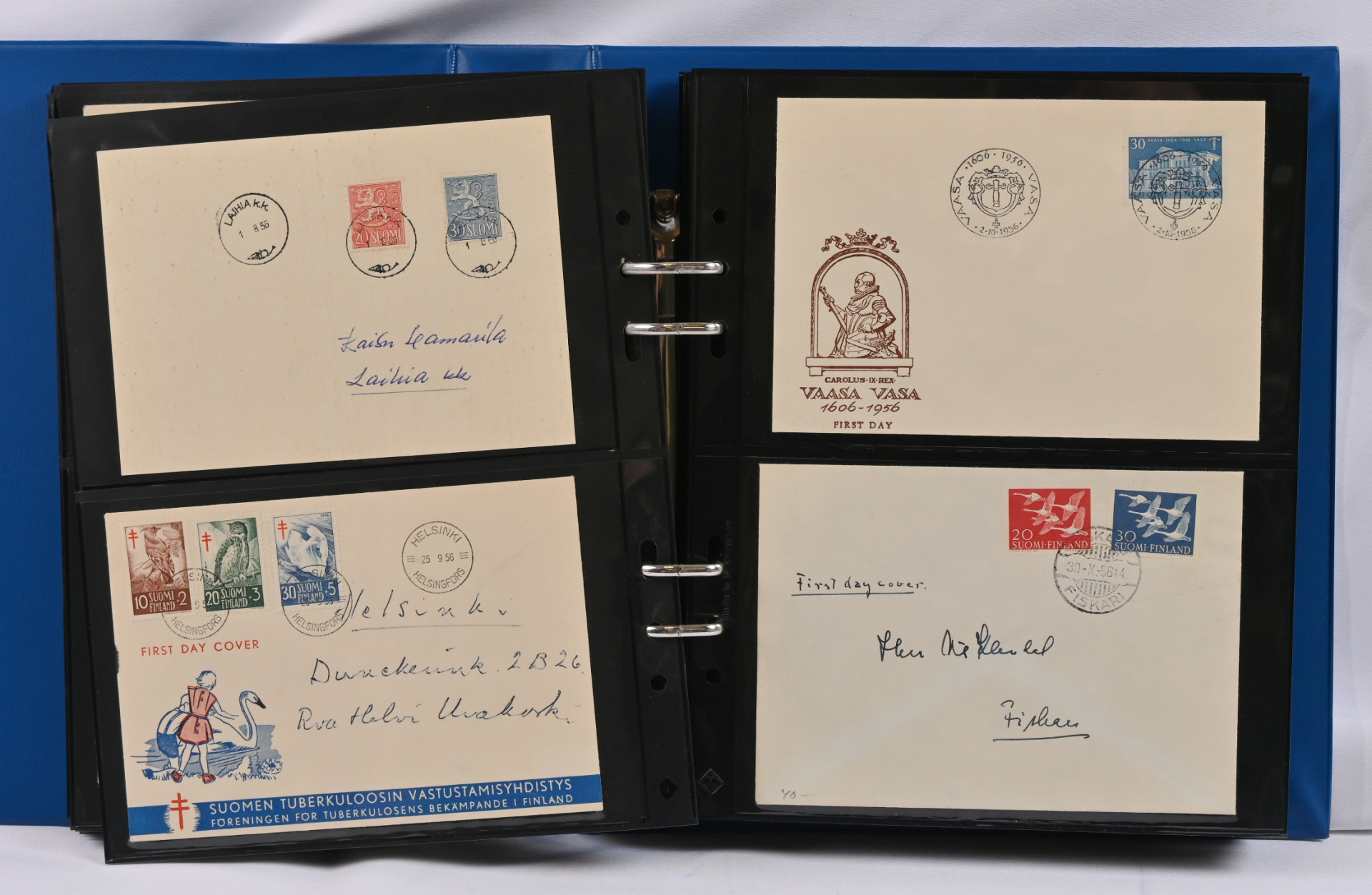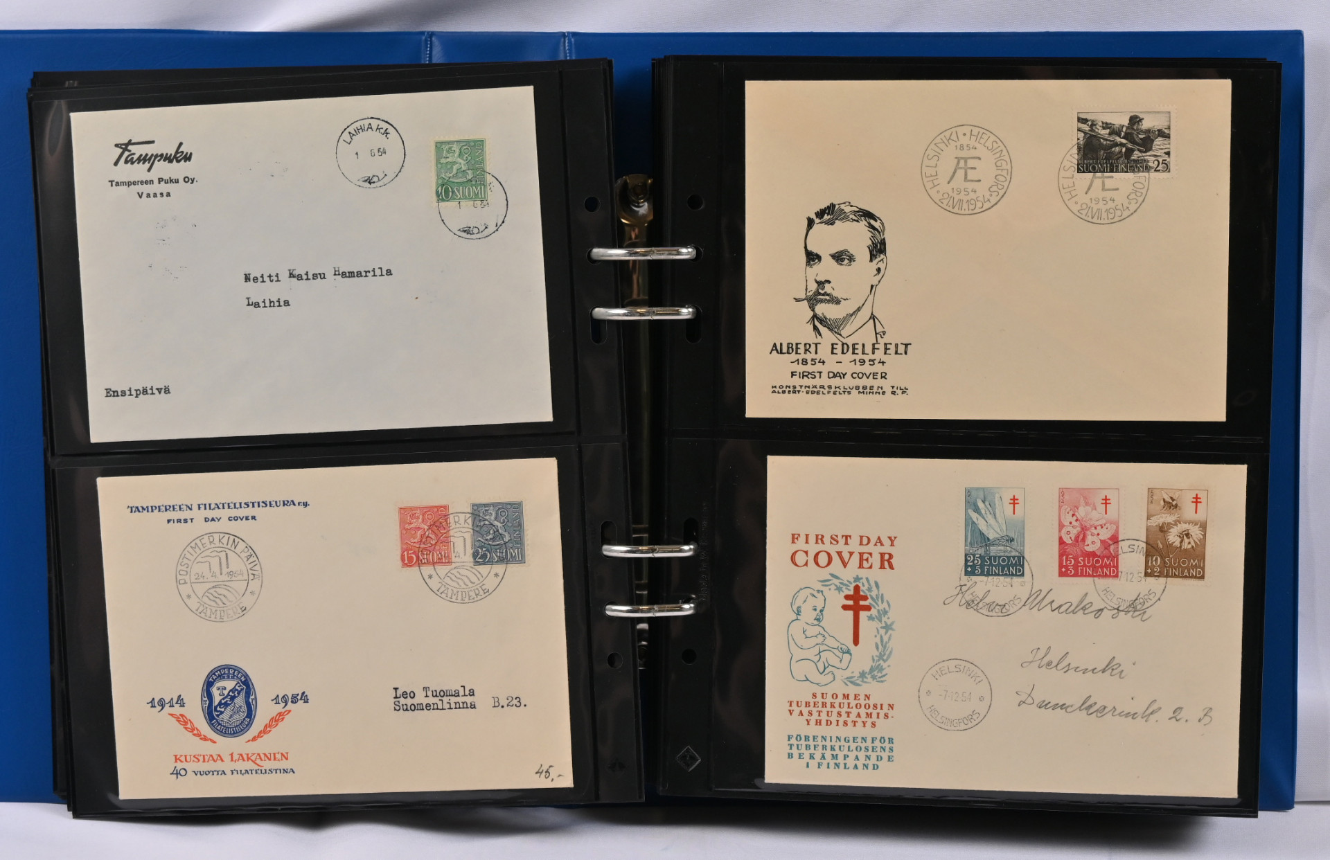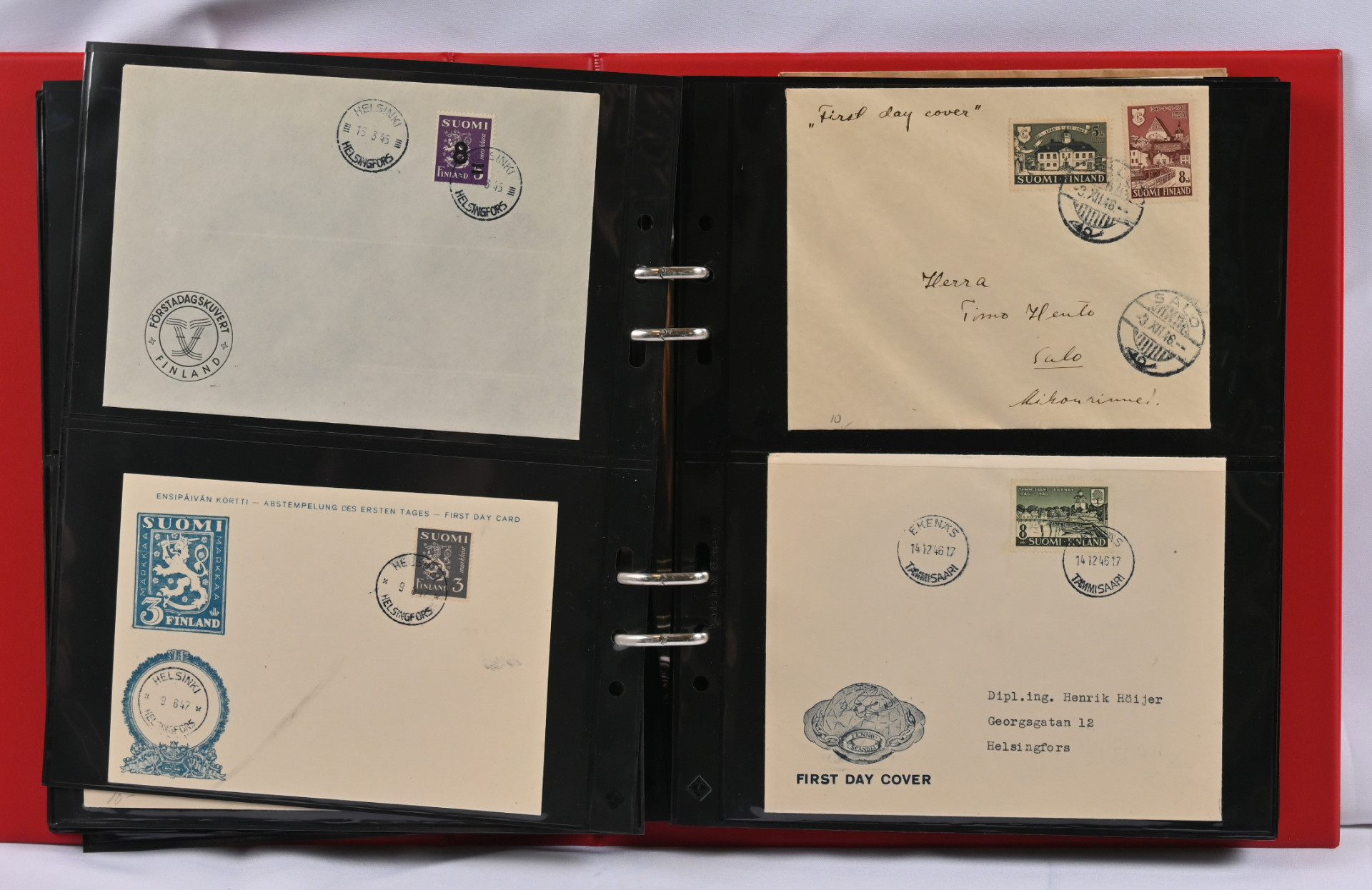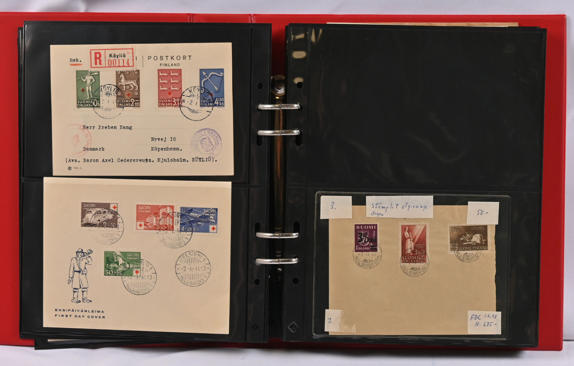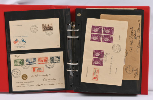 1937 - 1970 FDC-kokoelma kolmessa kansiossa. Monia hyviä m/30 ja m/54 kuoria, mm. 16.3.45, 9.6.47, 14.3.49, 1.6.54, 1.7.54, 1.8.56, 20.1.58, Punaisen Ristin sarjat 1942 - 1944 ym.