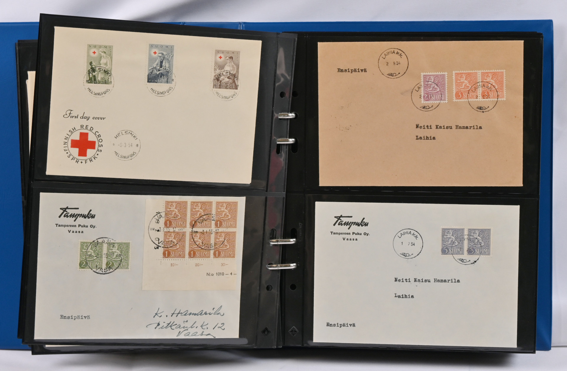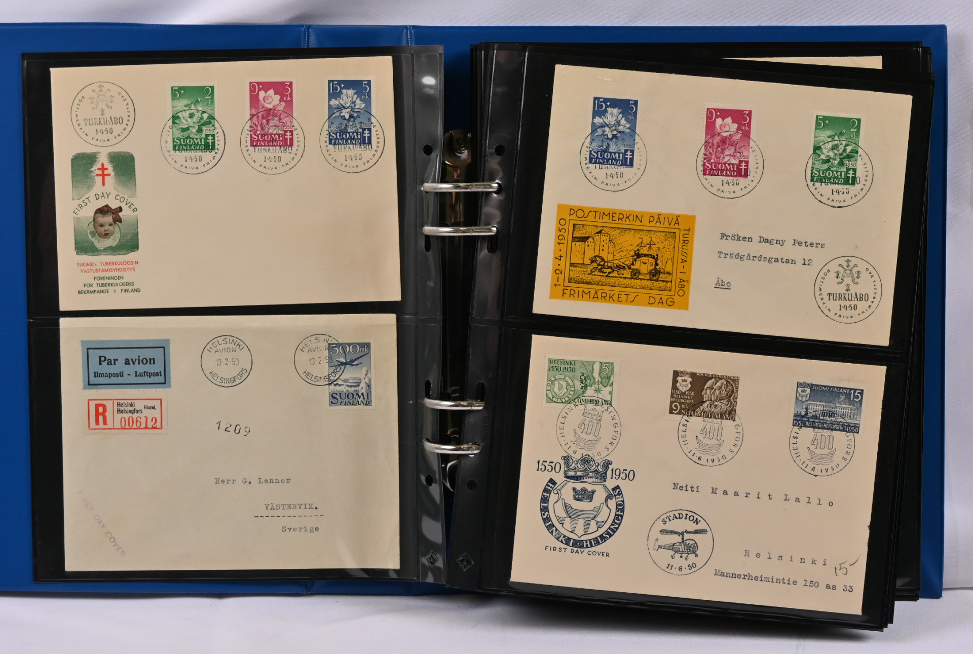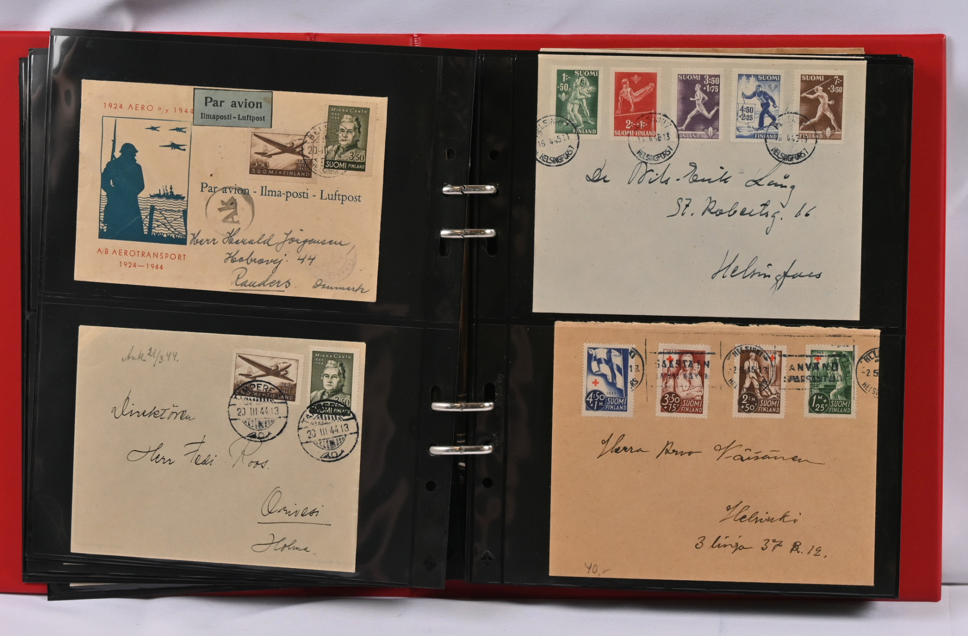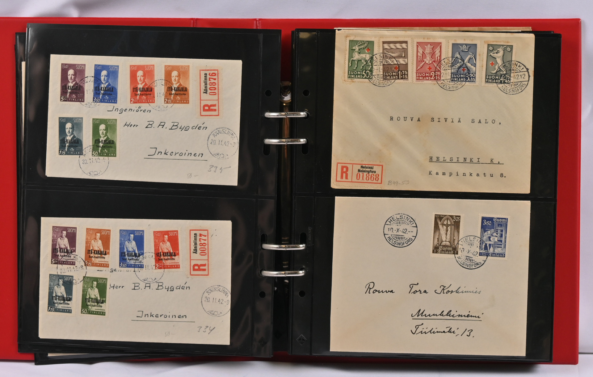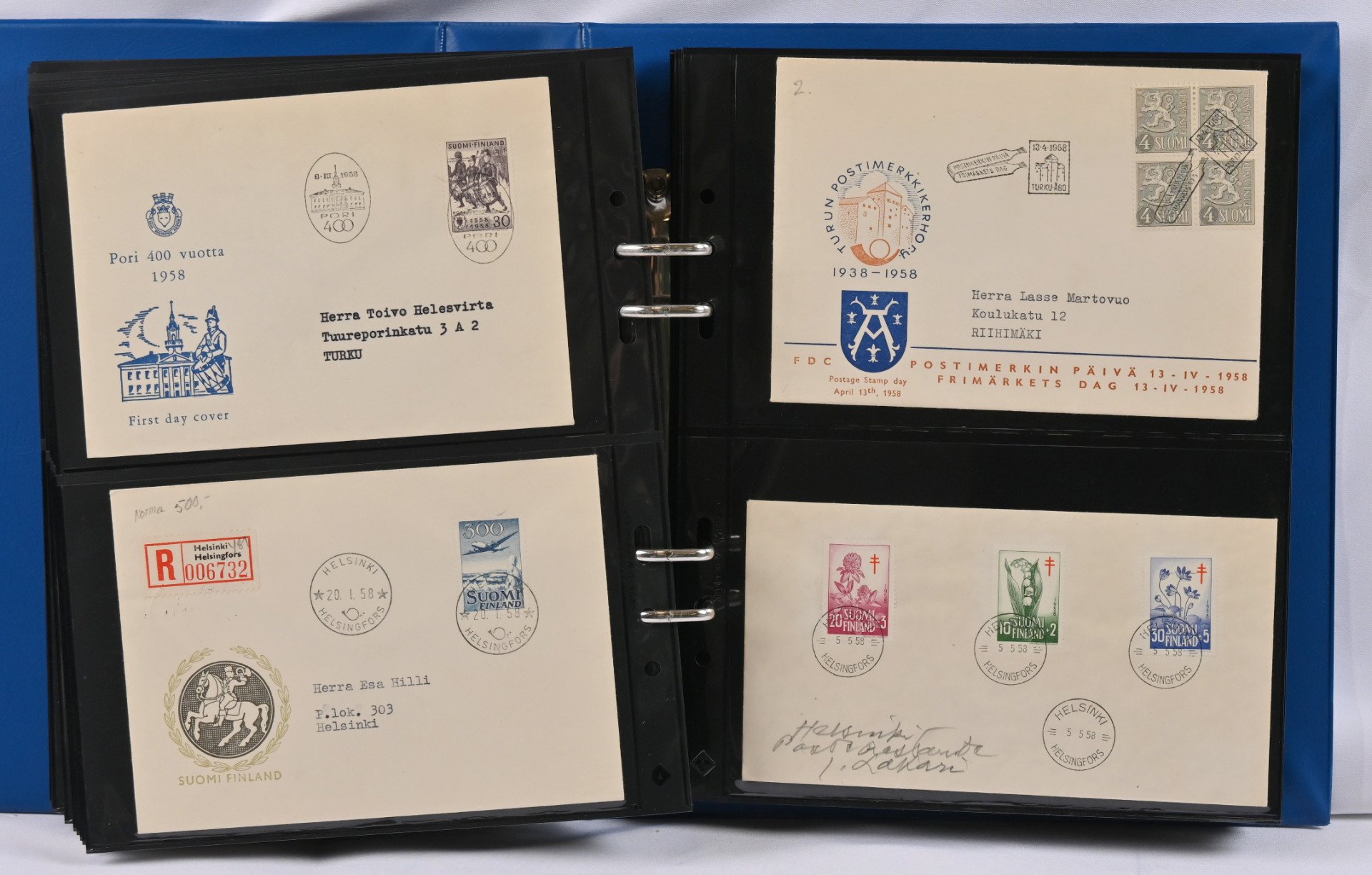 1937 - 1970 FDC-kokoelma kolmessa kansiossa. Monia hyviä m/30 ja m/54 kuoria, mm. 16.3.45, 9.6.47, 14.3.49, 1.6.54, 1.7.54, 1.8.56, 20.1.58, Punaisen Ristin sarjat 1942 - 1944 ym.
