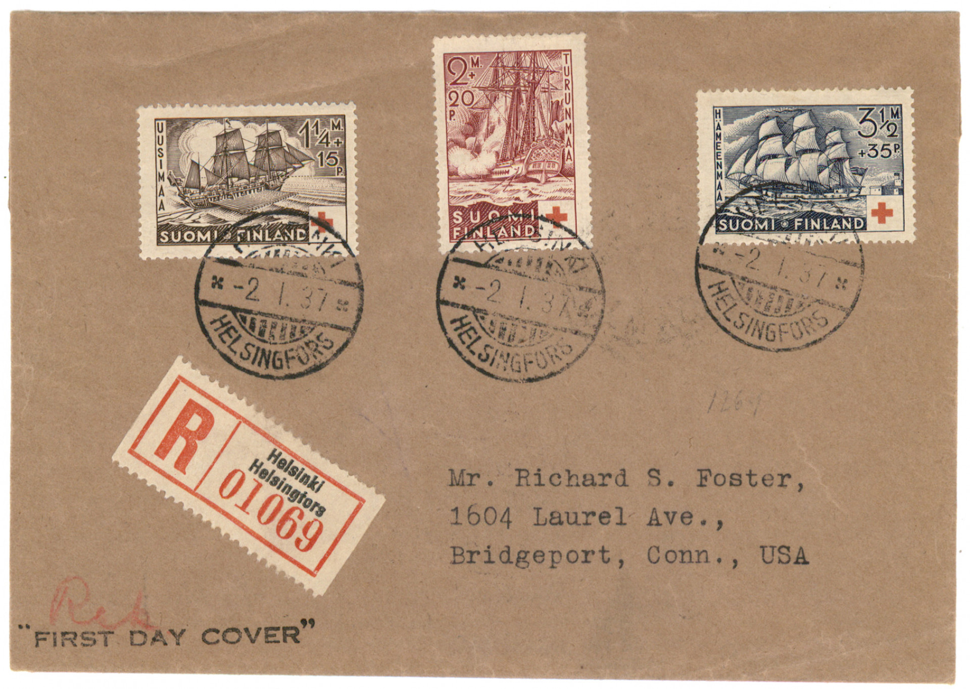 1937 Punaisen Ristin sarja 2.1.1937. Harvinainen!