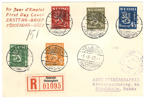 m/30 leijonat 1 markkaa, 2 markkaa, 2½ markkaa, 3½ markkaa ja 4½ markkaa 1.10.1942 Ruotsiin. Harvinainen