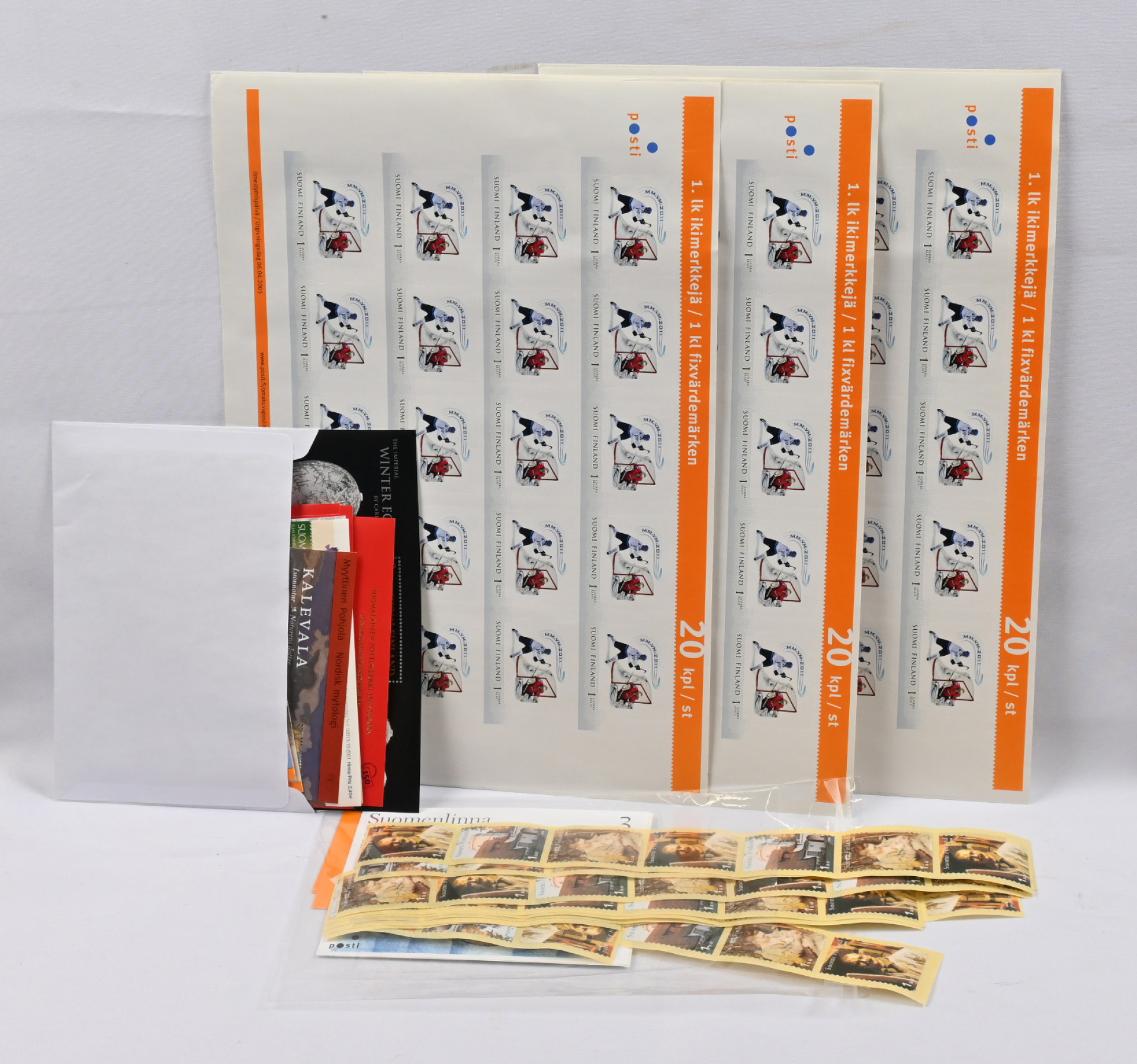 Ikimerkkejä 137 postituoretta **, mm. kolme ”ilmaveivi”-arkkia. Lisäksi yli 50€ edestä muuta nimellisarvomateriaala. Postitusarvo yli 420€