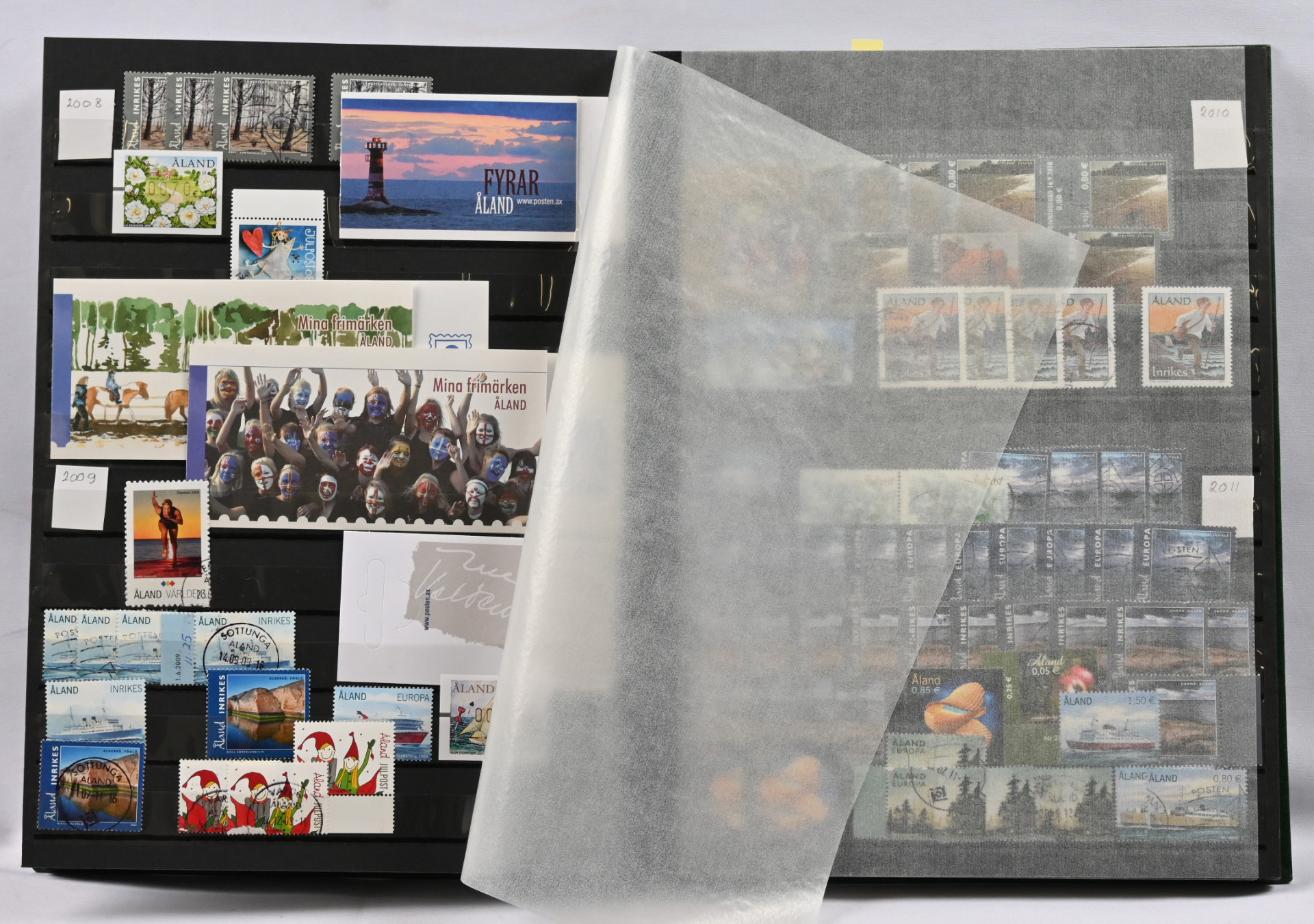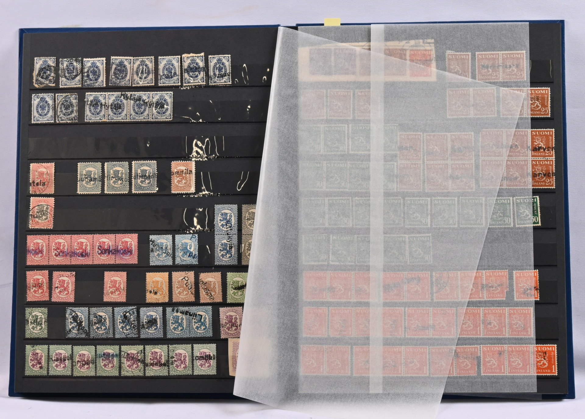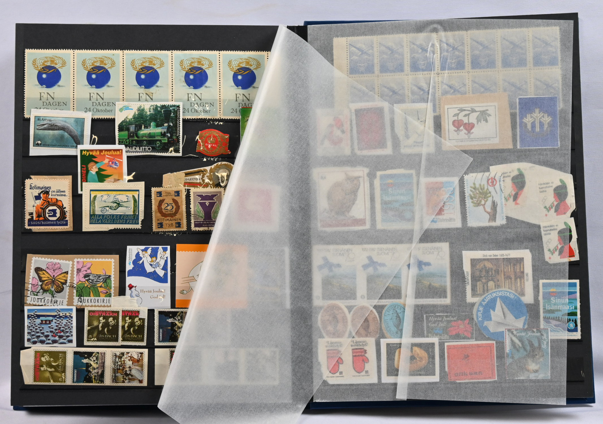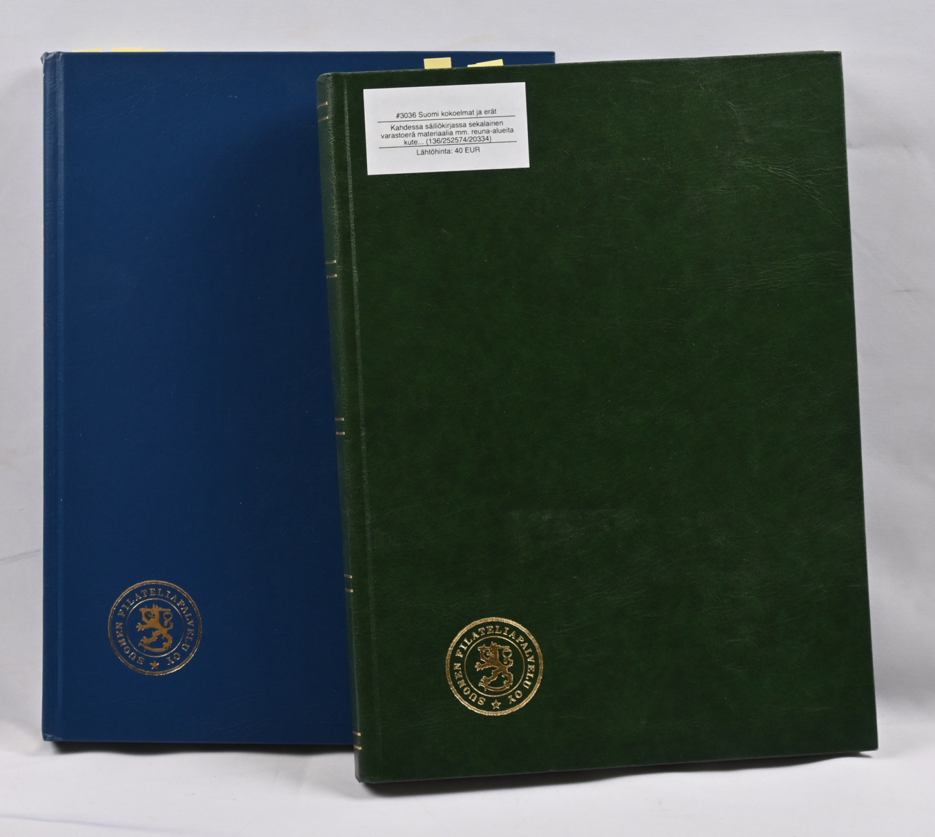 Kahdessa säiliökirjassa sekalainen varastoerä materiaalia mm. reuna-alueita kuten Pohjois-Inkeriä myös pp -leimoja, kirjeensulkijoita, Ahvenamaata ym