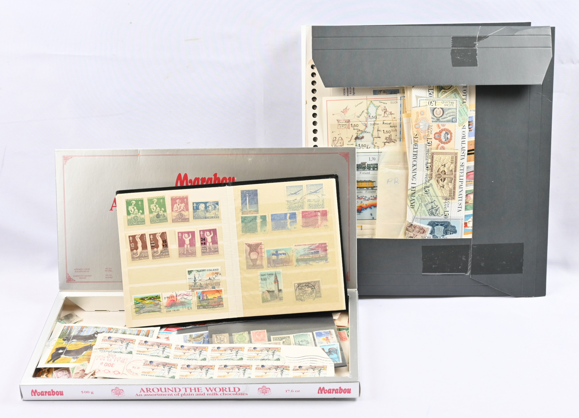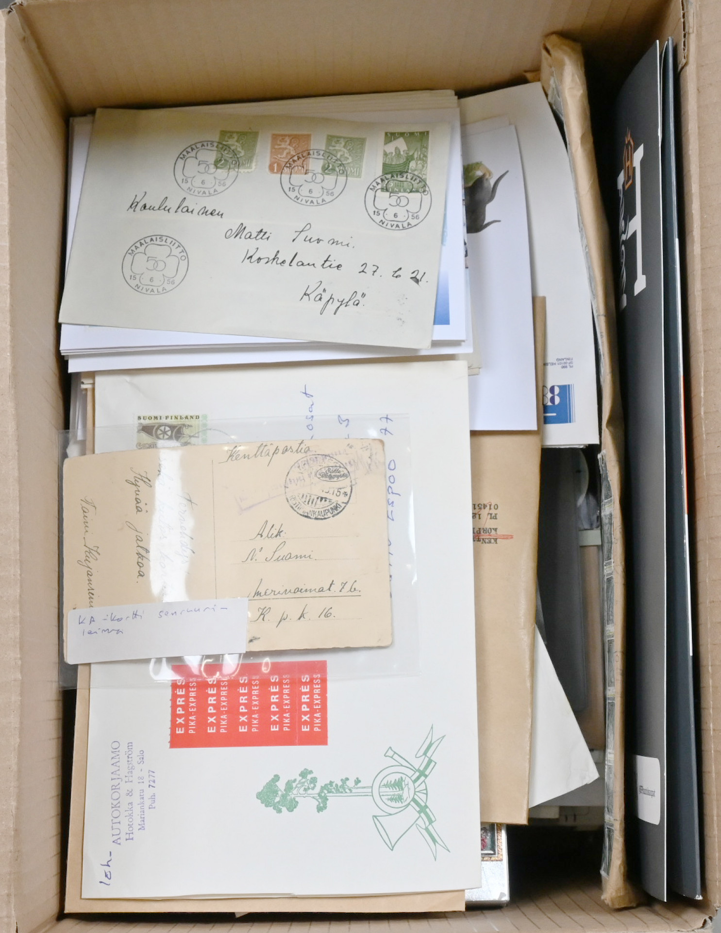 Keräilijän jäämistöä yli 3 KG lähetyksiä kotimaasta ja ulkomailta. Mukana myös ljaitelmia ja lisäksi 1980-90-luvuilta arkkeja, vihkoja yms L. lähes 500€ ym