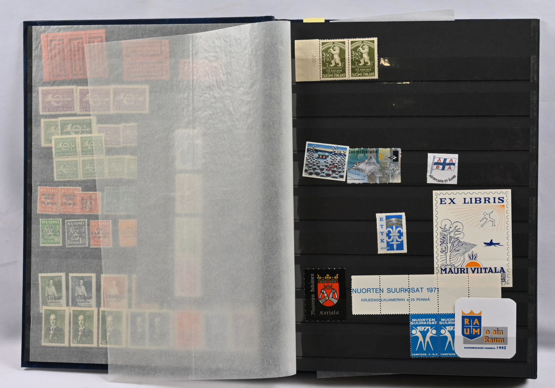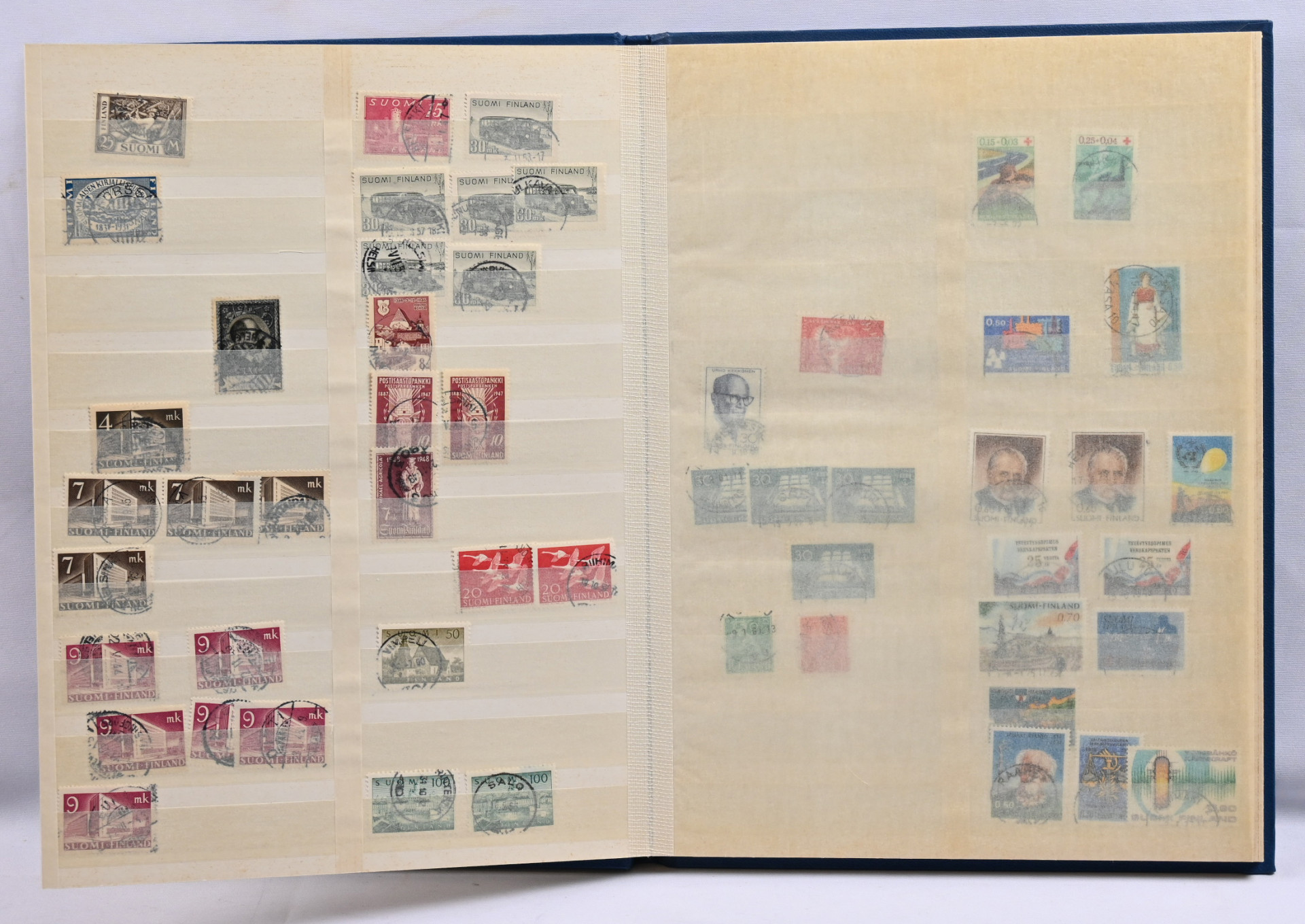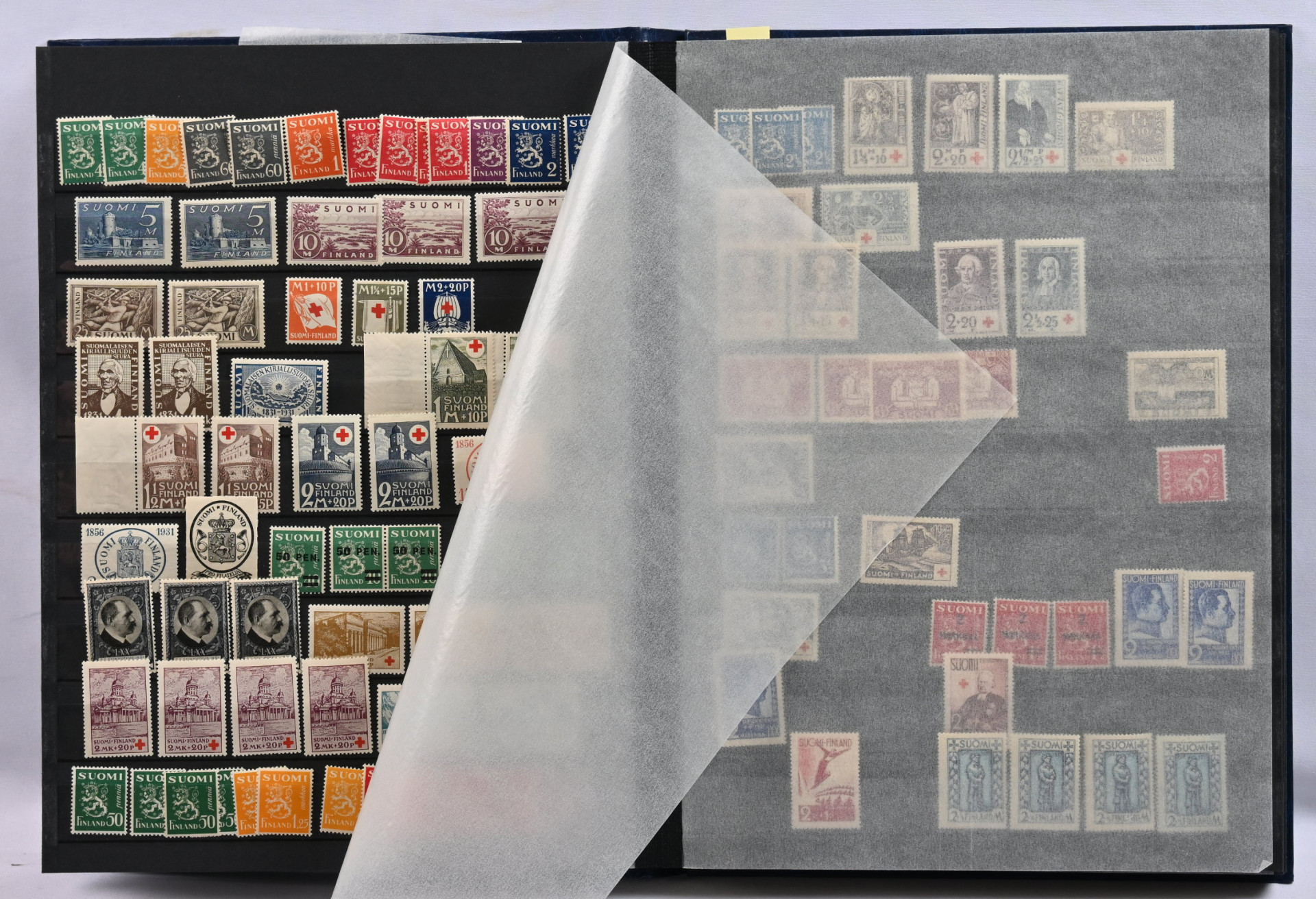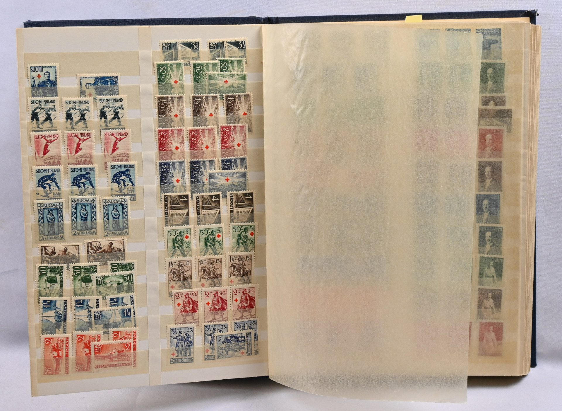 m/89 alkaen kuudessa säiliökirjassa varastoerä lähinnä postituoretta ** materiaalia käyttösarjoja, juhlaa, Punaista Ristiä, Ahvenanmaata jne