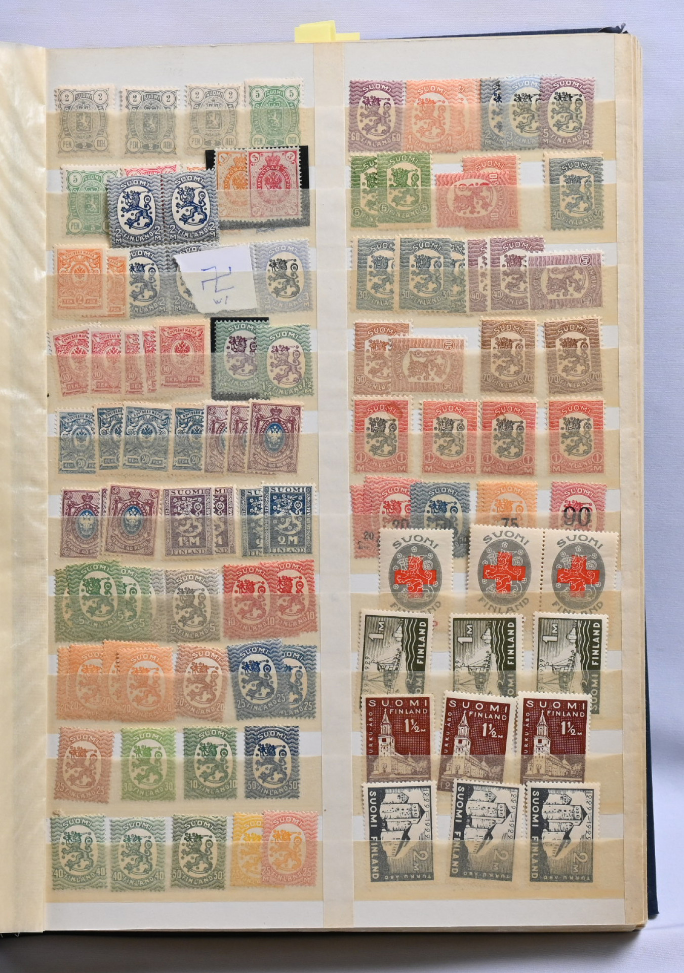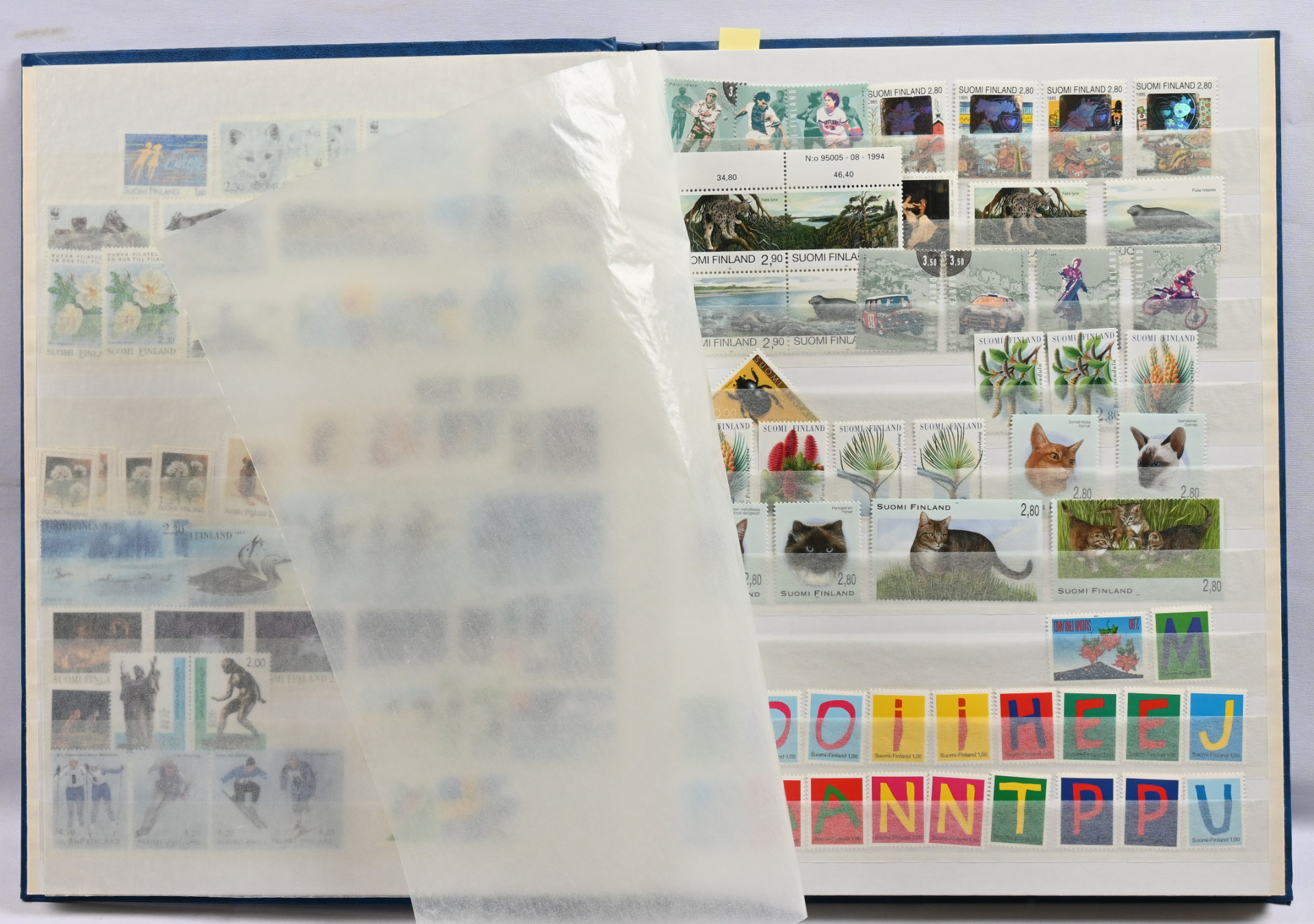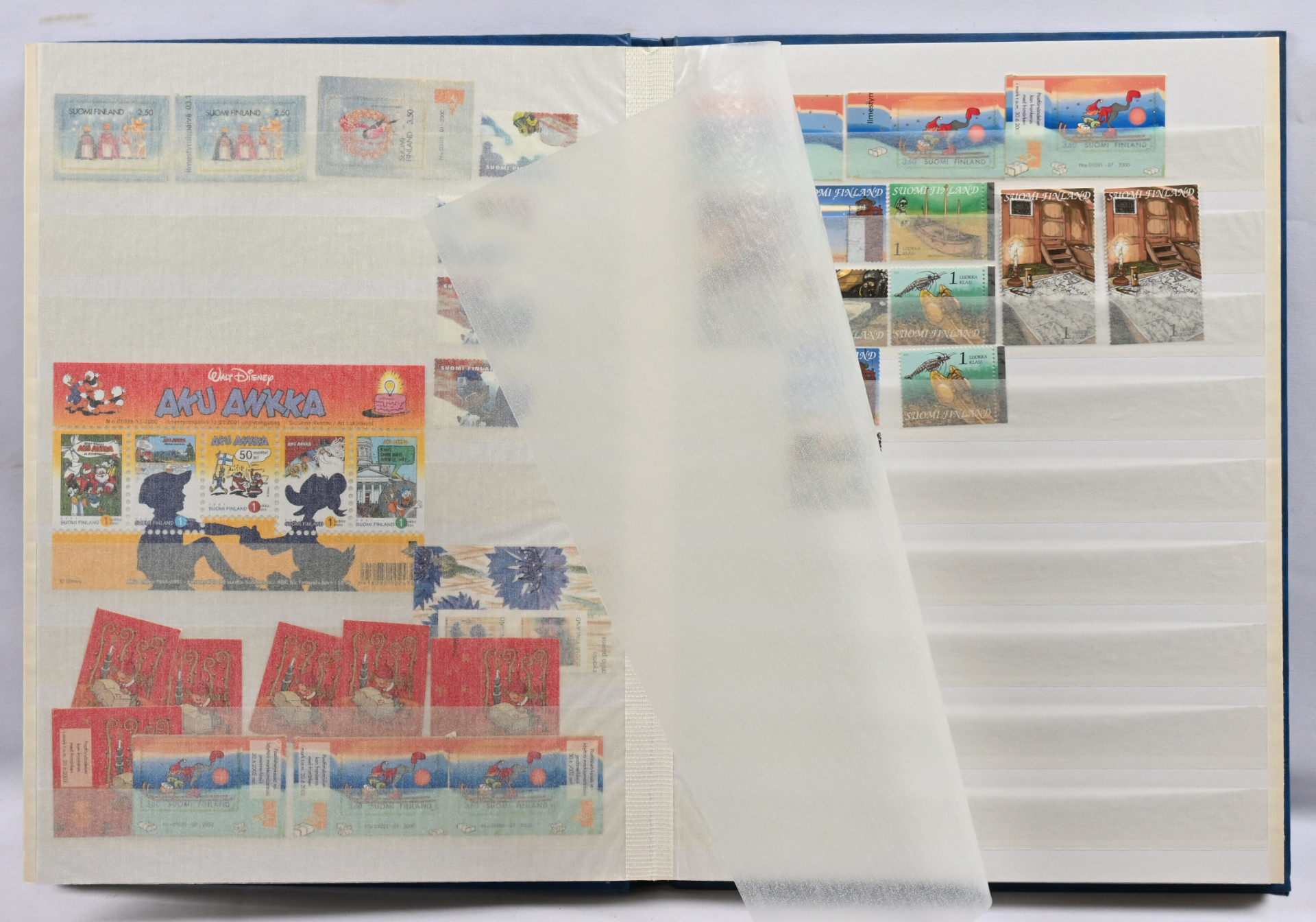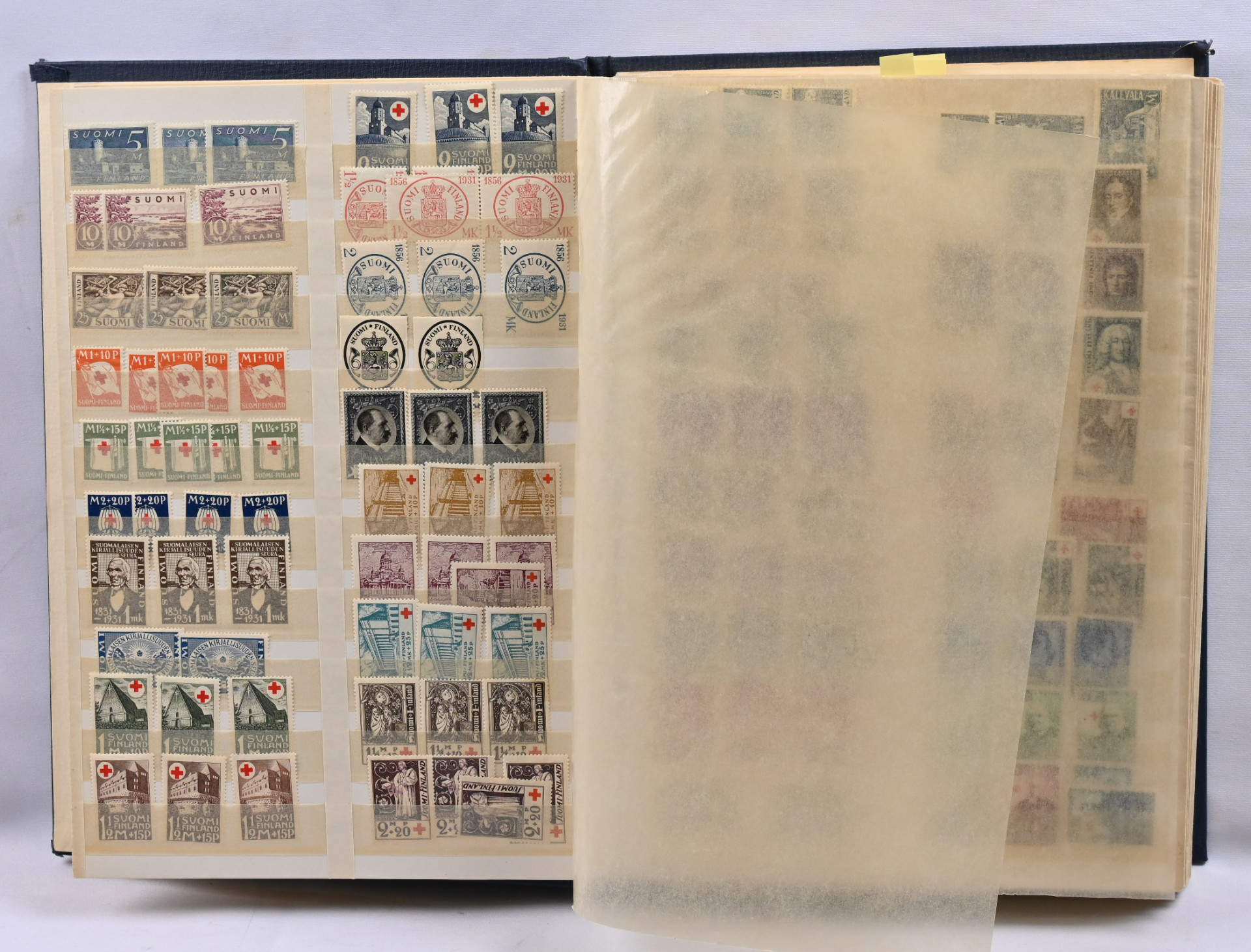 m/89 alkaen kuudessa säiliökirjassa varastoerä lähinnä postituoretta ** materiaalia käyttösarjoja, juhlaa, Punaista Ristiä, Ahvenanmaata jne