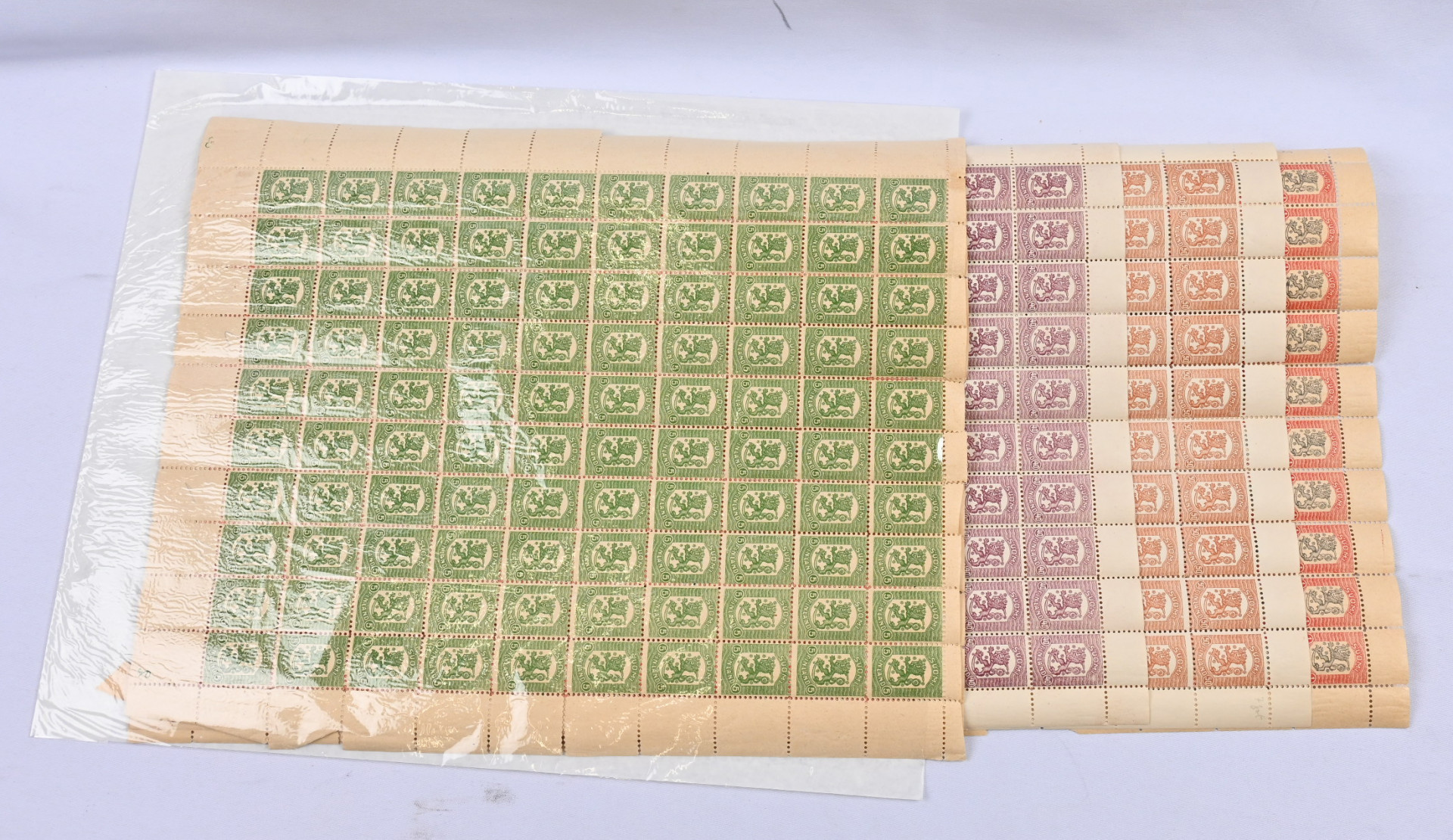 Monipuolinen ja sekalainen erä vähän kaikkea sivuilla mm. ovaaliväärenteitä, leimamerkkejä, m/18 arkkeja ym