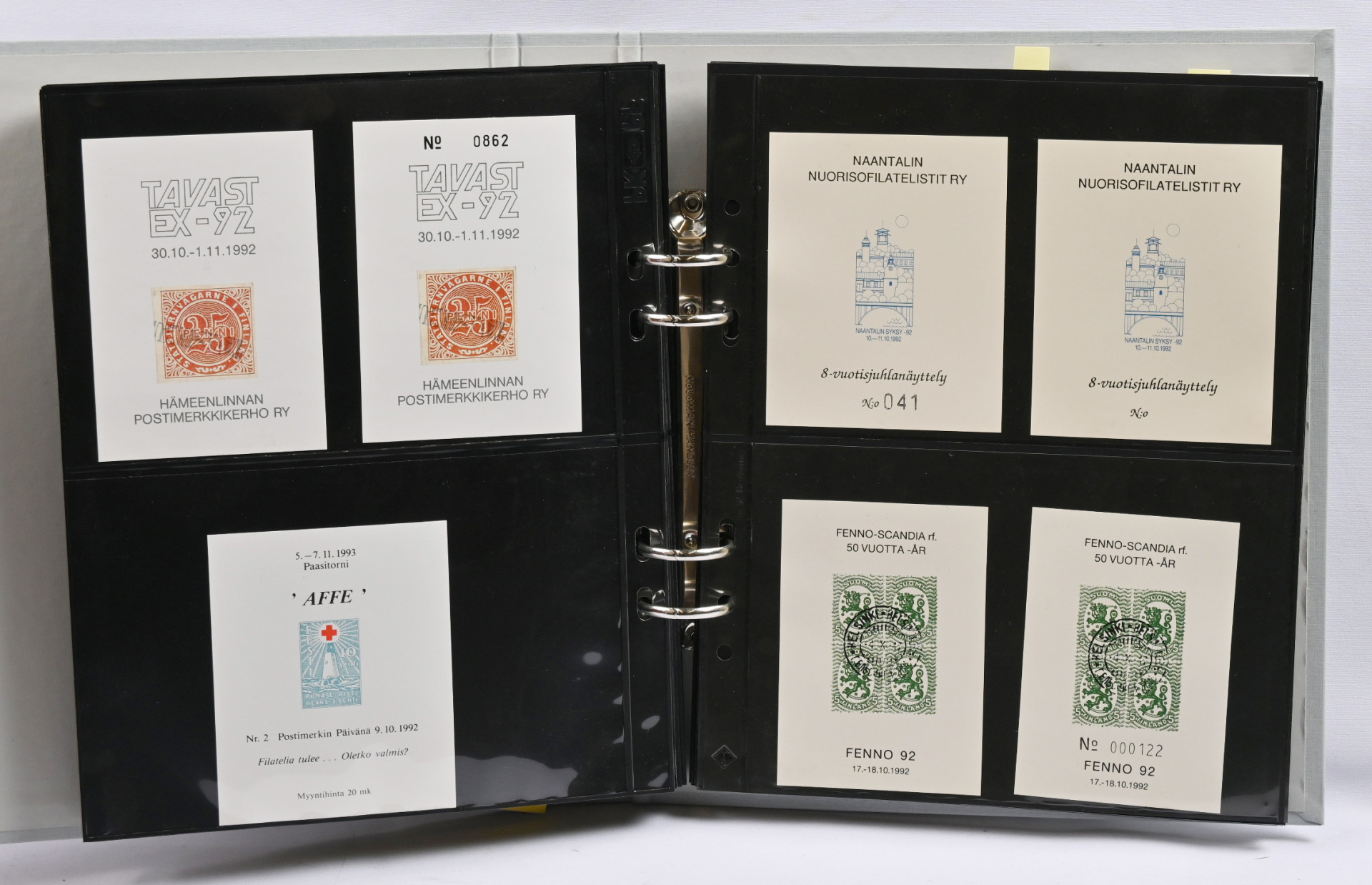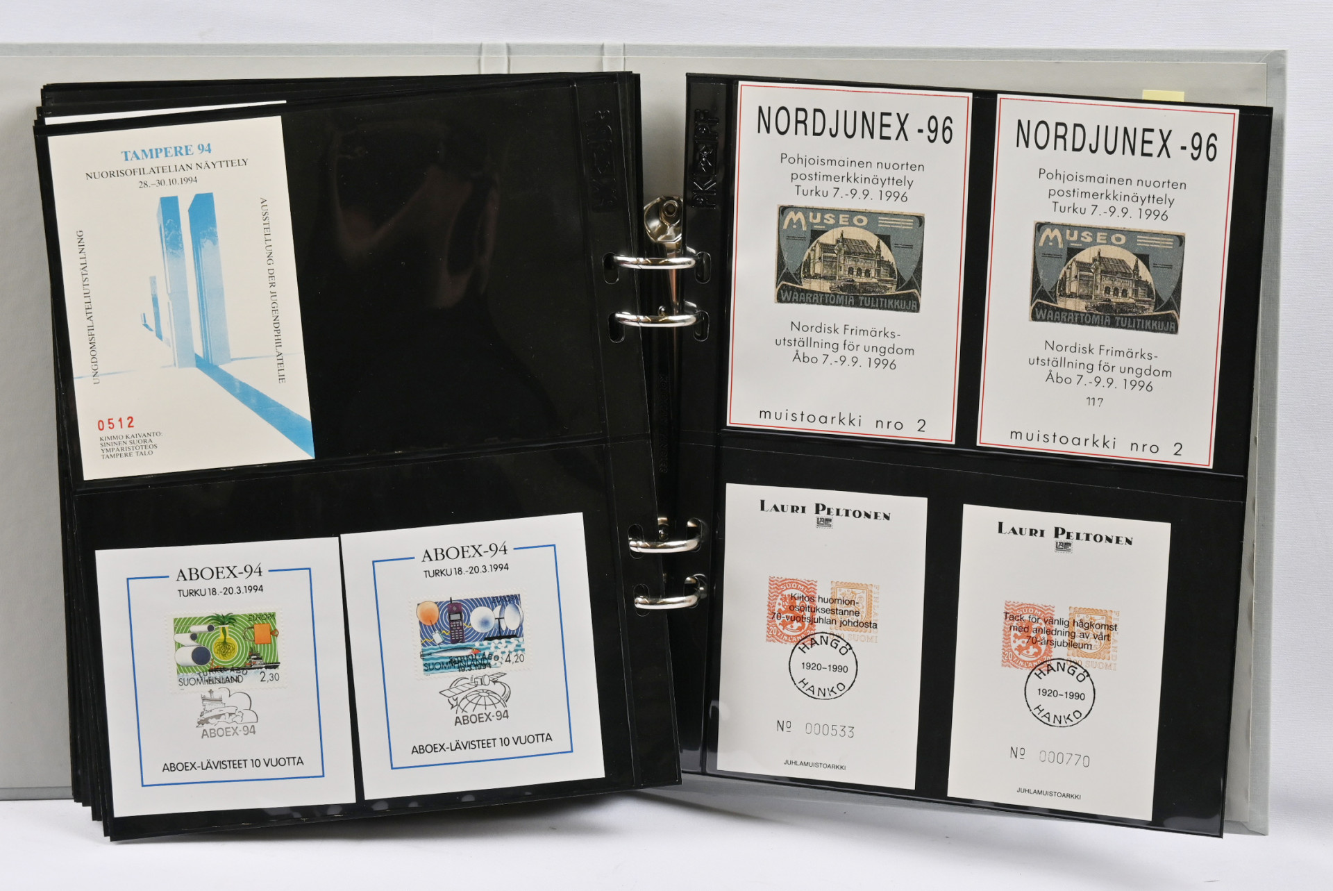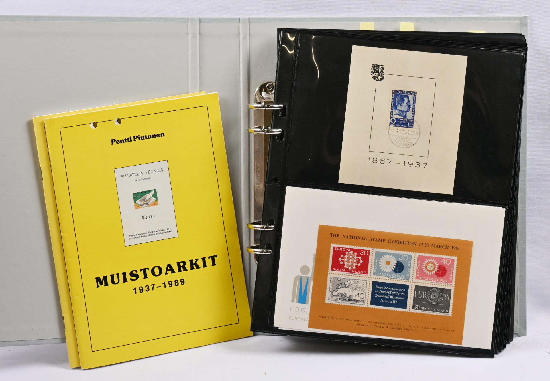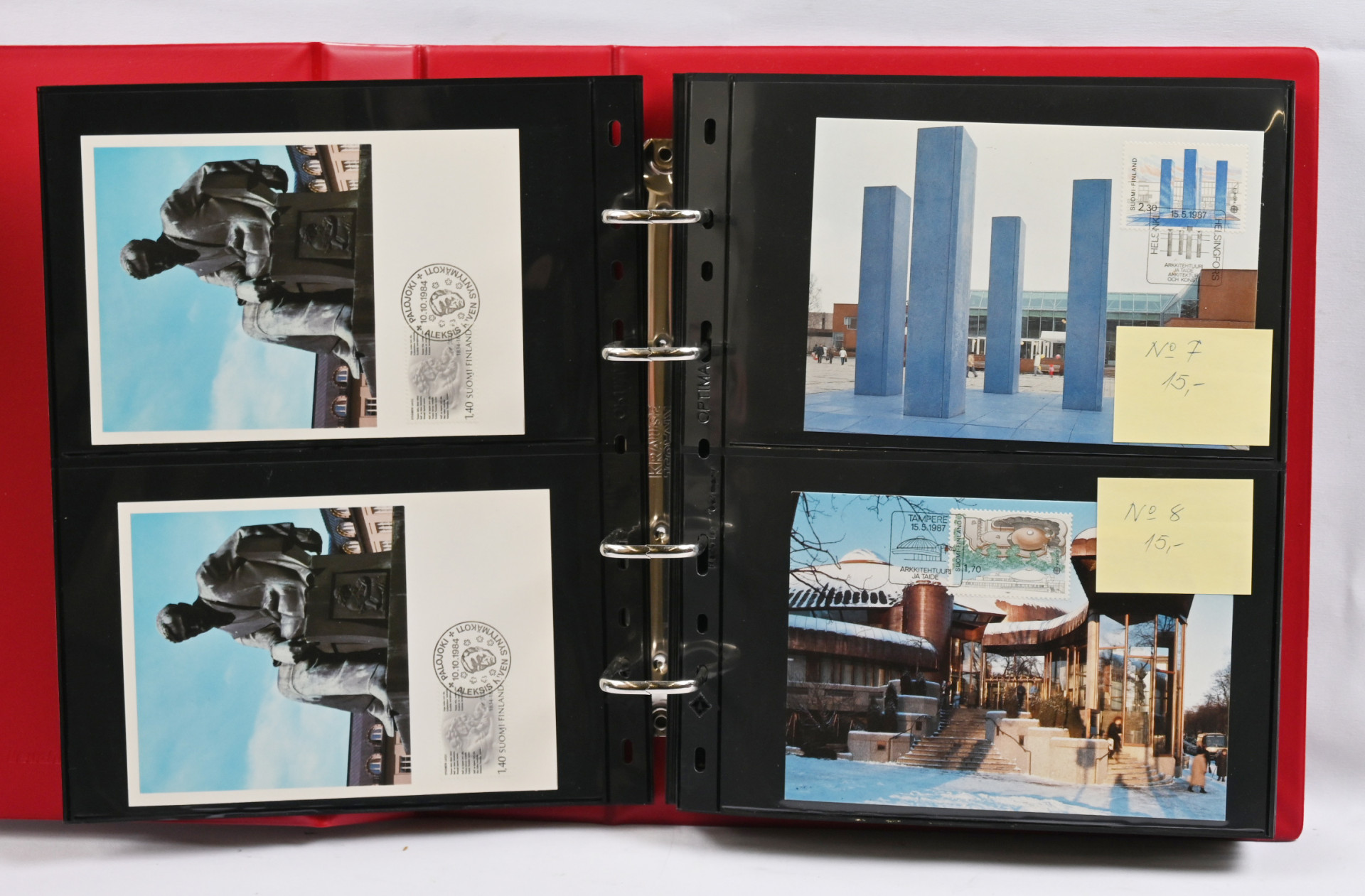 Muistoarkkeja kokoelmaerä kansiossa luettelon kera + toisessa kansiossa maksikortteja Suomesta ja Ahvenanmaalta