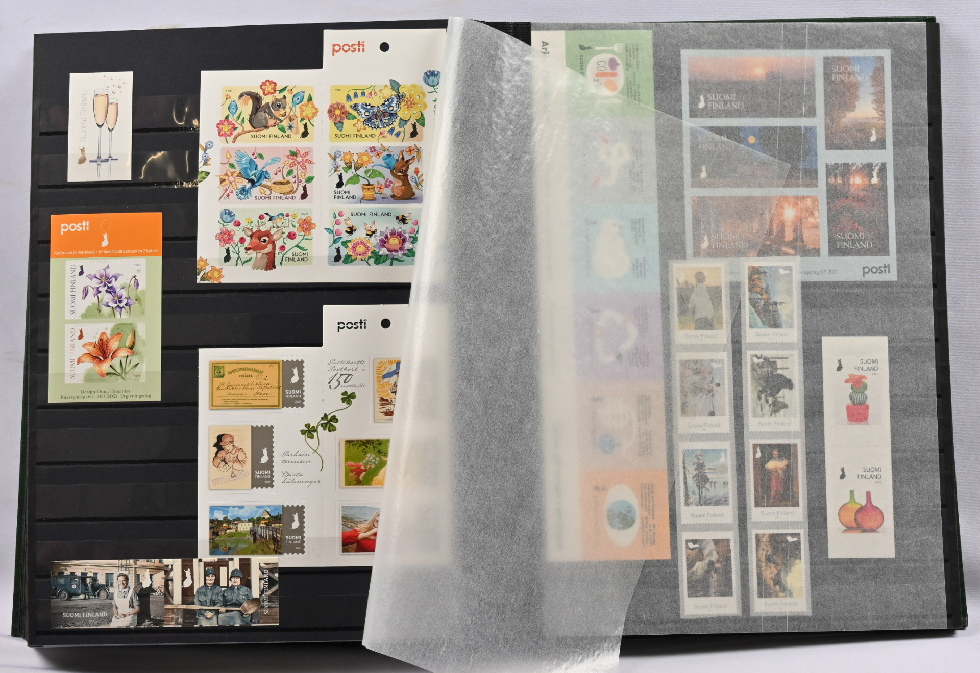 Paksussa varastosäiliökirjassa pääasiassa uudempaa materiaalia leimattuna ja postituoreena ** jonka nimellisarvo jo yli 1100€