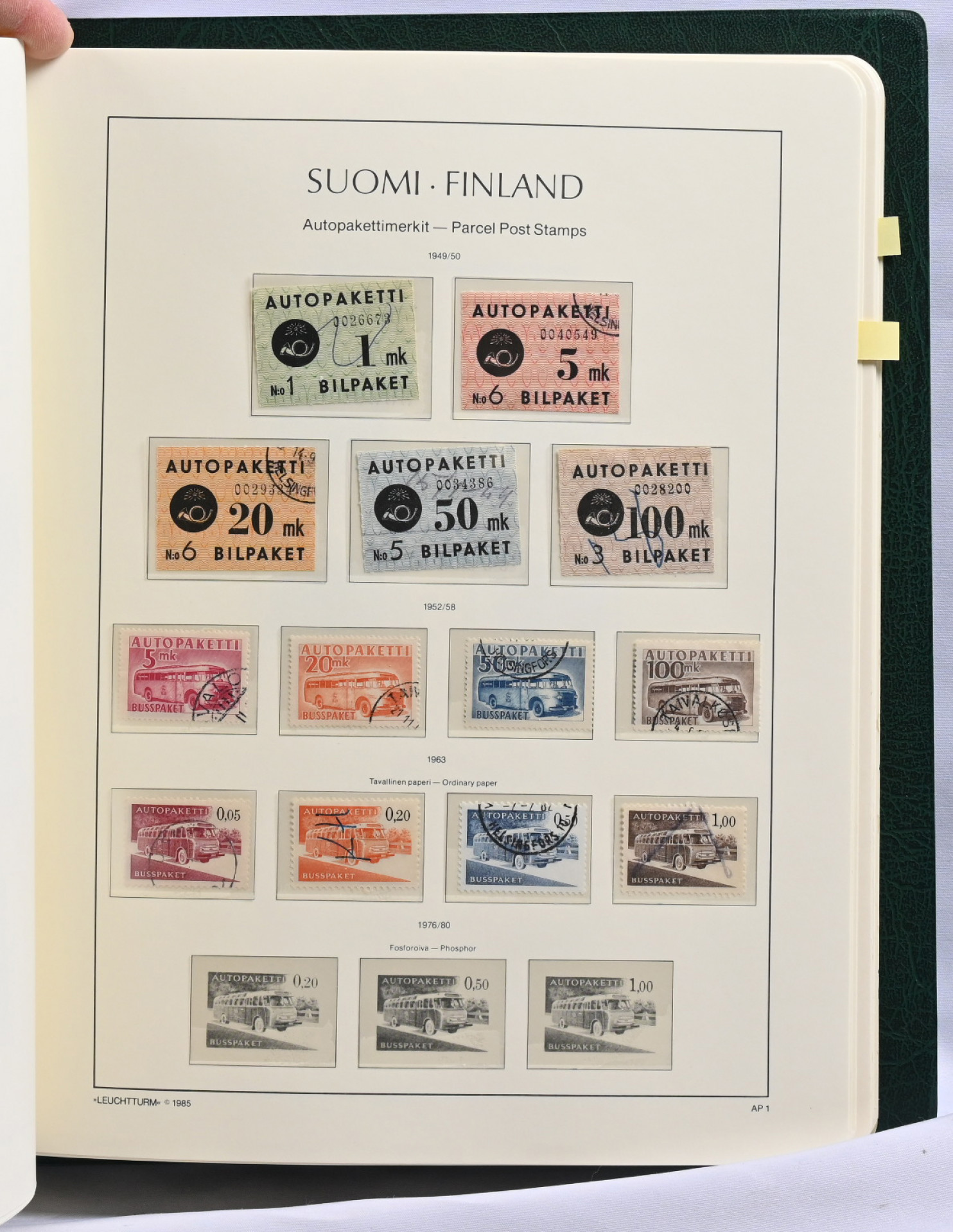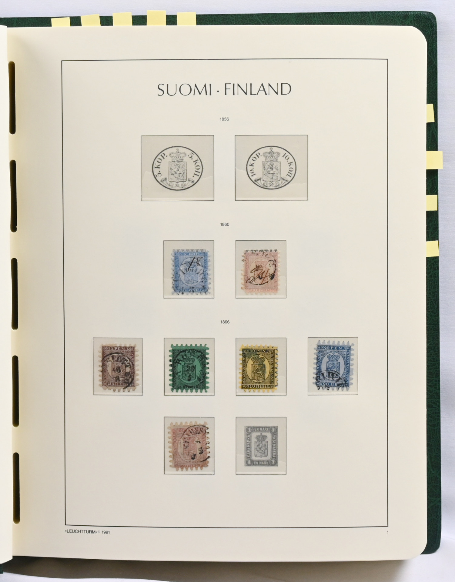 1860 - 1989 leimattu kokoelma taskullisessa kansiossa hyviäkin kuten Kööpenhaminalainen, 1885 5 markkaa (vikaa) ja 10 markkaa, 1891 sarja, kolme mustaa kymppiä, reuna-alueita jne