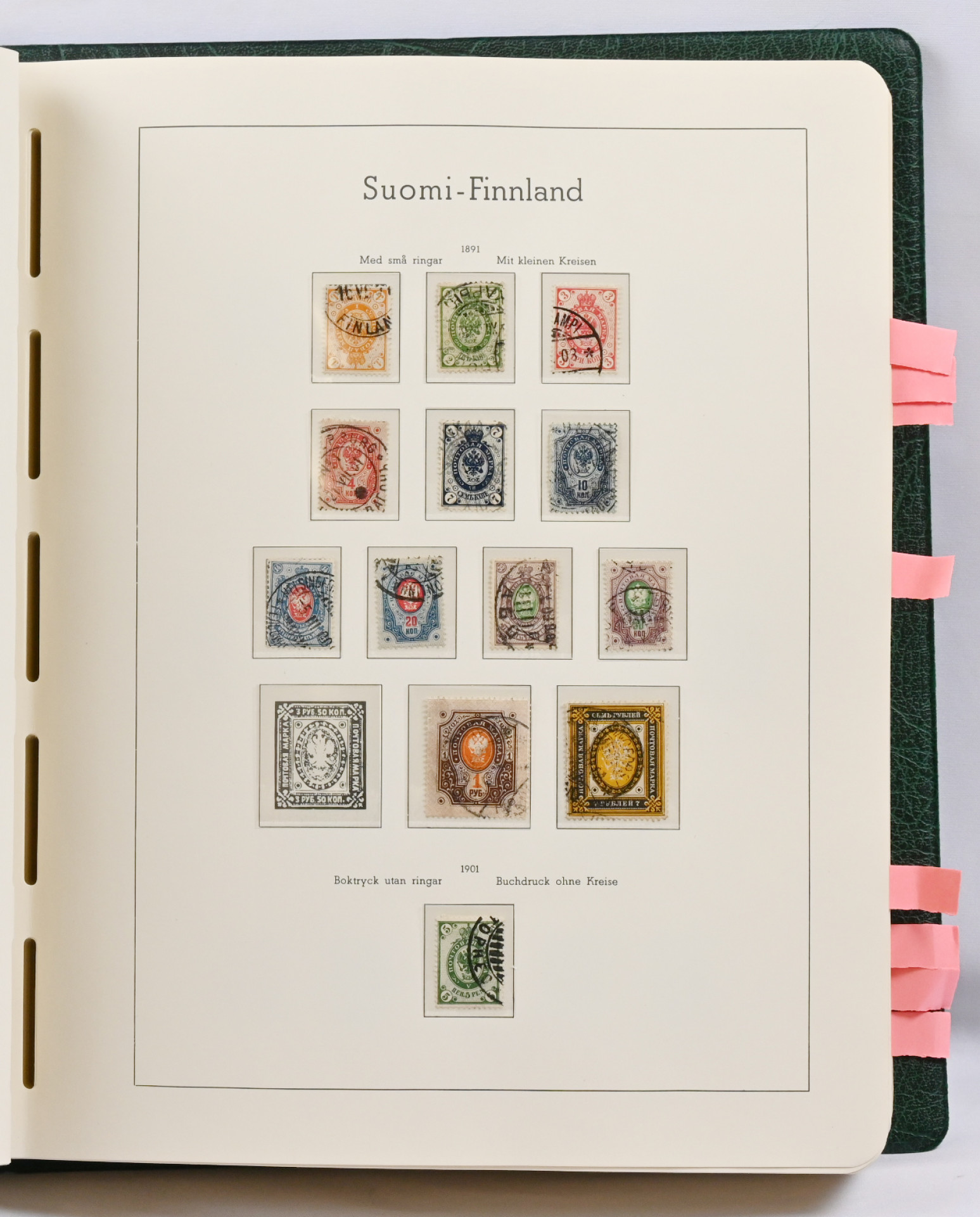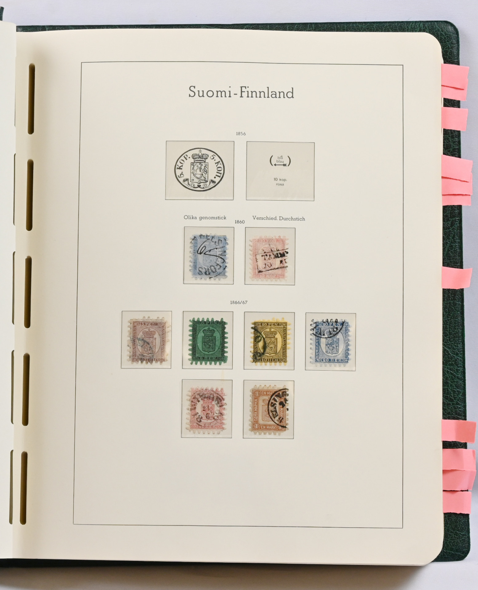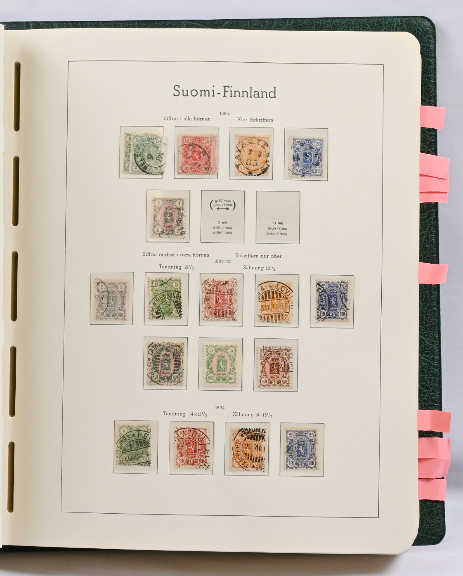 1860 - 1993 lähinnä leimattu kokoelma taskukansiossa. Isohampaisissa vaihtelevia vikoja, 1875 SA/LB kaikki, 1889 5 markkaa ja 10 markkaa, 1891 7 ruplaa, 1901-15 mustat kympit (3), Zeppelin (*), punaristi- ja tubi-sarjat, uudessa päässä loistoja jne.