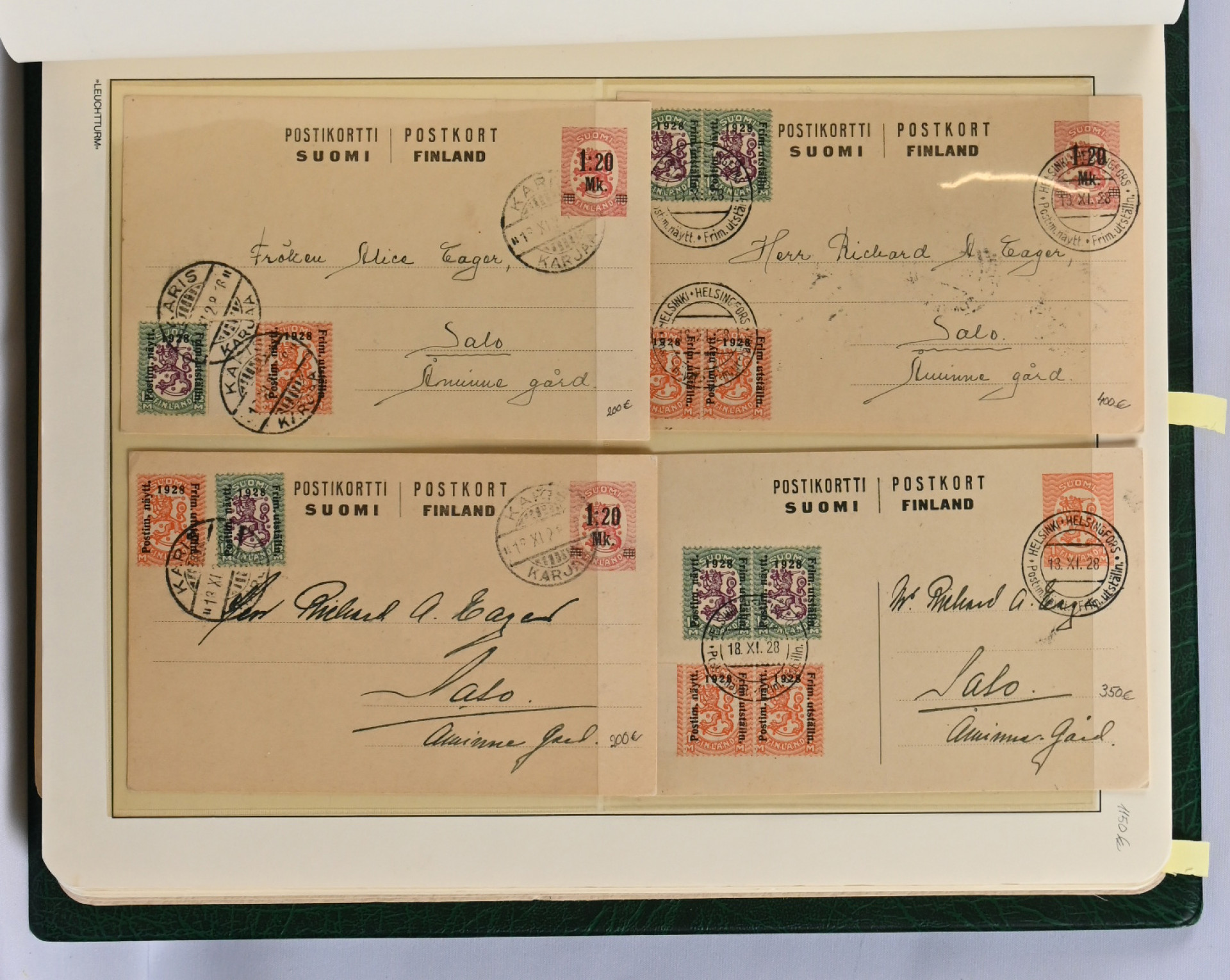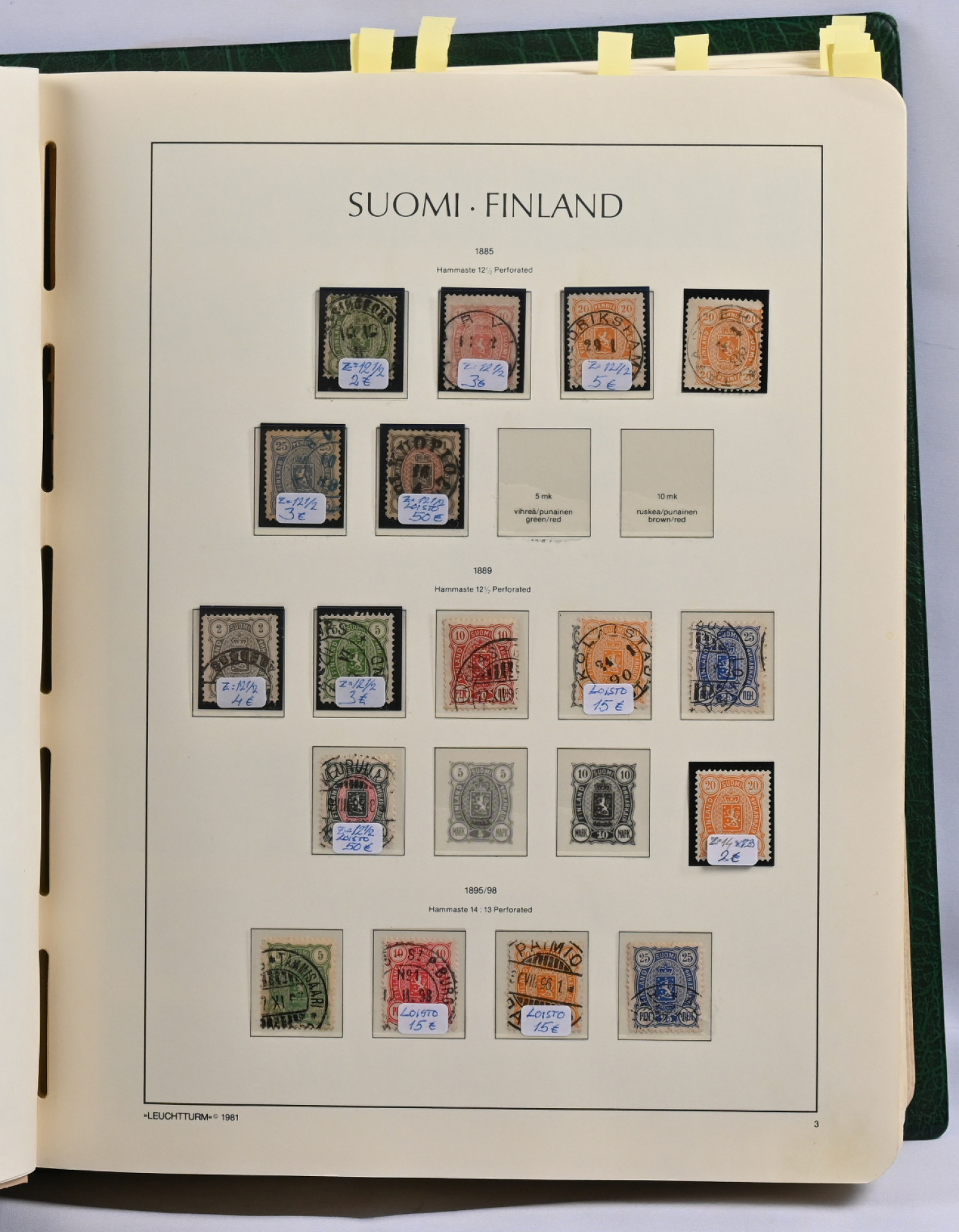 1860 - 2012 **/*/o kokoelma kolmessa taskukansiossa koteloin. Kansioissa on runsaasti lisäsivuja, joilla lisämateriaalia, ryhmiä, lähetyksiä ym. hieman huonosti järjestettynä. Mm. yli 60 isohampaista romusta kohtalaisiin, 1928 näyttely paljon, myös lähetyksiä, Zeppelin kolme kappaletta, reuna-alueita jne. Lisäksi neljäs kansio Ahvenanmaata, jossa vain niukasti merkkejä 1984 - 2012.