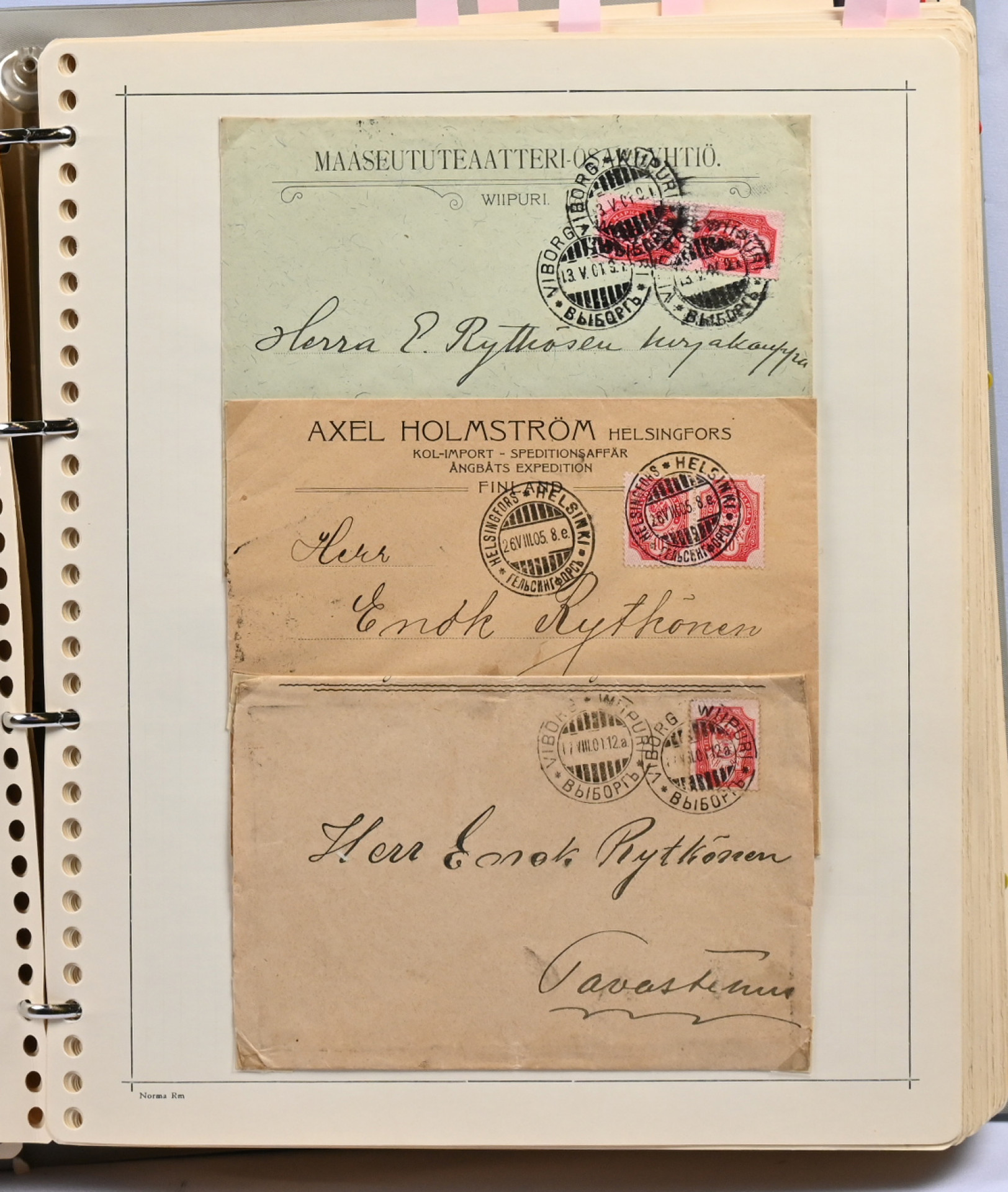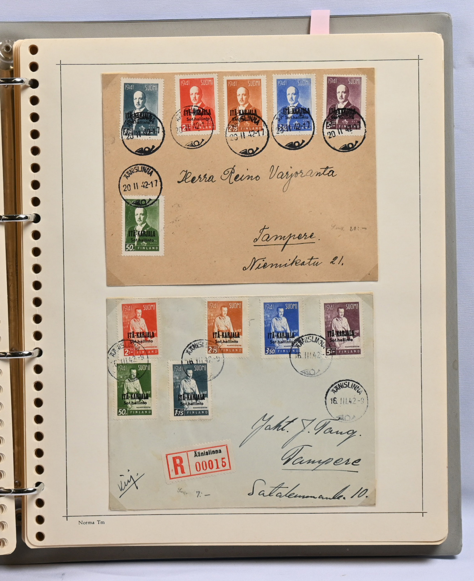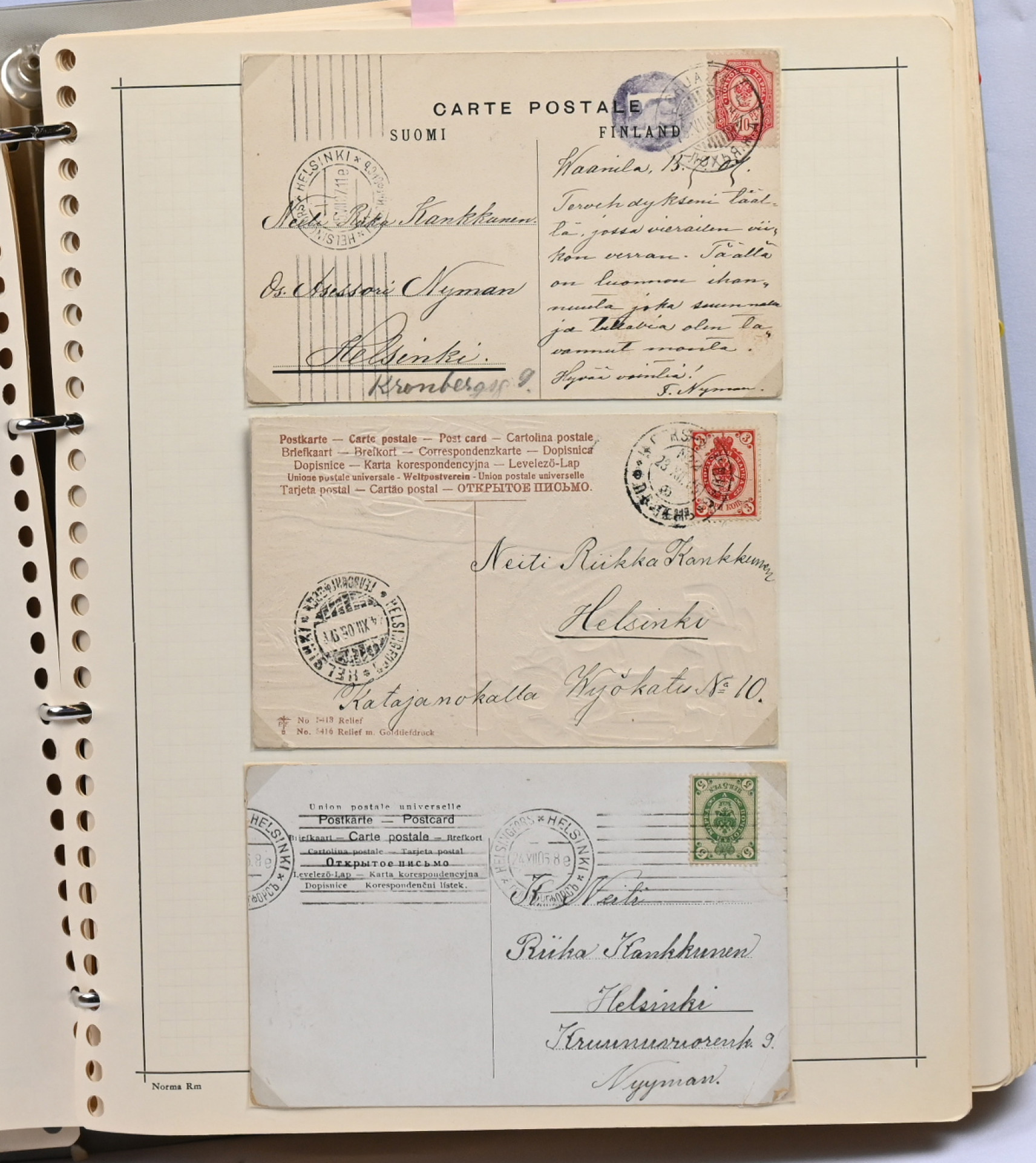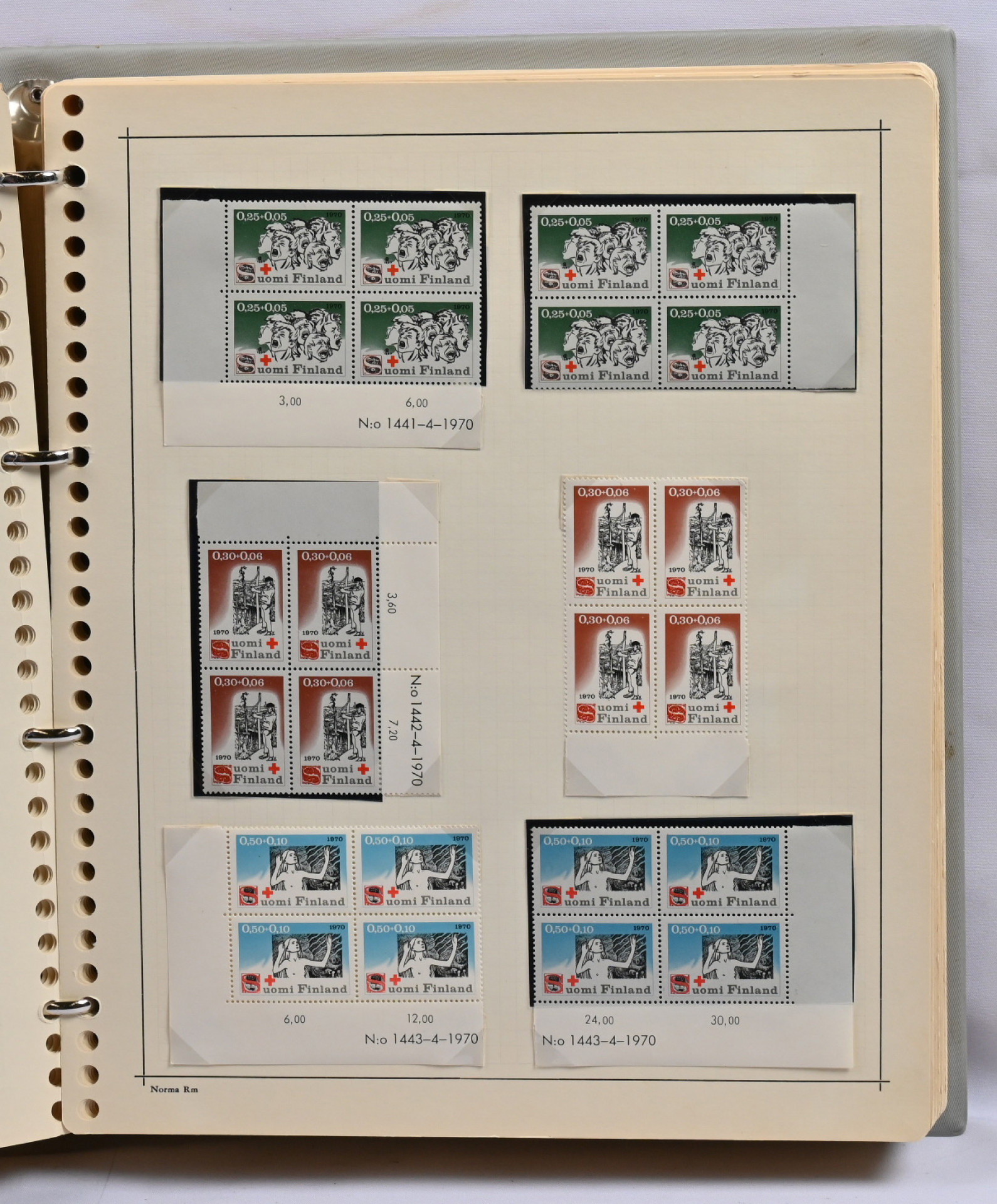 1866 - 1971 vanha **/*/o kokoelma neljässä kansiossa. Erittäin runsas materiaali. Paljon leimattuja kaksoiskappaleita, postilähetyksiä (paljon firmakuoria), postituoreita nelilöitä ym. Ei kalliita merkkejä, mutta mm. Vaasa 5 markkaa, Zeppelin ** ym