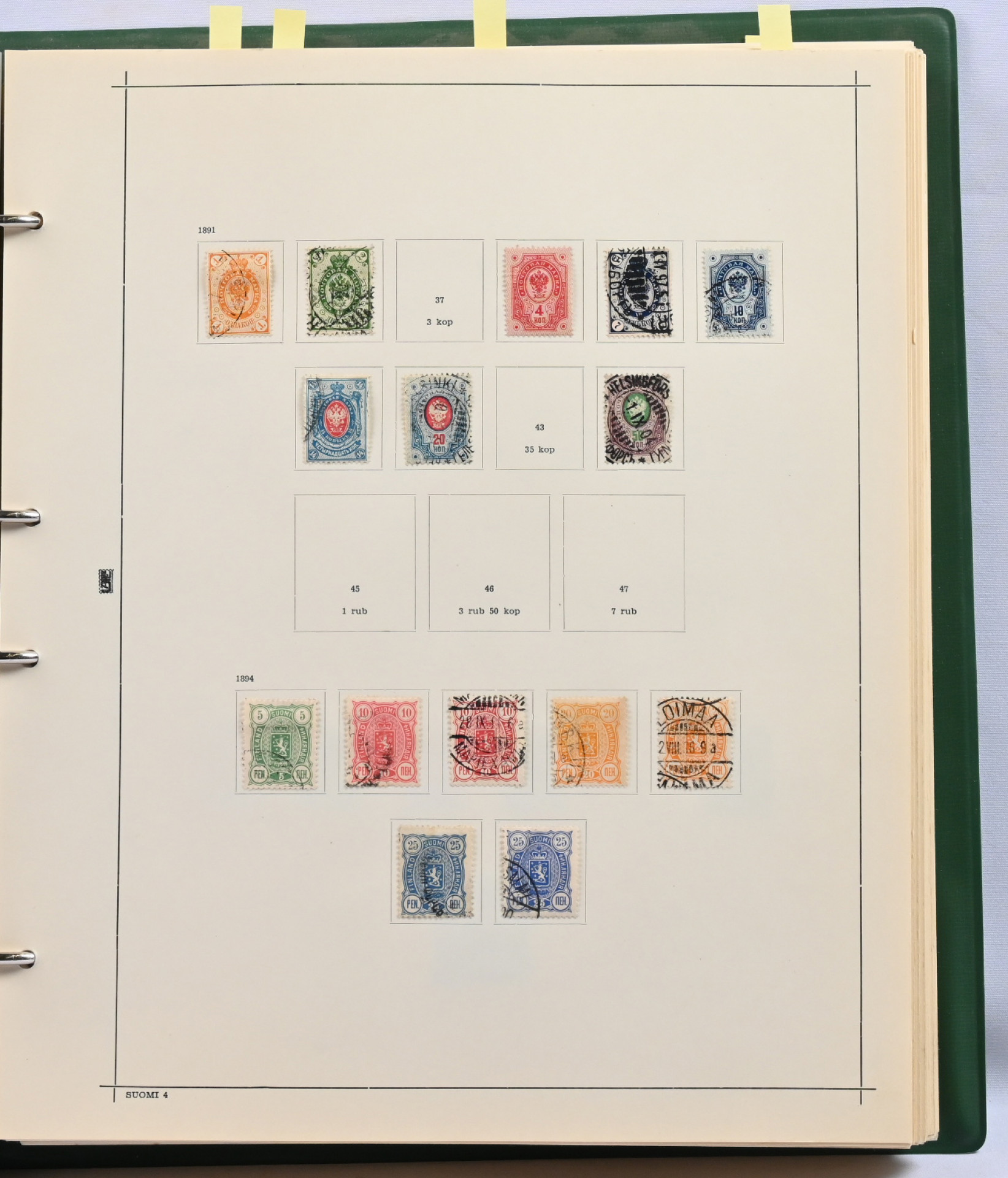 1866 - 1996 pääosin leimattu kokoelma albumissa. Mukana mm. viisi isohampaista (vikaa), 1889 10 markkaa o, 1891 rengasmerkkien kopeekka-arvoja kahdeksan erilaista, musta 10 markkaa, Zeppelin *, hiukan reuna-alueita, kauniita leimauksia etenkin uudemmassa päässä