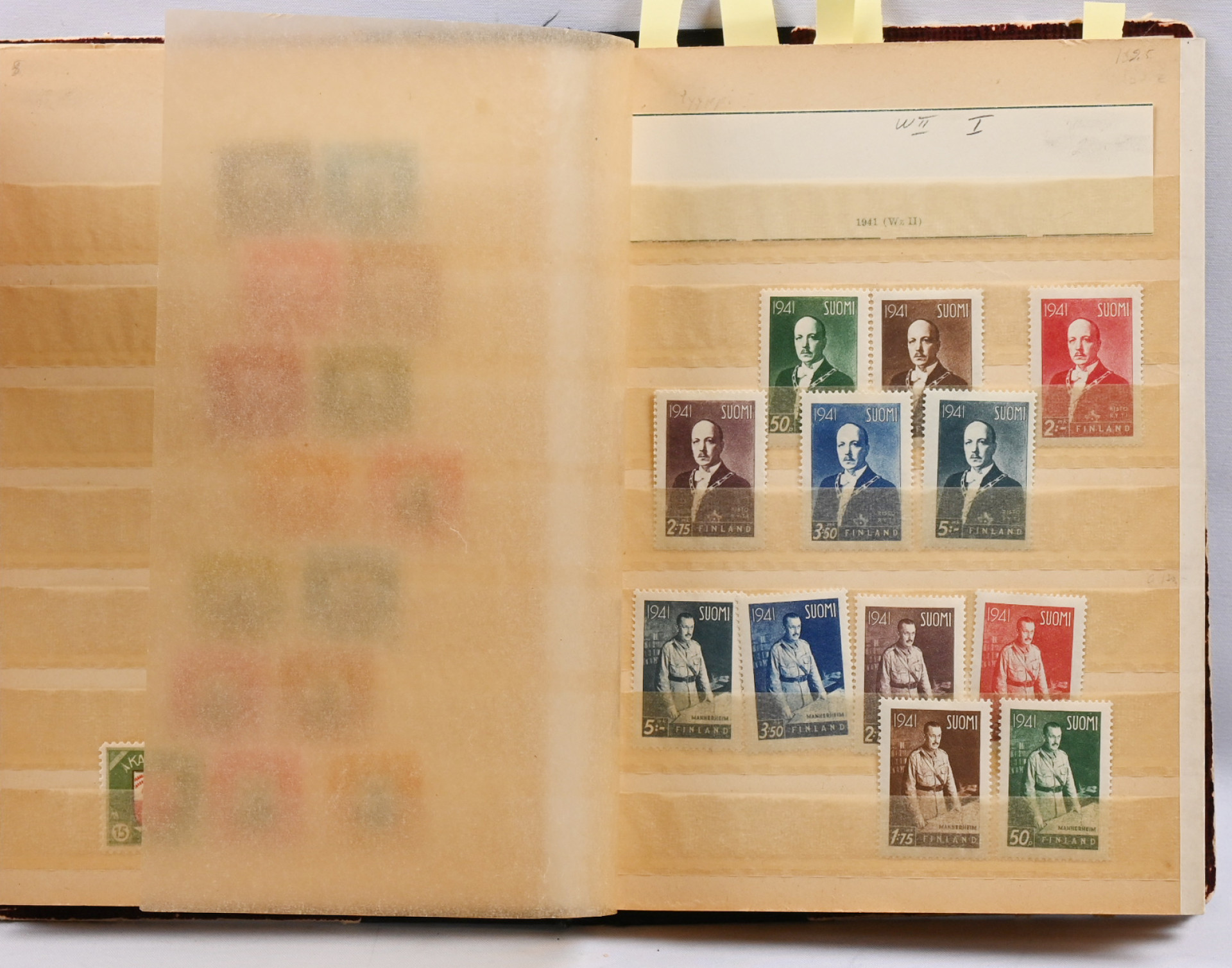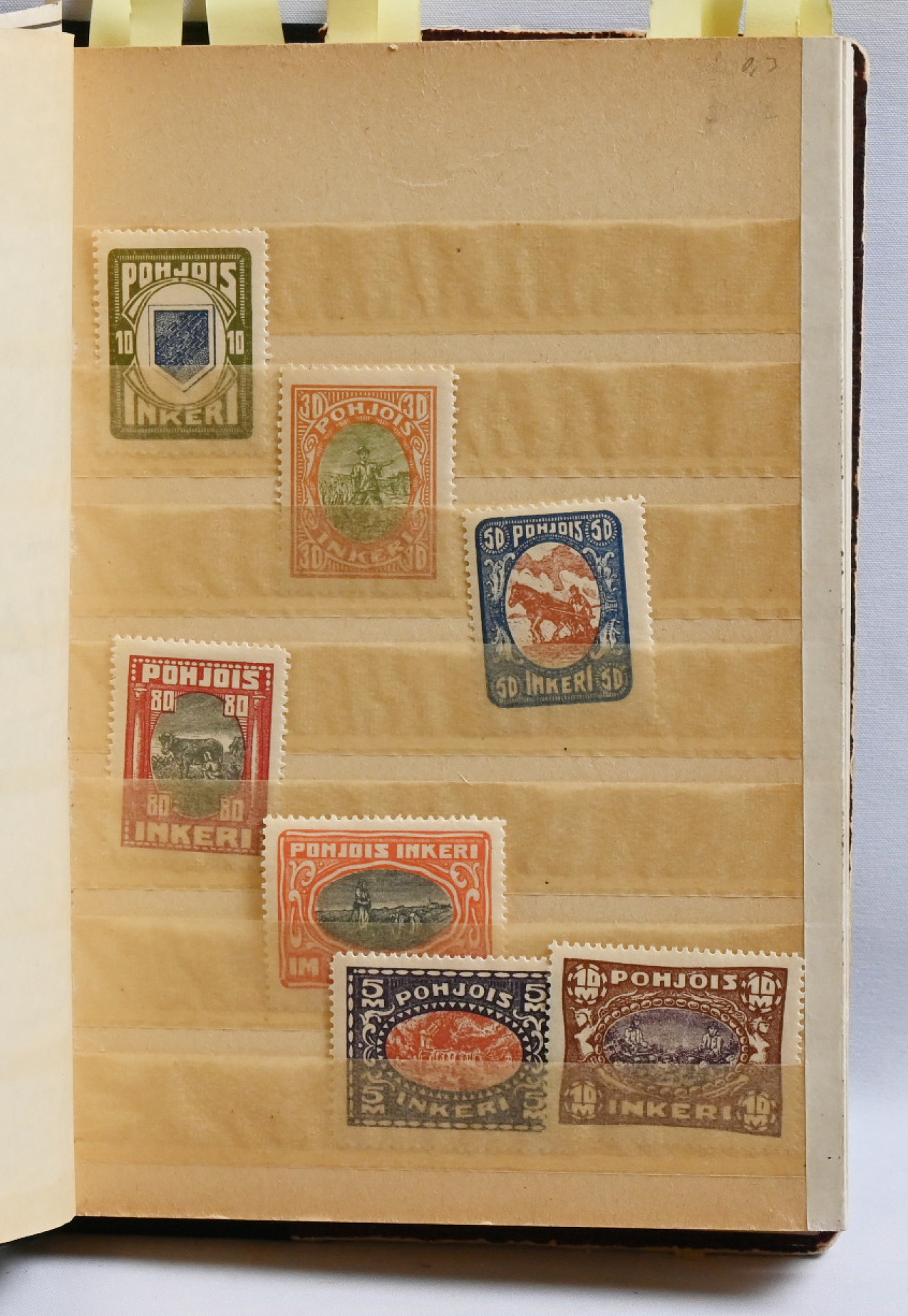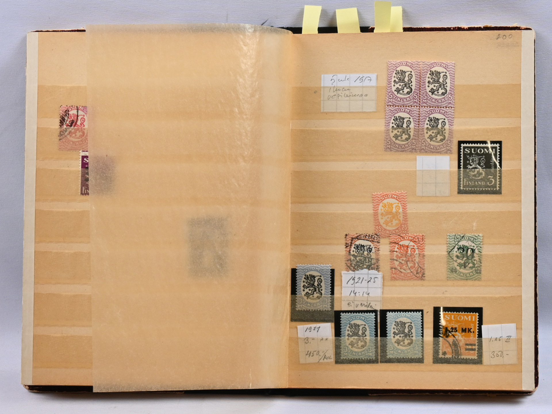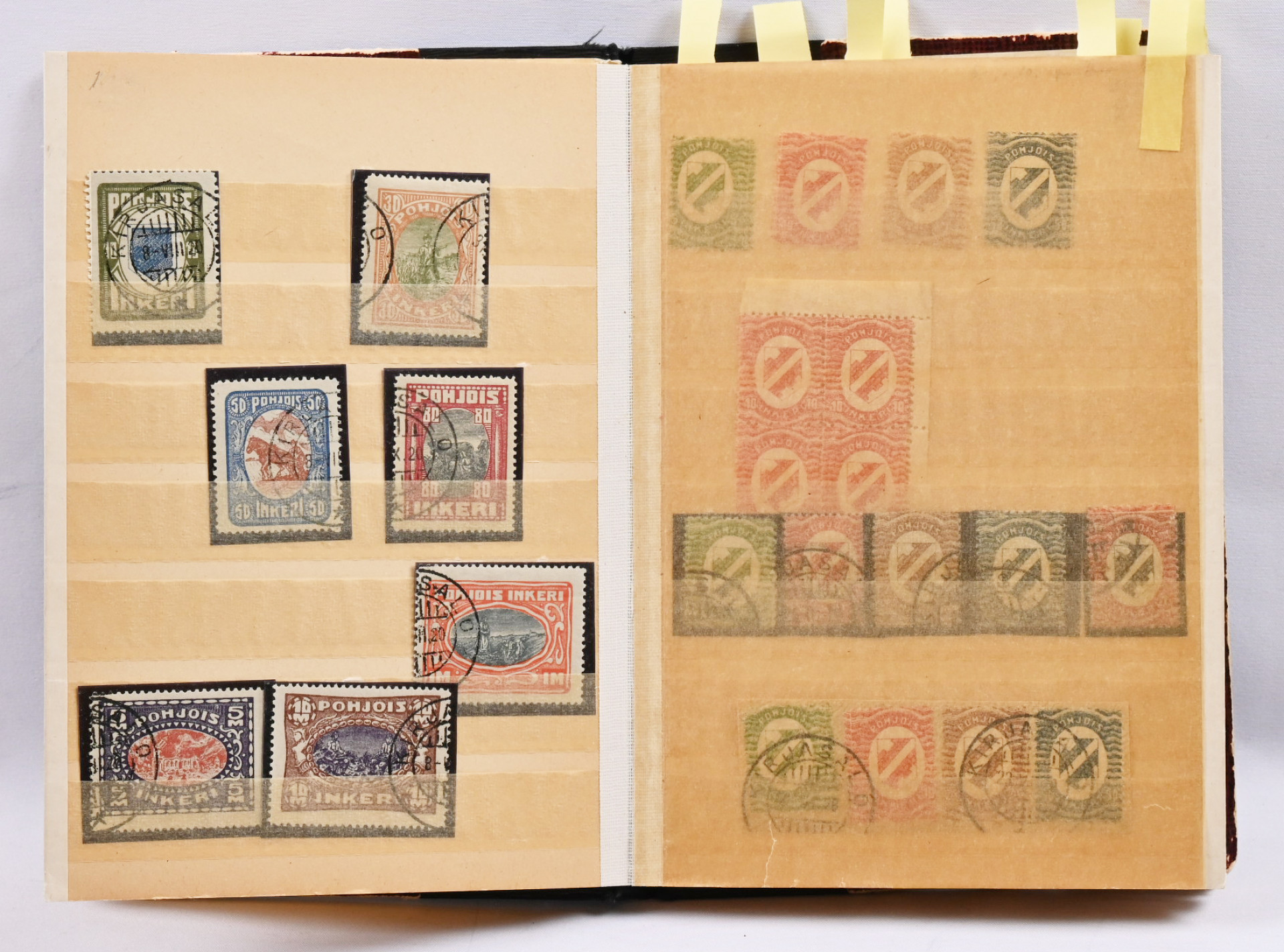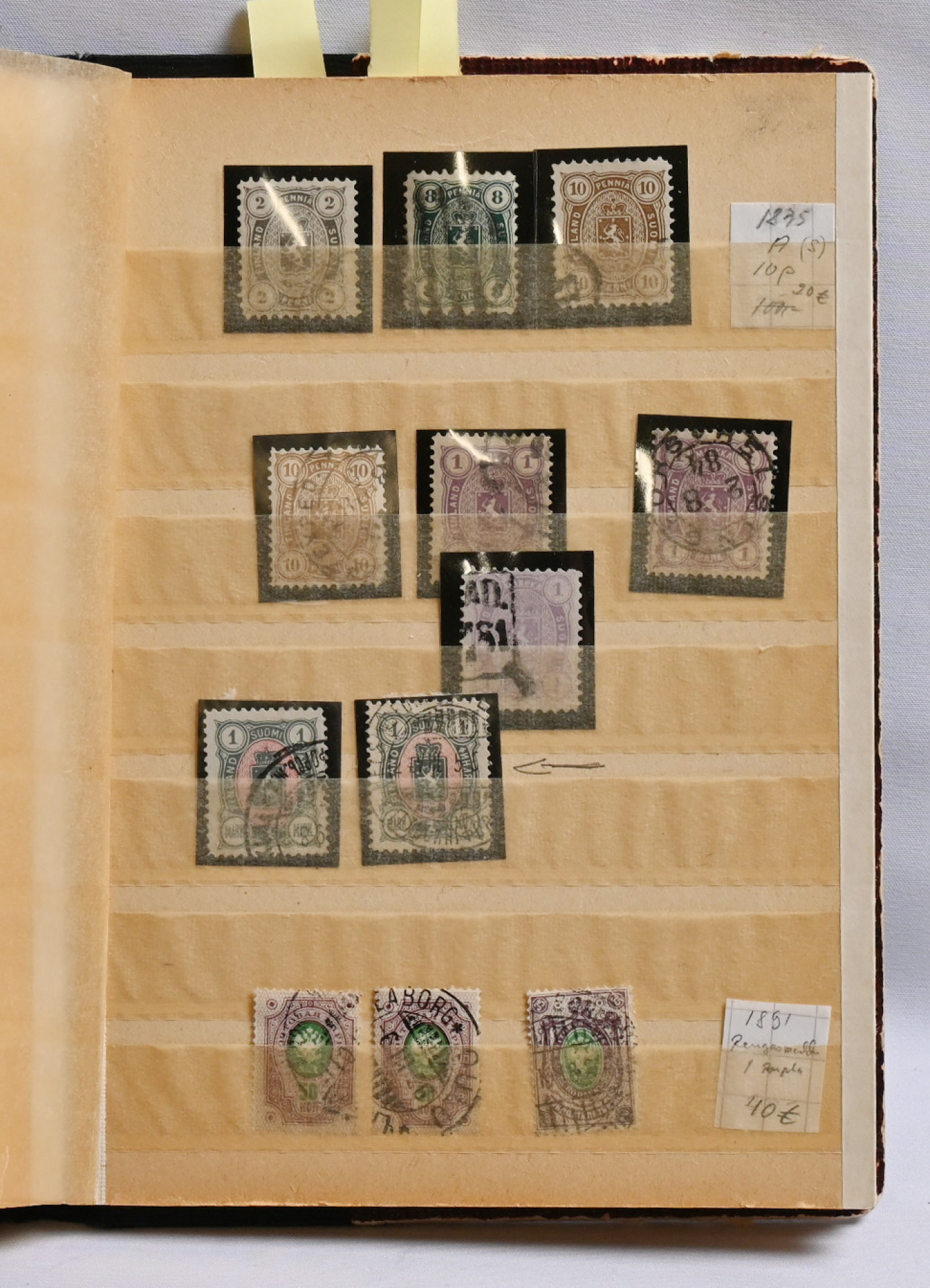 1866 alkaen hyvä erä valikoituja kohteita kahdessa pienessä säiliökirjassa mm Karjala-sarja **, Ryti- ja Mannerheim 19mm W2-sarjat **/* (Ryti 2,75 **), Pohjois-Inkeriä,
