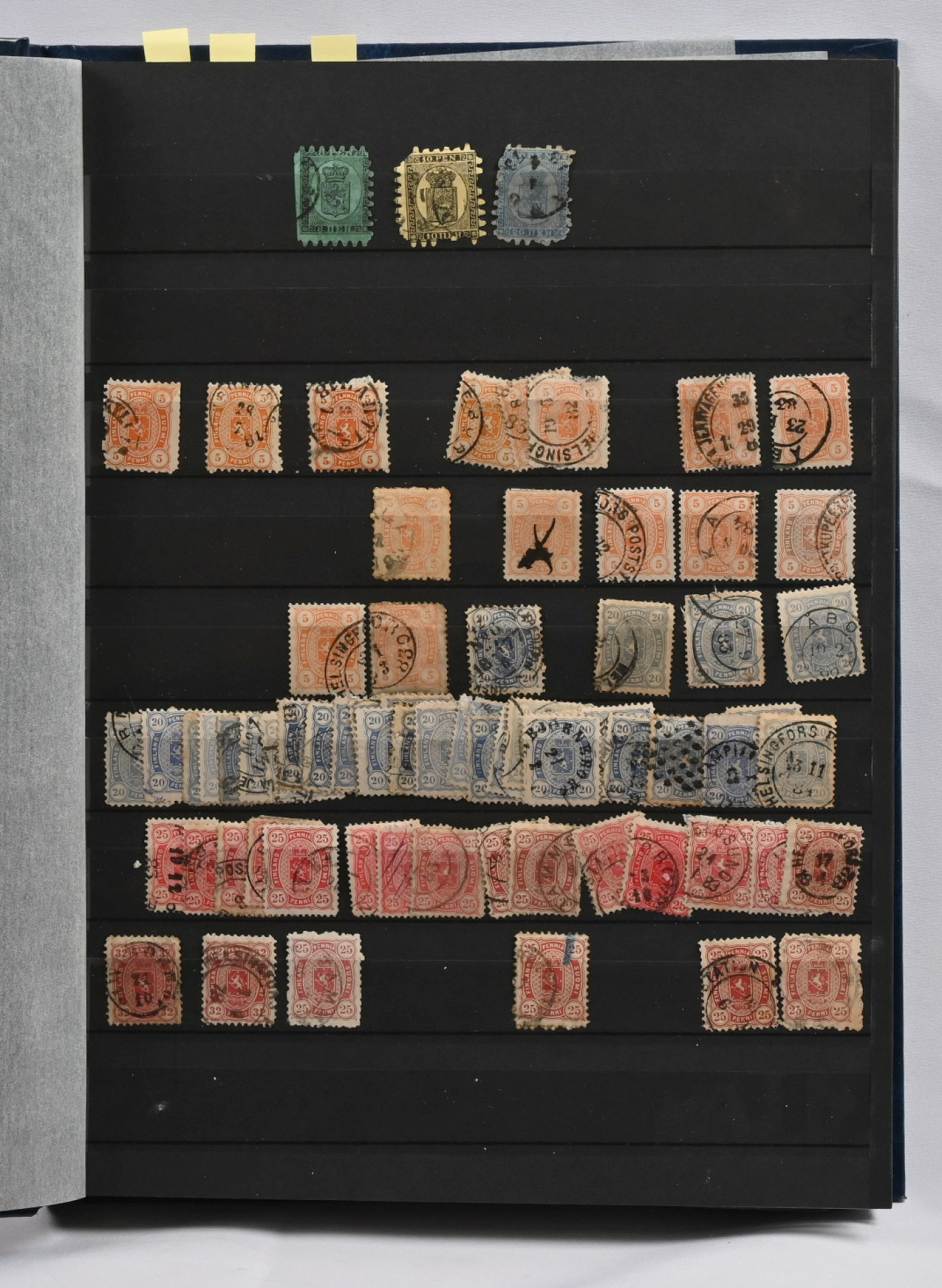 Varastoerä 1866 alkaen neljässä kansiossa myös Itä-Karjalaa ja Ahvenanmaata mm. numeroitu pienoisarkki, loistoja jne