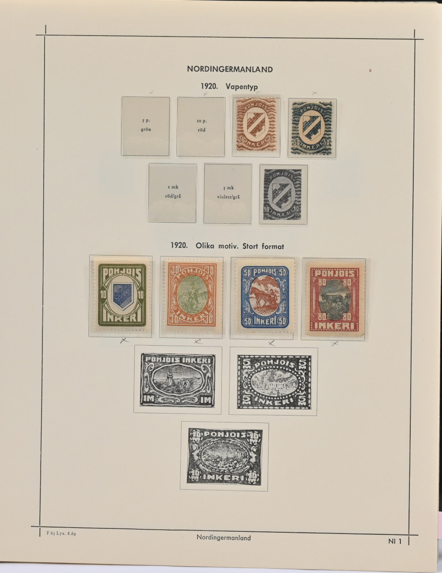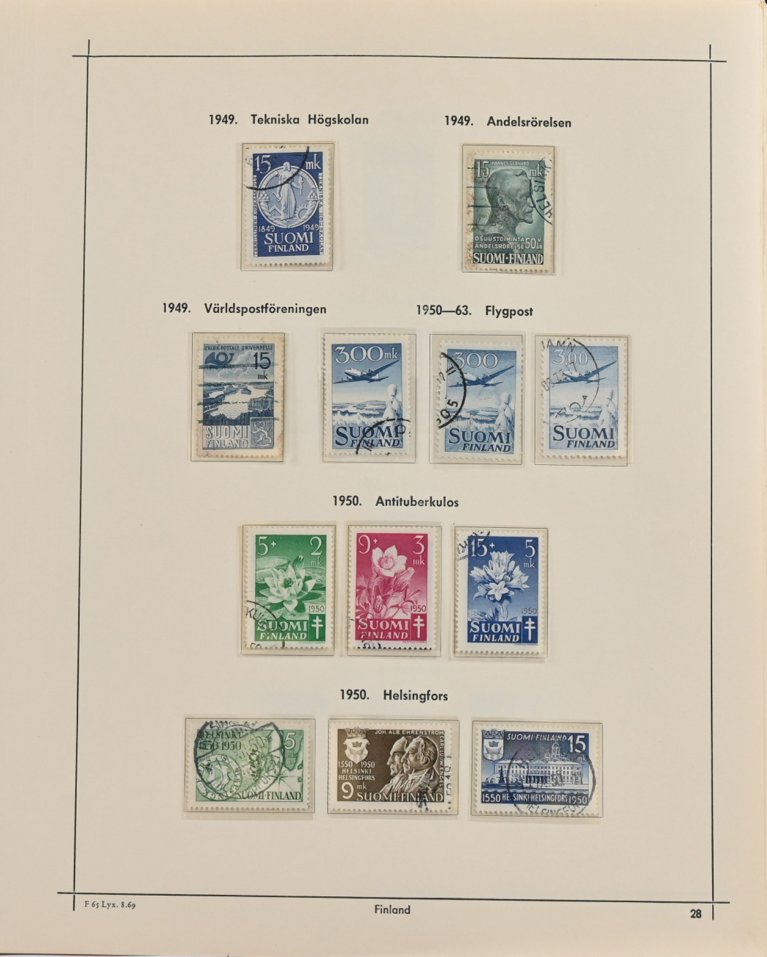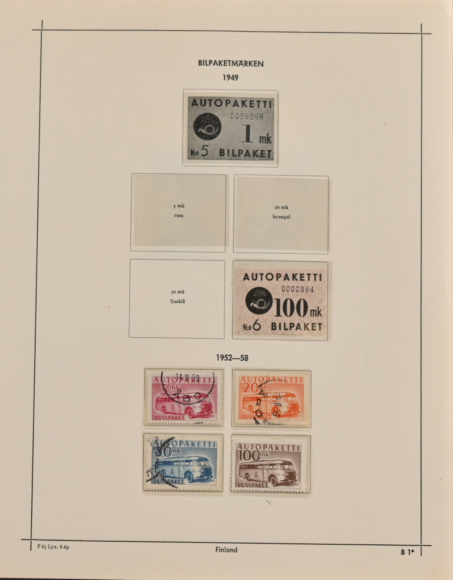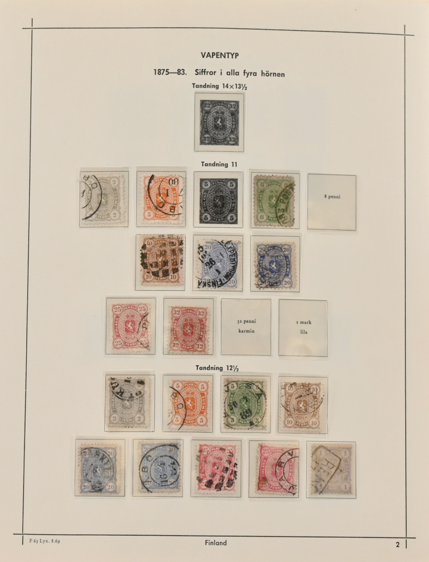 1875 - 1974 **/*/o peruskokoelma kansiossa. Joitakin keskikintaisia merkkejä (mm. rengasmerkkejä) ja vähän reuna-alueita