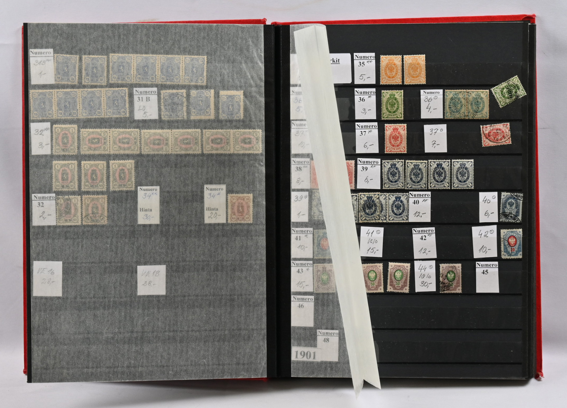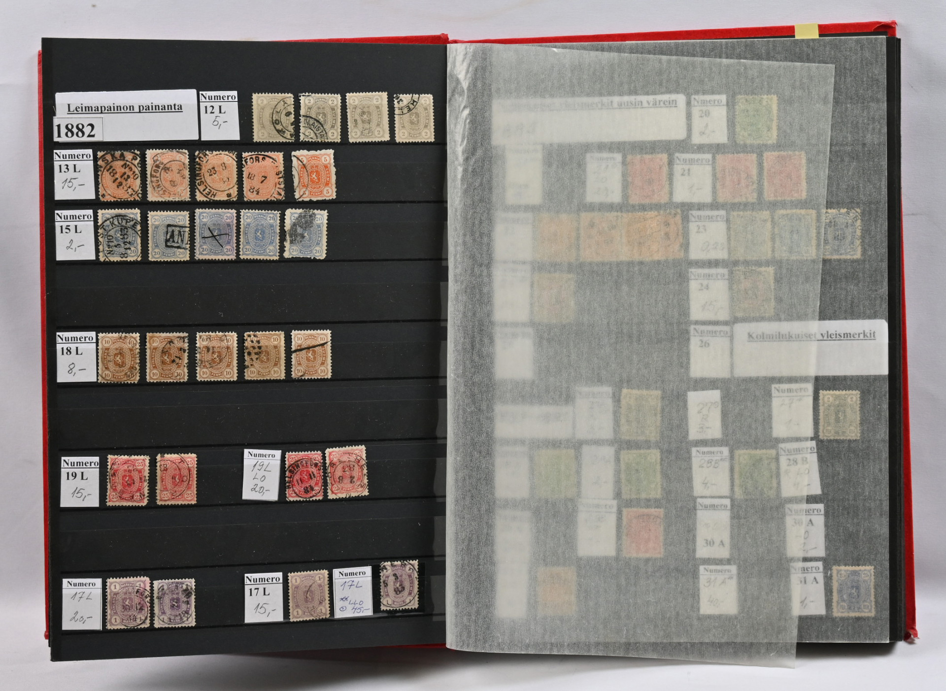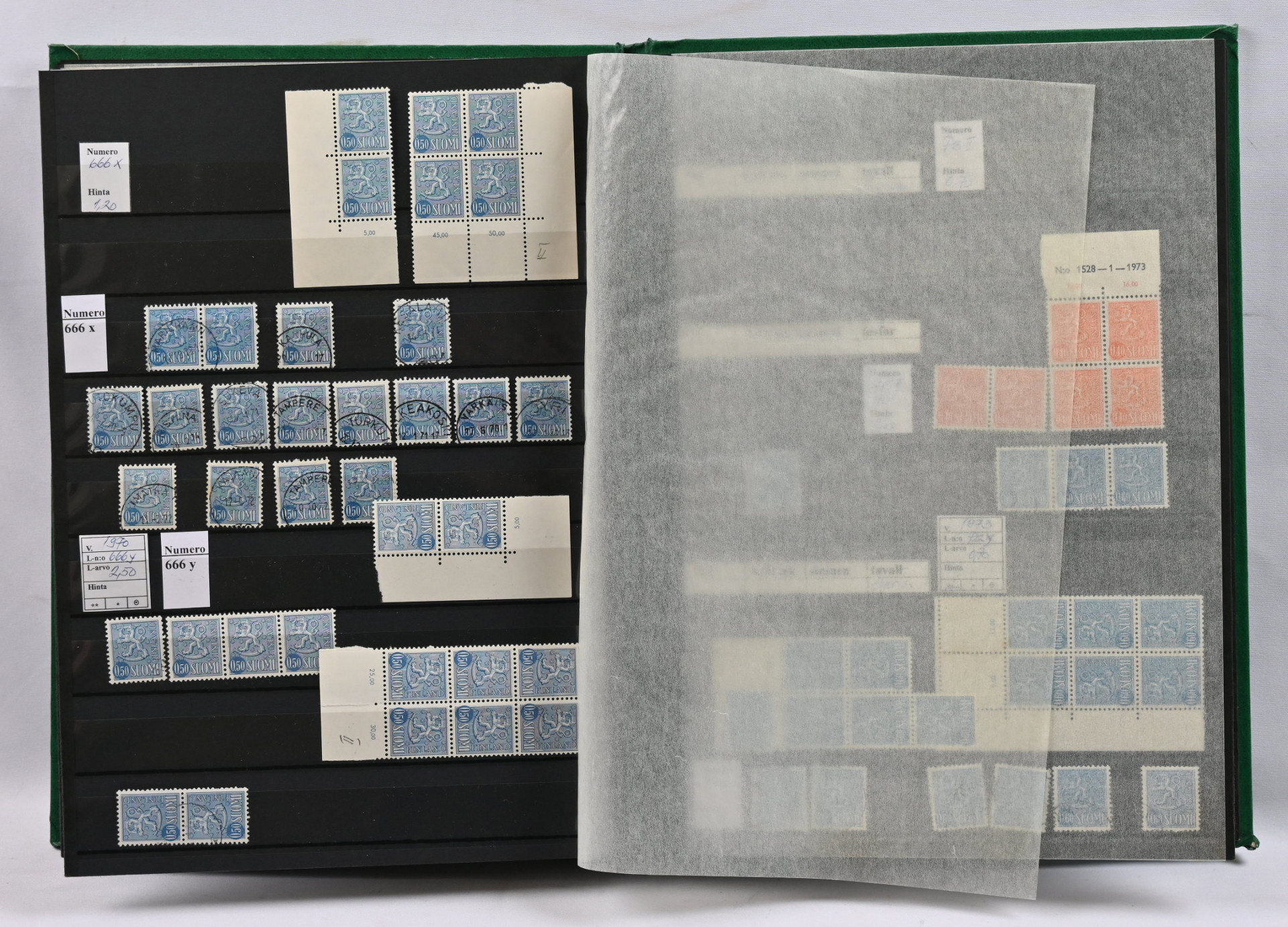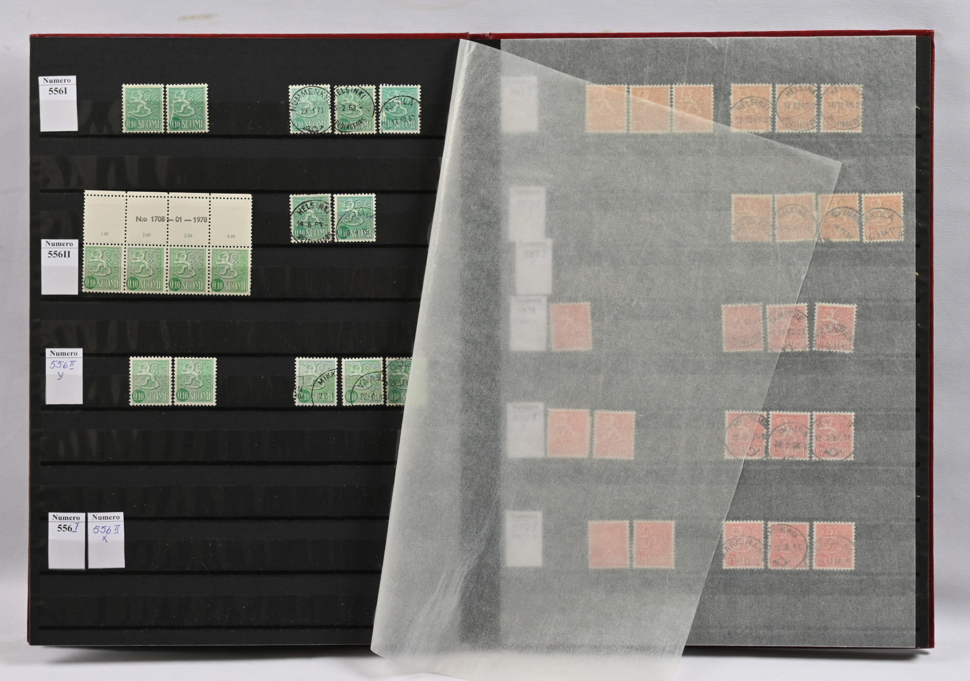 1875 - 1975 käyttösarjoja varastoerä viidessä säiliökirjasa leimattua ja postituoretta ** myös loistoja ja ryhmiä