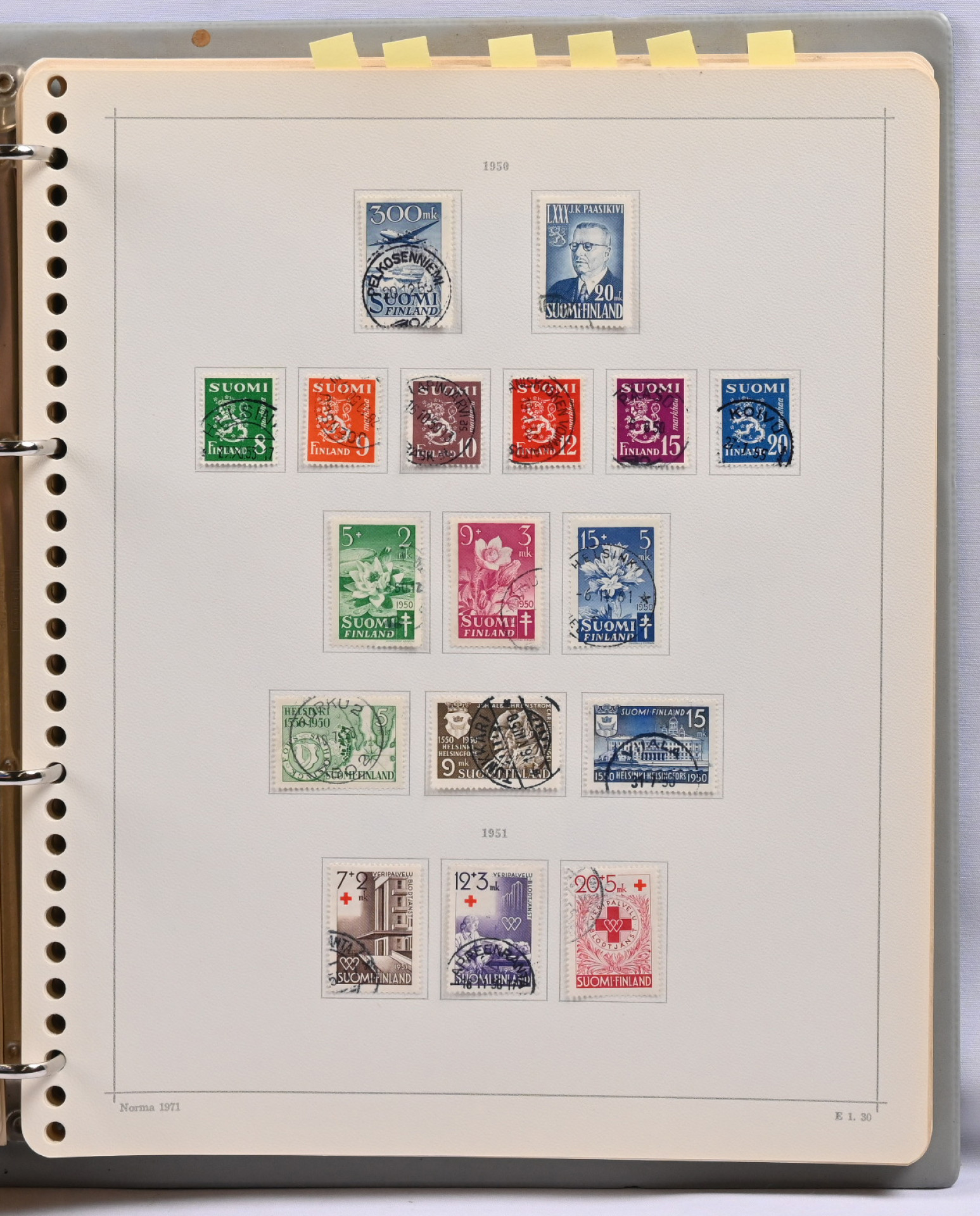 1875 - 1976 leimattu peruskokoelma kansiossa. Vanhassa paljon puutteita, 1930-luvulta varsin täysi. Paljon kaunis- ja loistoleimaisia 1950 - 1970 -luvun merkkejä