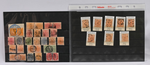 Hyvä värikäs erä alustoilla materiaalia mm. hienoja leimoja, hiukan reuna-alueita ym