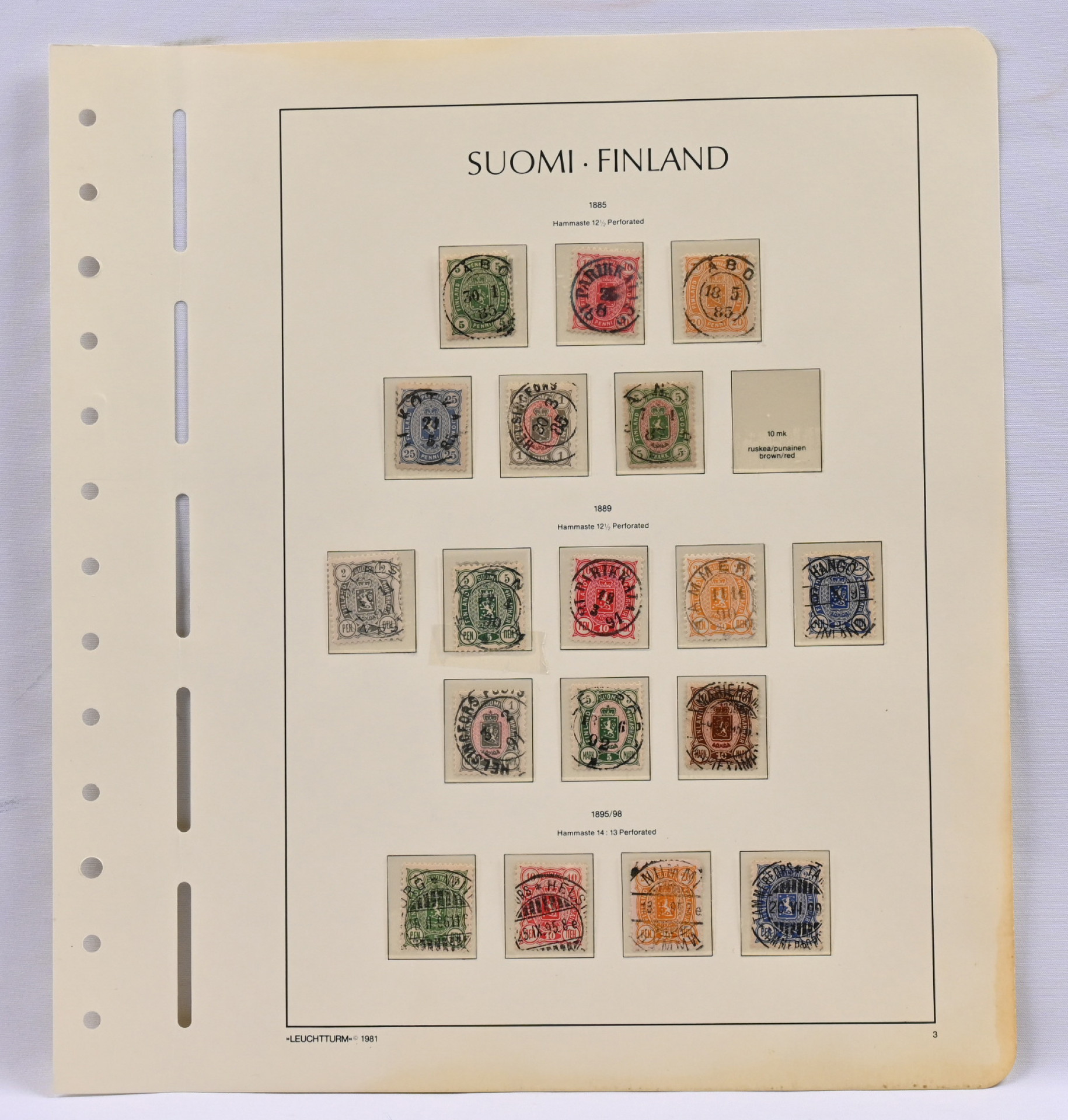 1885 - 1895 hienoleimaisia kokoelma sivulla mm. 1885 5 markkaa mutta hieman pyöreä kulma