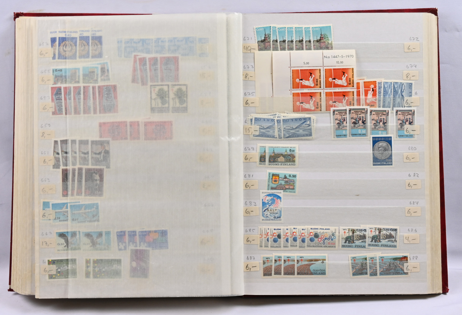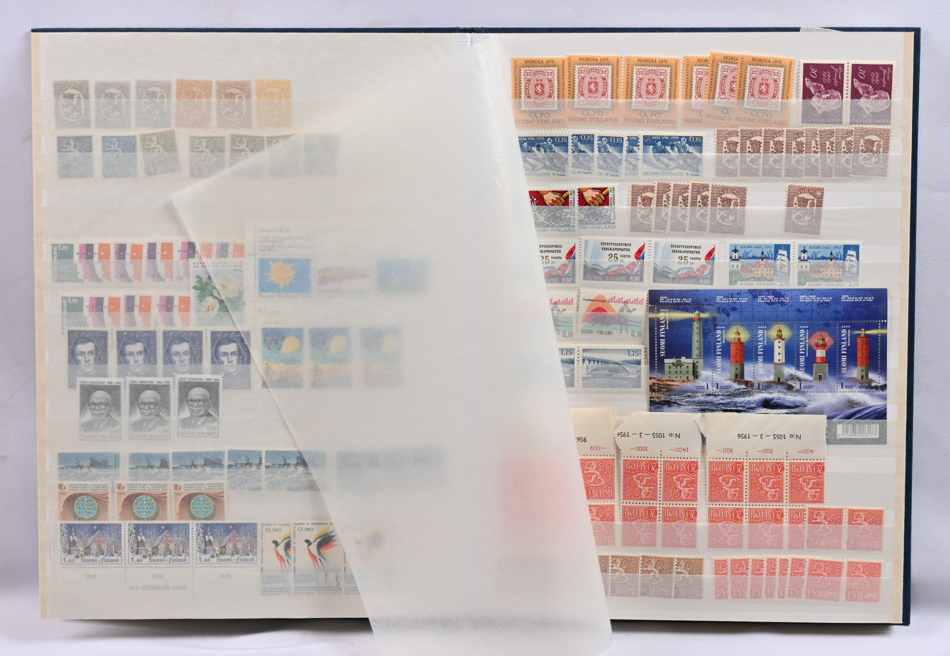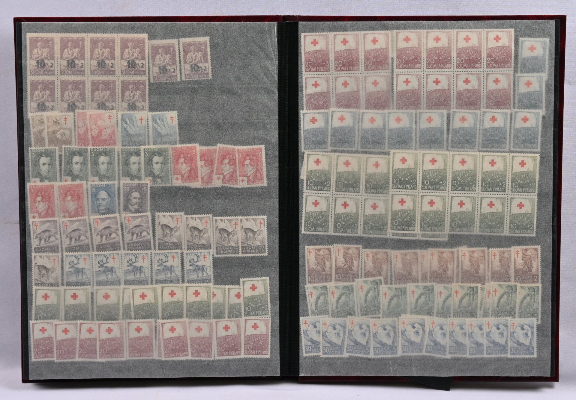 m/89 alkaen neljässä säiliökirjassa varastoerä lähinnä postituoretta ** materiaalia käyttösarjoja, juhlaa, Punaista Ristiä, Tubia jne