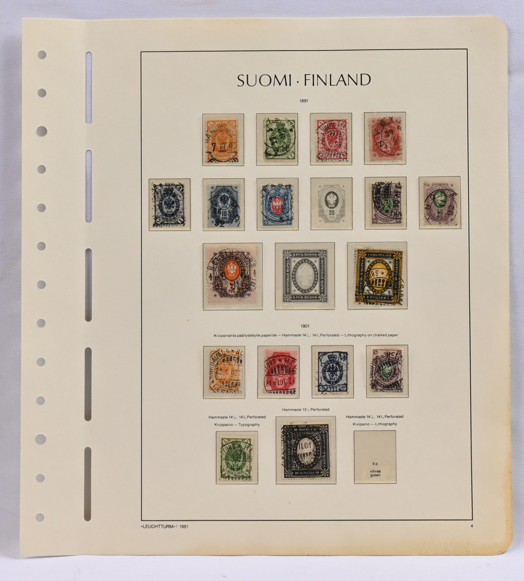 1891 - 1911 kokoelma sivuilla hienoja leimoja mm. 1891 7 ruplaa, kolme mustaa kymppiä ym