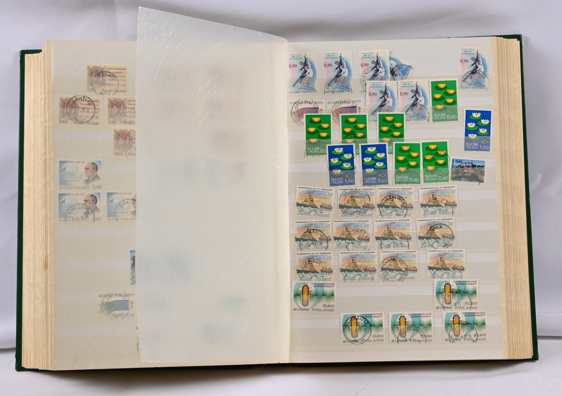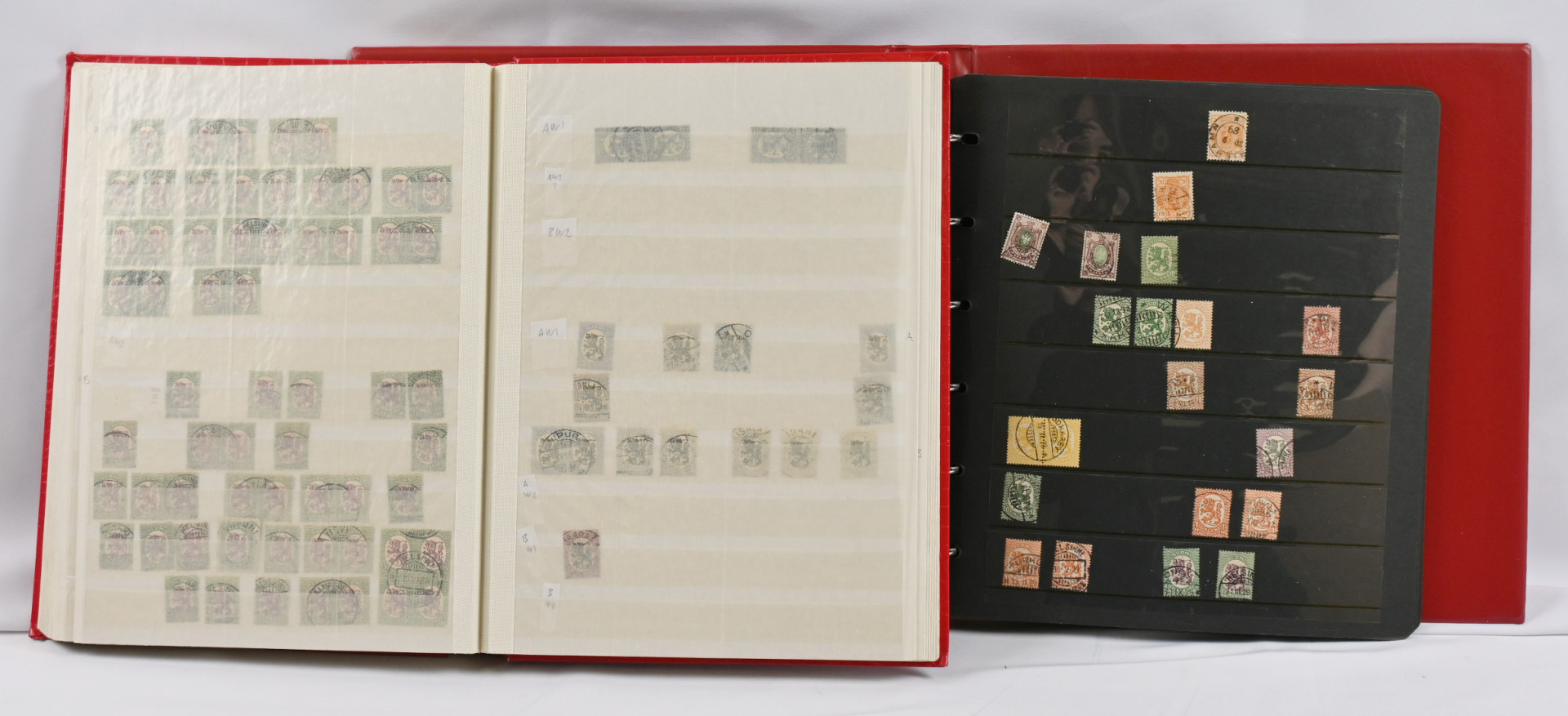 1917 - 1983 hieno lähinnä leimattu materiaali kahdessa säiliökirjassa ja yhdessä säilytyslehtikansiossa. Paljon m/17, m/1975 ja juhla/punaristi/tubi ym. kaunis- ja loistoleimaista, kenttäpostimerkkejä.