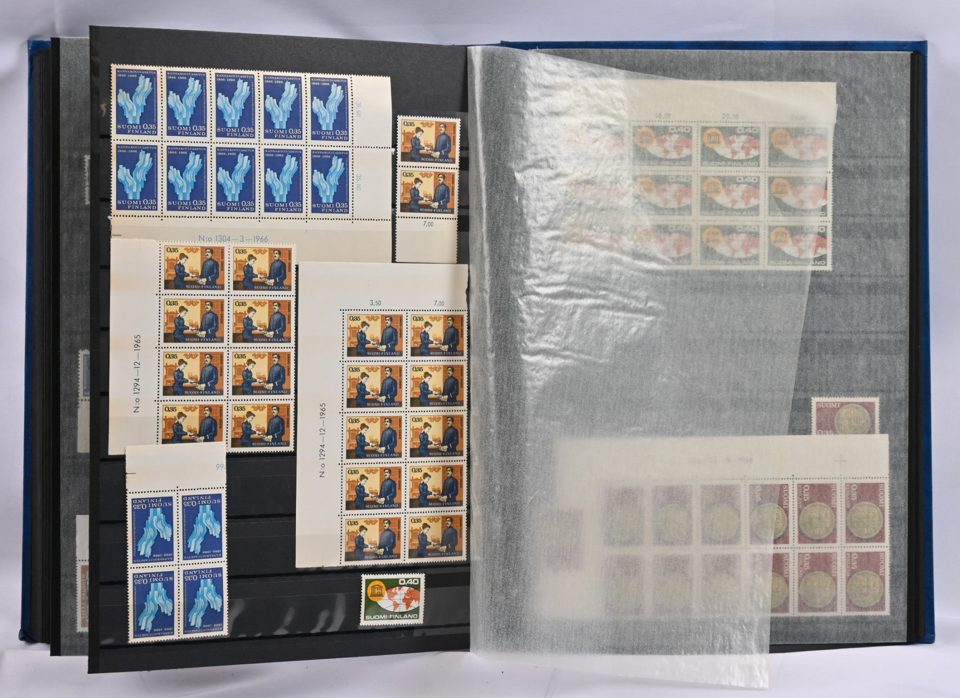 1917 - 1989 runsas, lähinnä postituore ** varastoerä neljässä paksussa säiliökirjassa. Vanhassa päässä myös jonkin verran leimattua. Paljon ryhmiä, nelilöitä, kuusiloita ym.