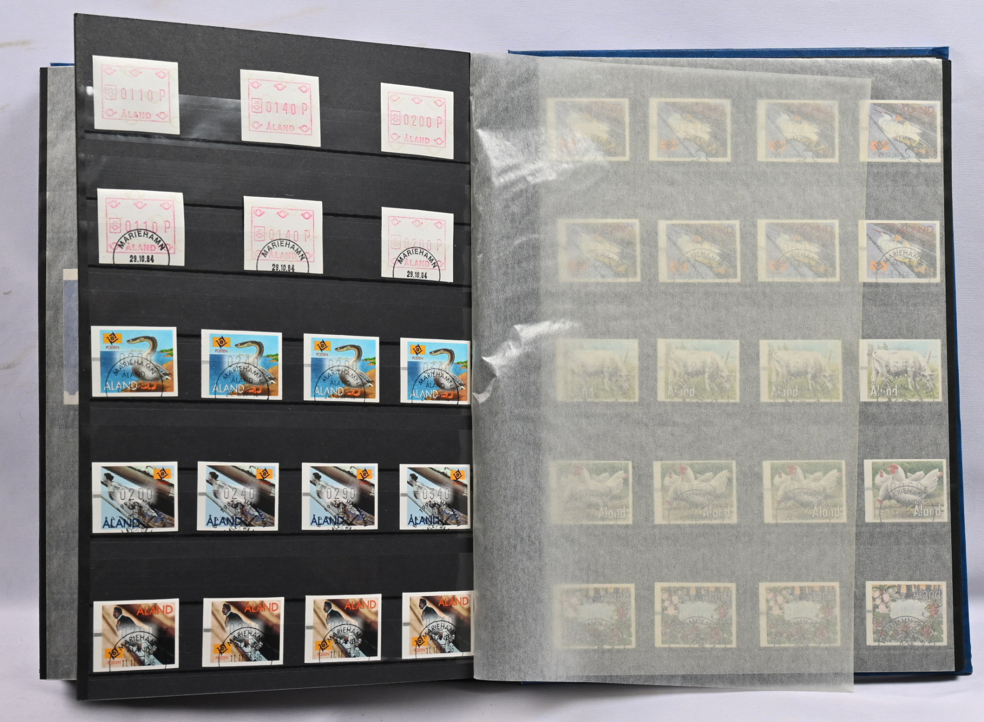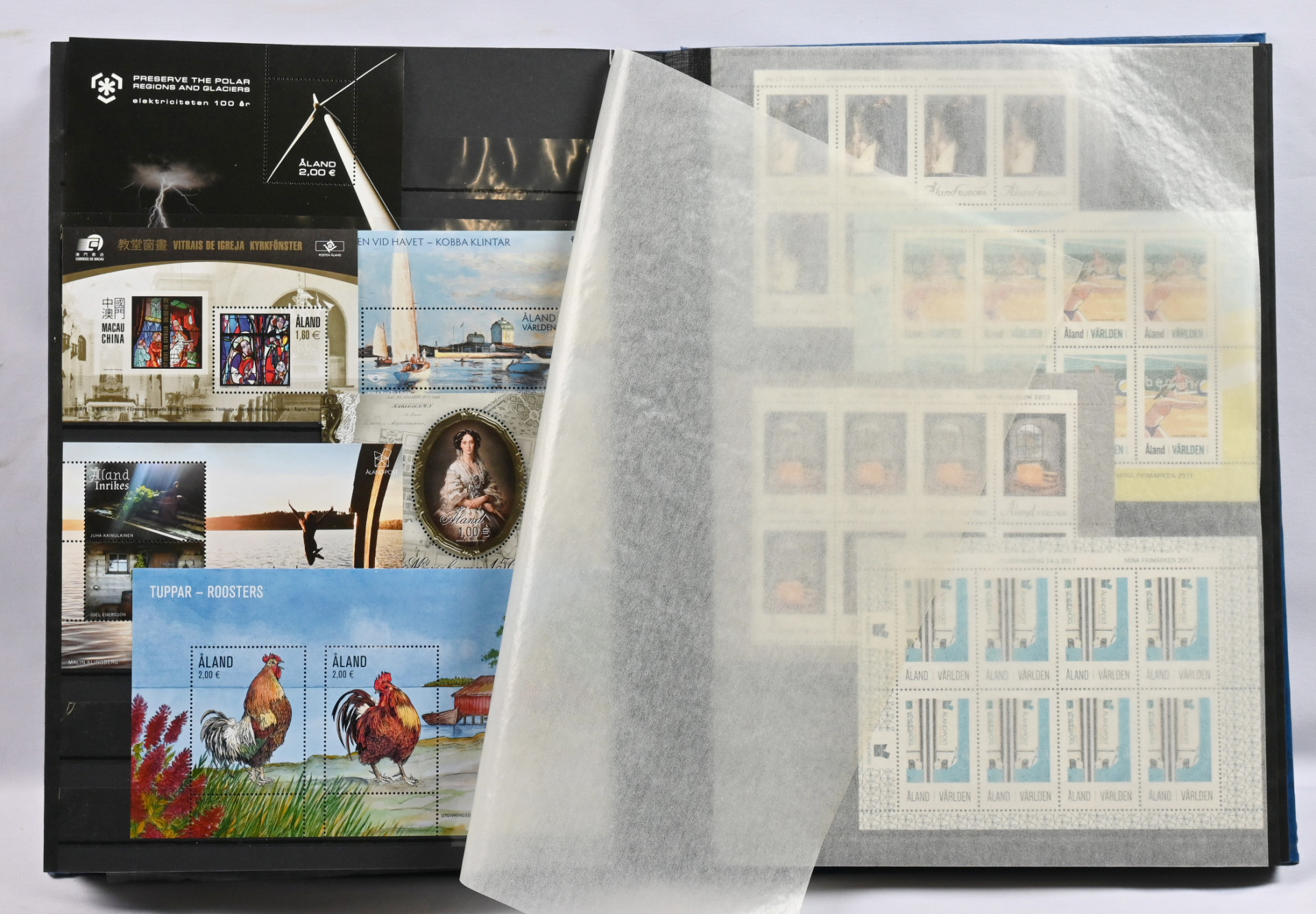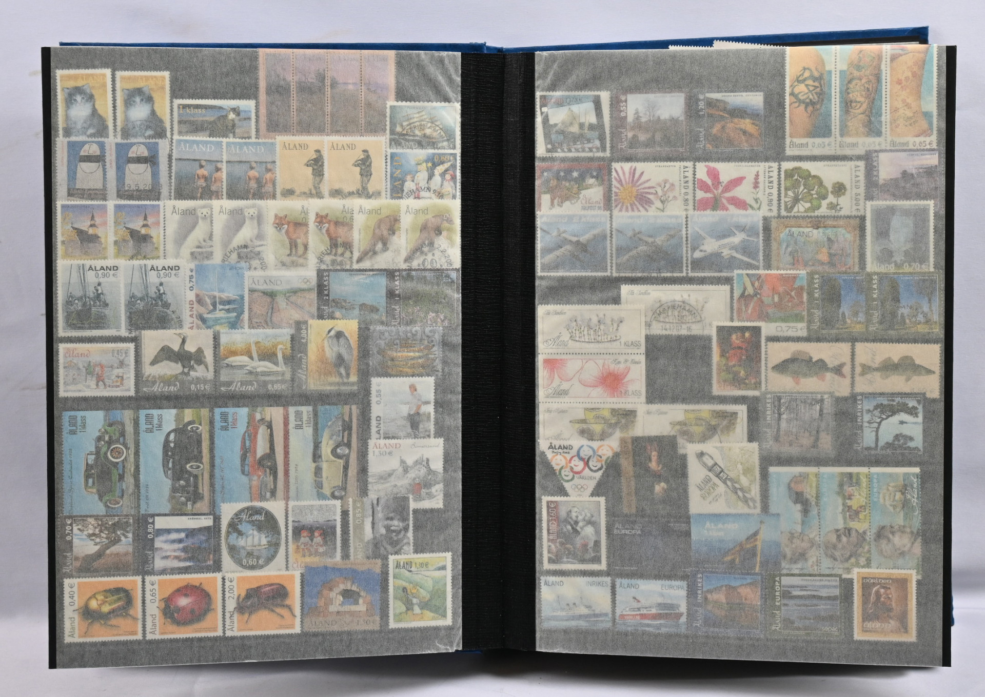 Kokoelmaerä paksussa säiliökirjassa 1917 - 2000 noin 2170 merkkiä ja kuusiloita ym. LIsäksi paksu kansio Ahvenanmaata ja erä FDC:tä yli 1 KG