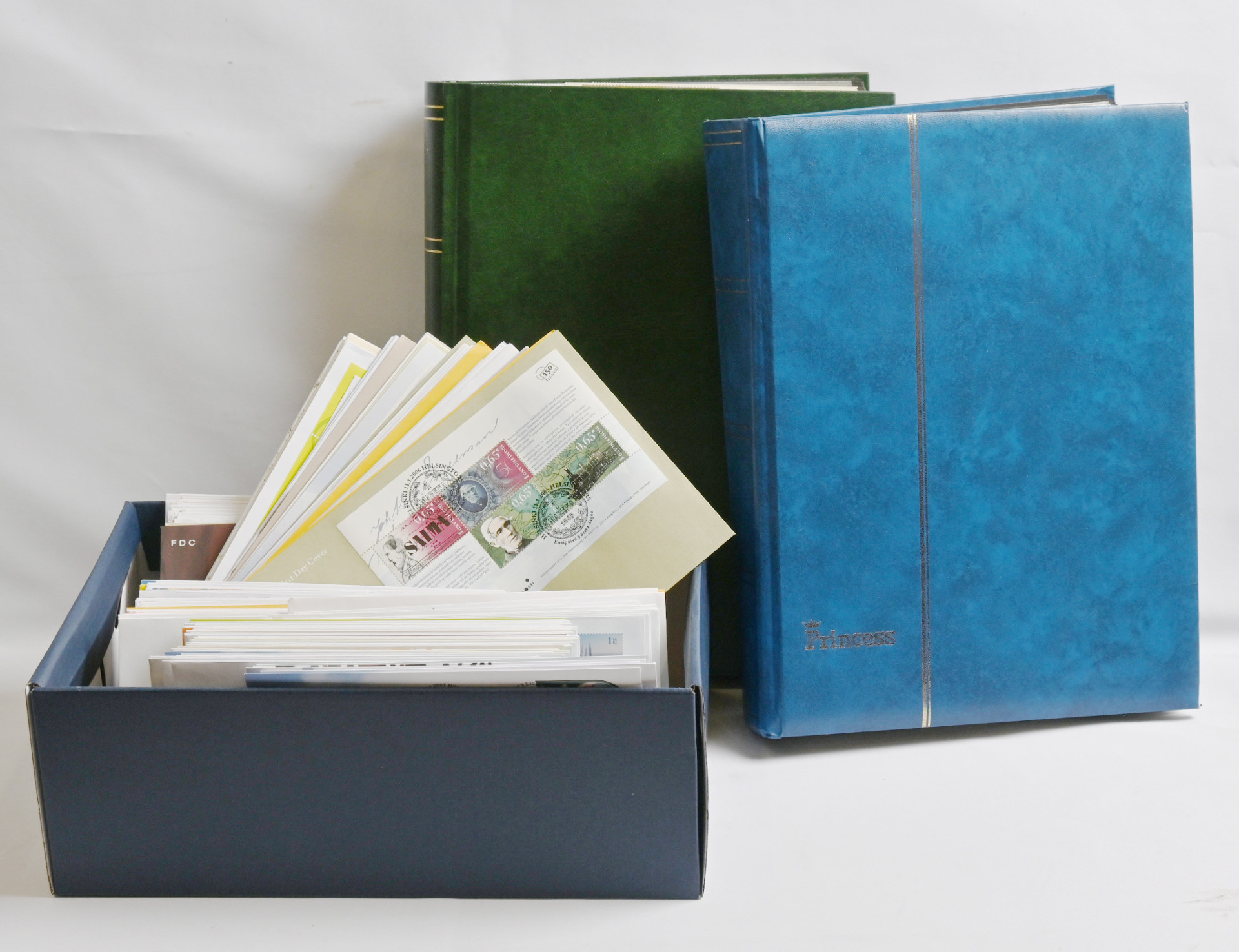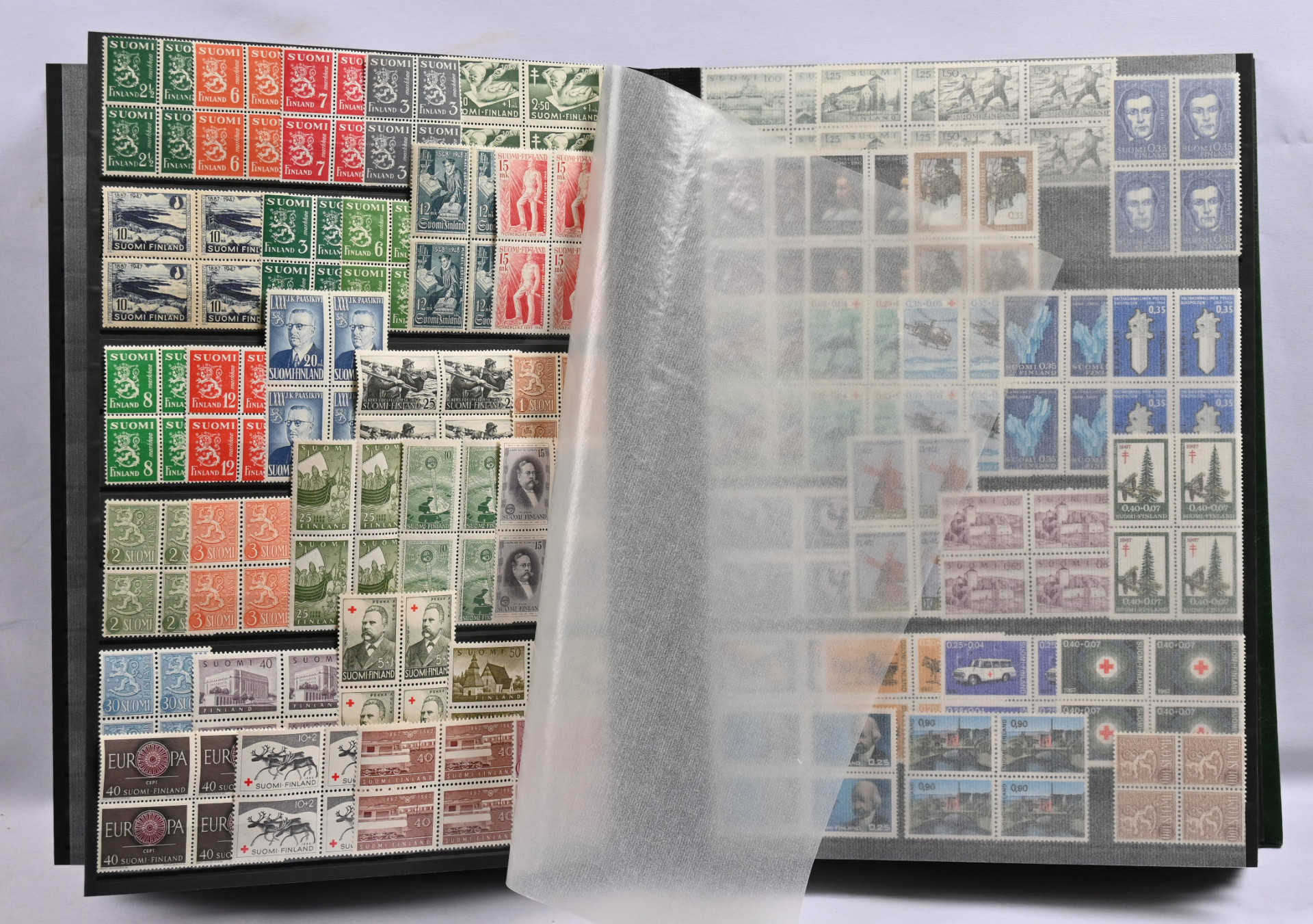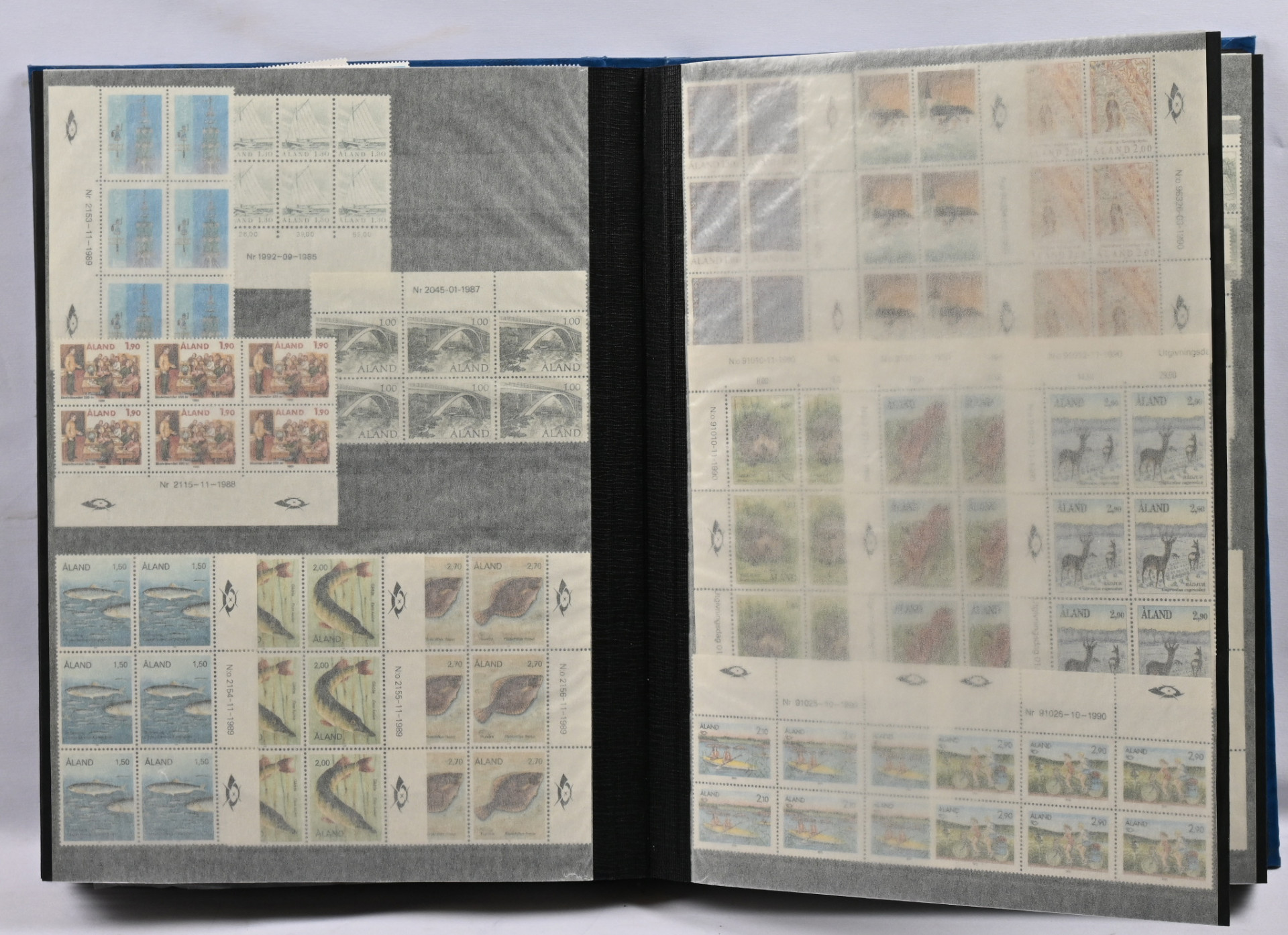 Kokoelmaerä paksussa säiliökirjassa 1917 - 2000 noin 2170 merkkiä ja kuusiloita ym. LIsäksi paksu kansio Ahvenanmaata ja erä FDC:tä yli 1 KG