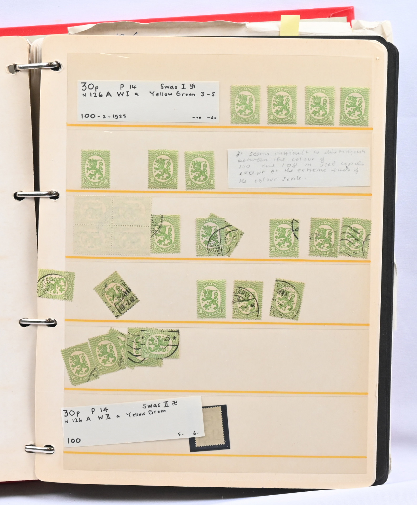Saarismallin tutkimusaineistoa erä kuudessa kansiossa myös vähän muutakin materiaalia kuten m/11 jne. Mukana mm. paljon arkkeja kuten 5 penniä numero 1 ja 10 penniä numero 2 jne.