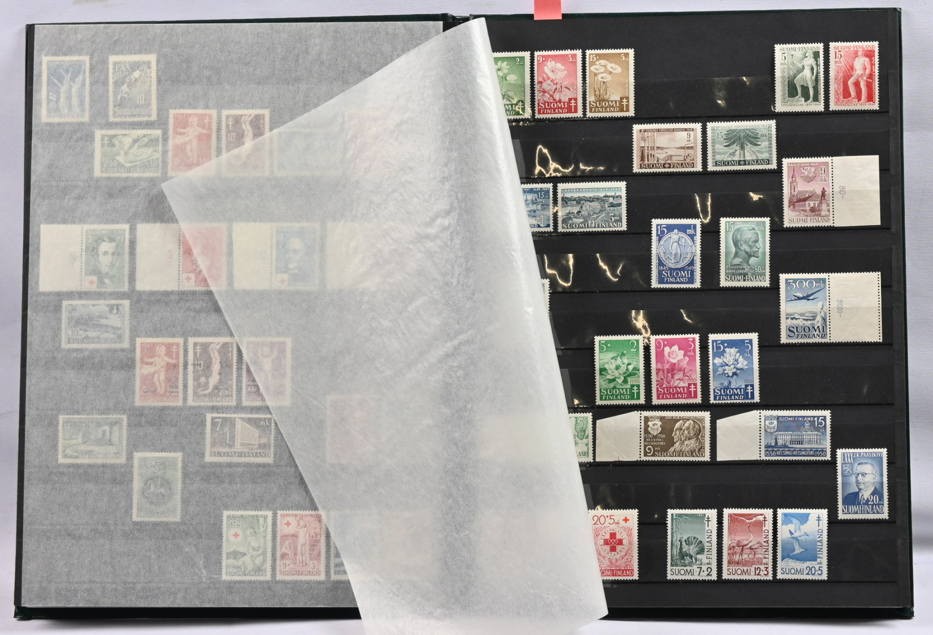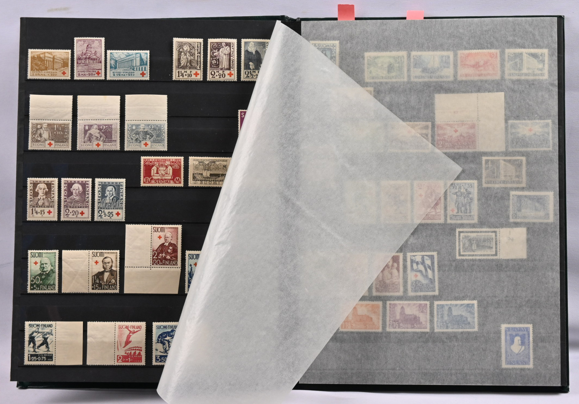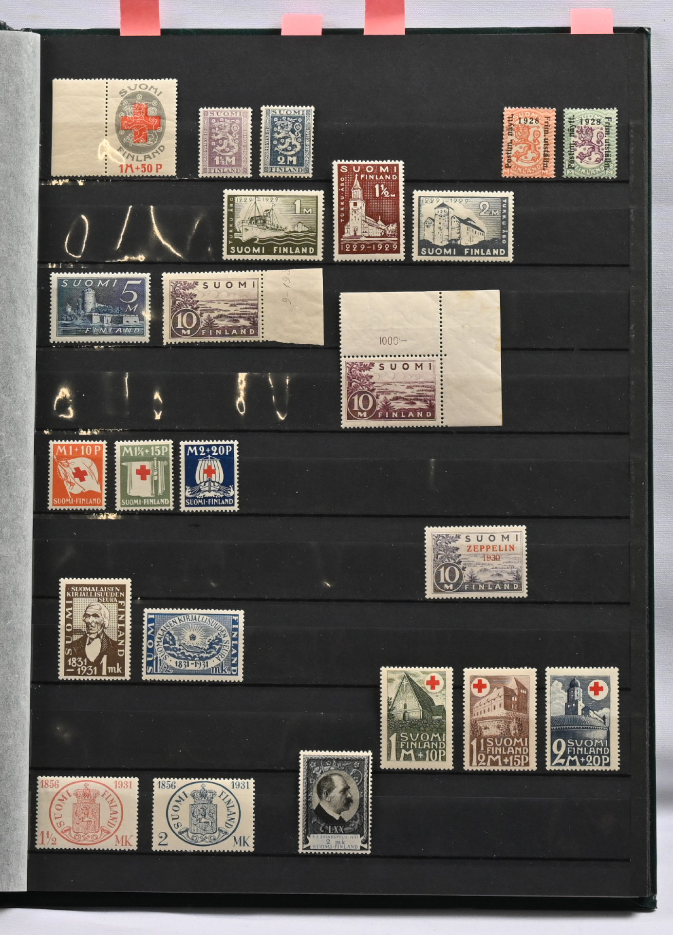 1922 - 1969 erä postituoretta ** säiliökirjassa. Mm. Zeppelin, 1930-luvun PR-sarjoja, 1938 FIS, Itä-Karjalaa ym