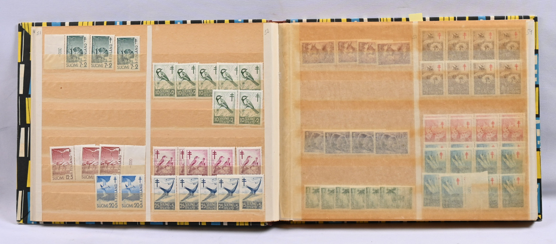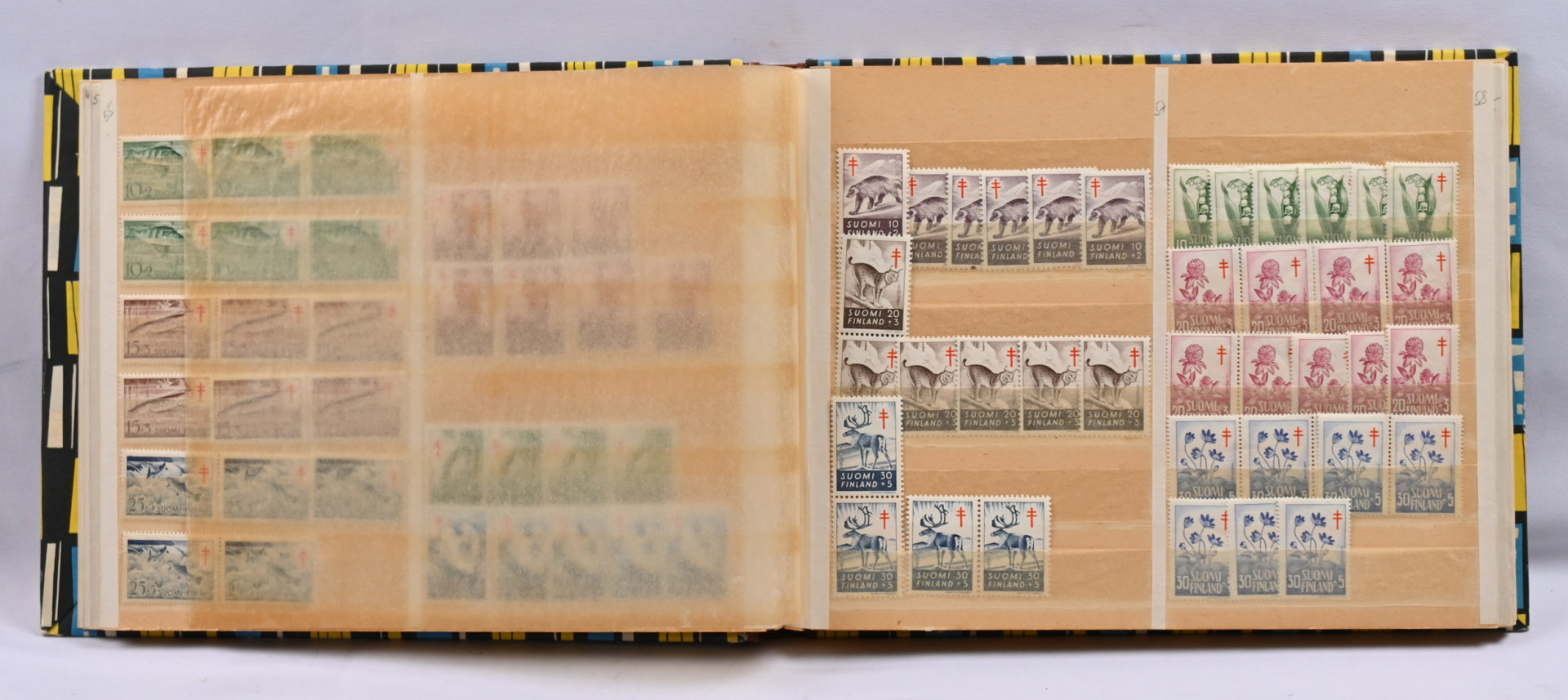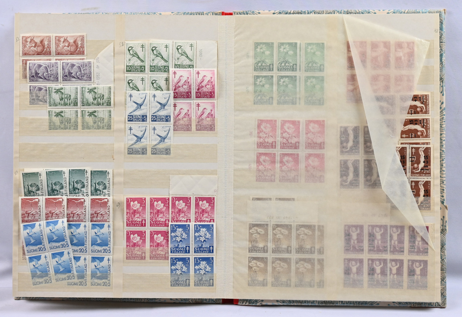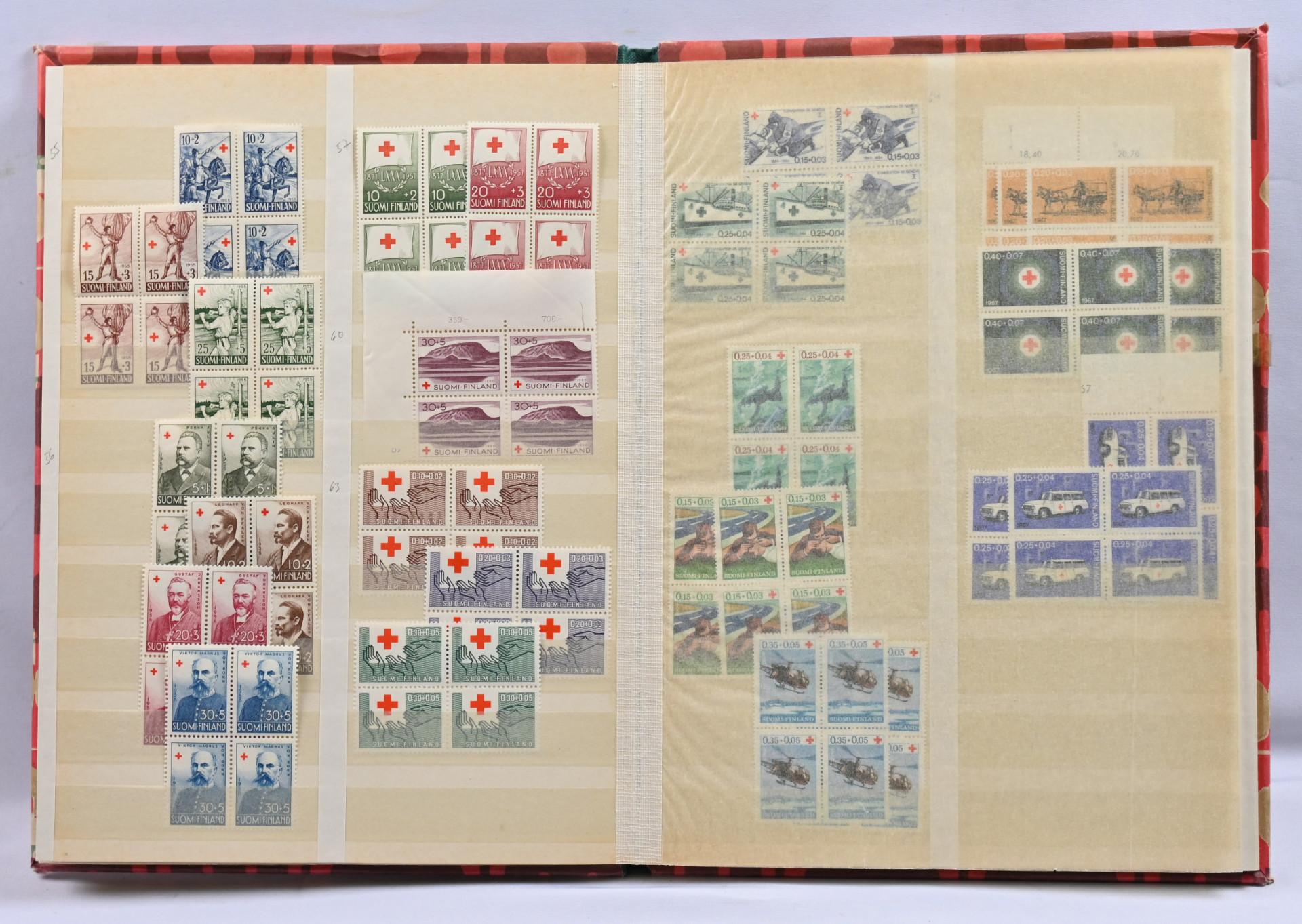 1922 - 1990 runsas erä postituoretta ** punaristia ja tubia neljässä vanhassa säiliökirjassa. Paljon nelilöitä ym