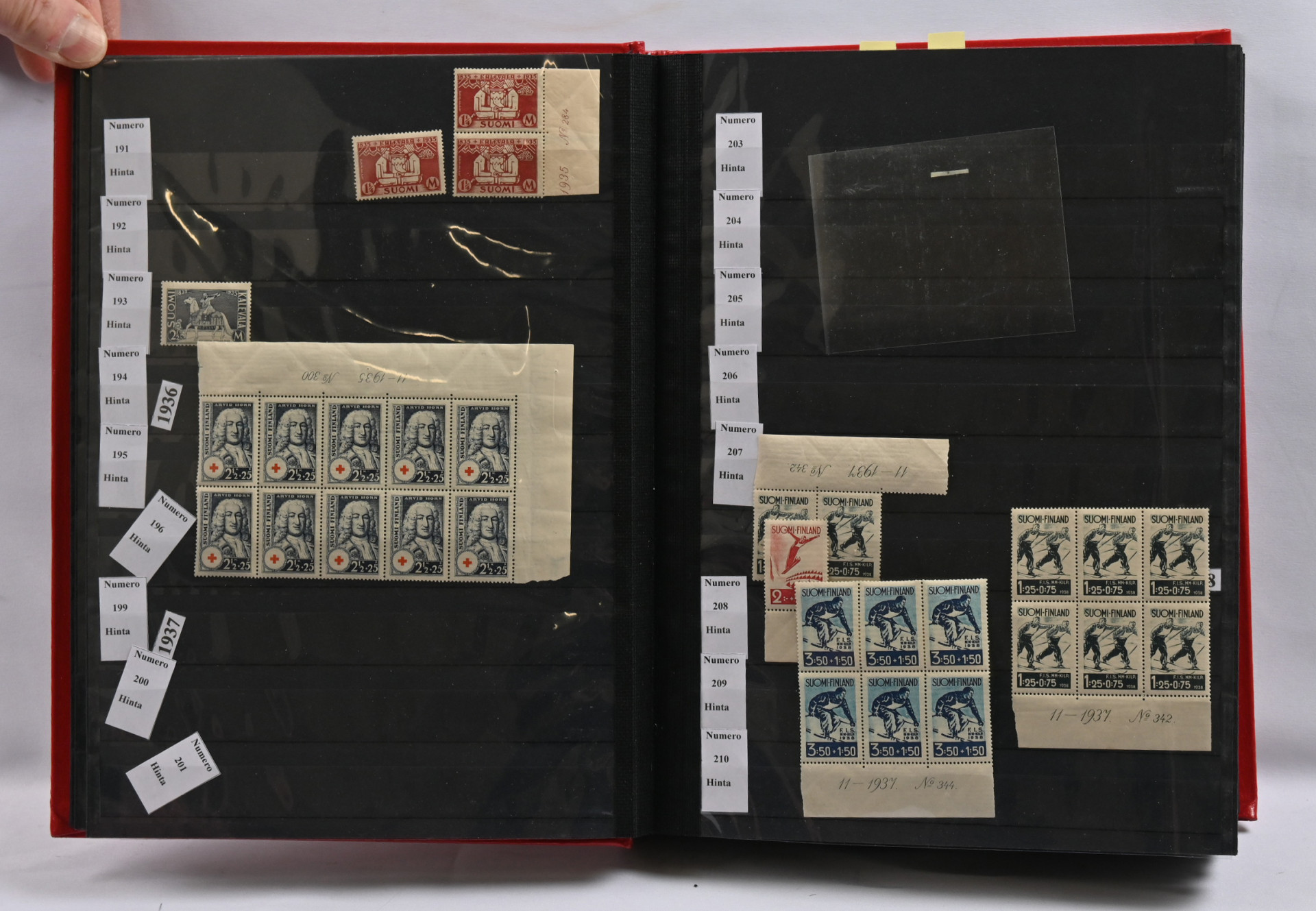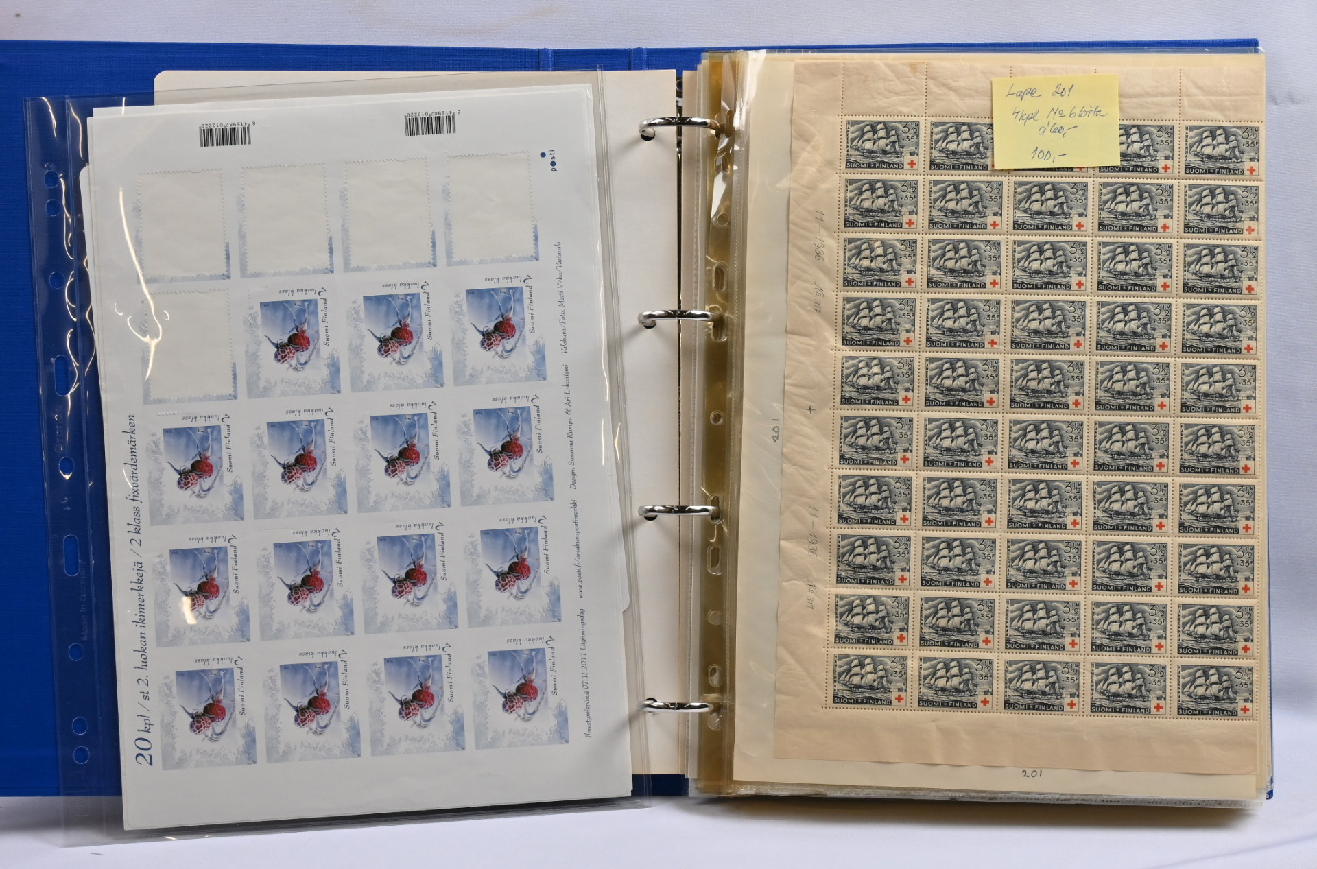 Varastoerä pääosin postituoretta ** kahdessa säiliökirjassa 1929 - 1980-luvun lopulle. Lisäksi kahdessa mapissa arkkeja m/17 alkaen