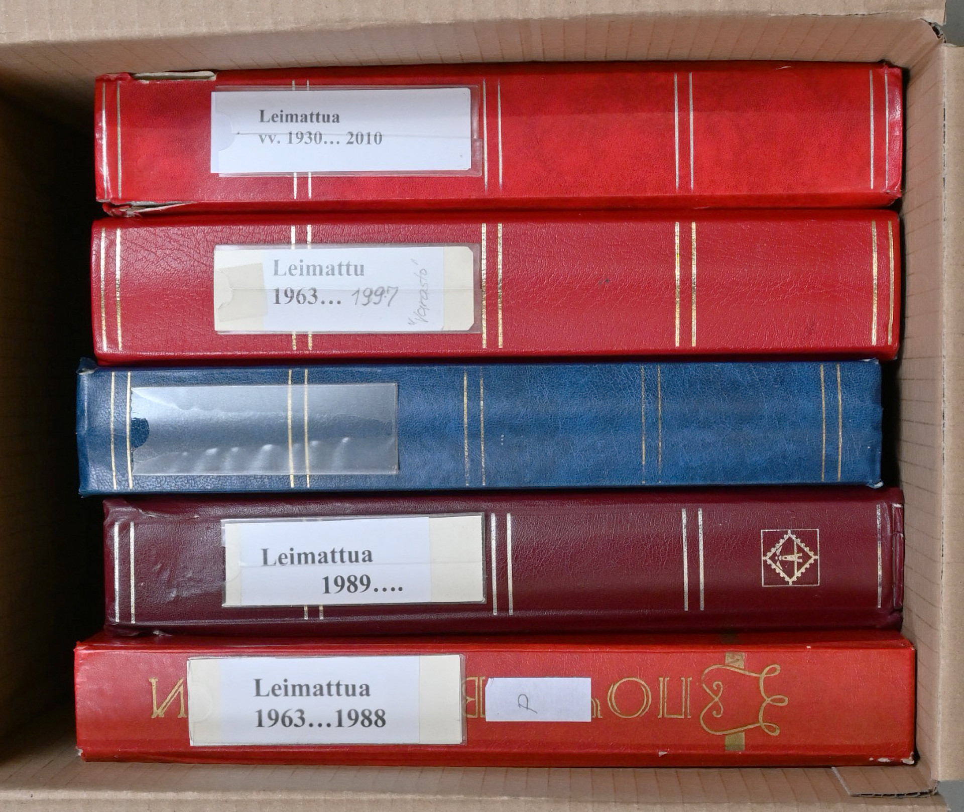 Varastoerä viidessä paksussa säiliökirjassa pääosin leimattua mm. loistoleimoja!