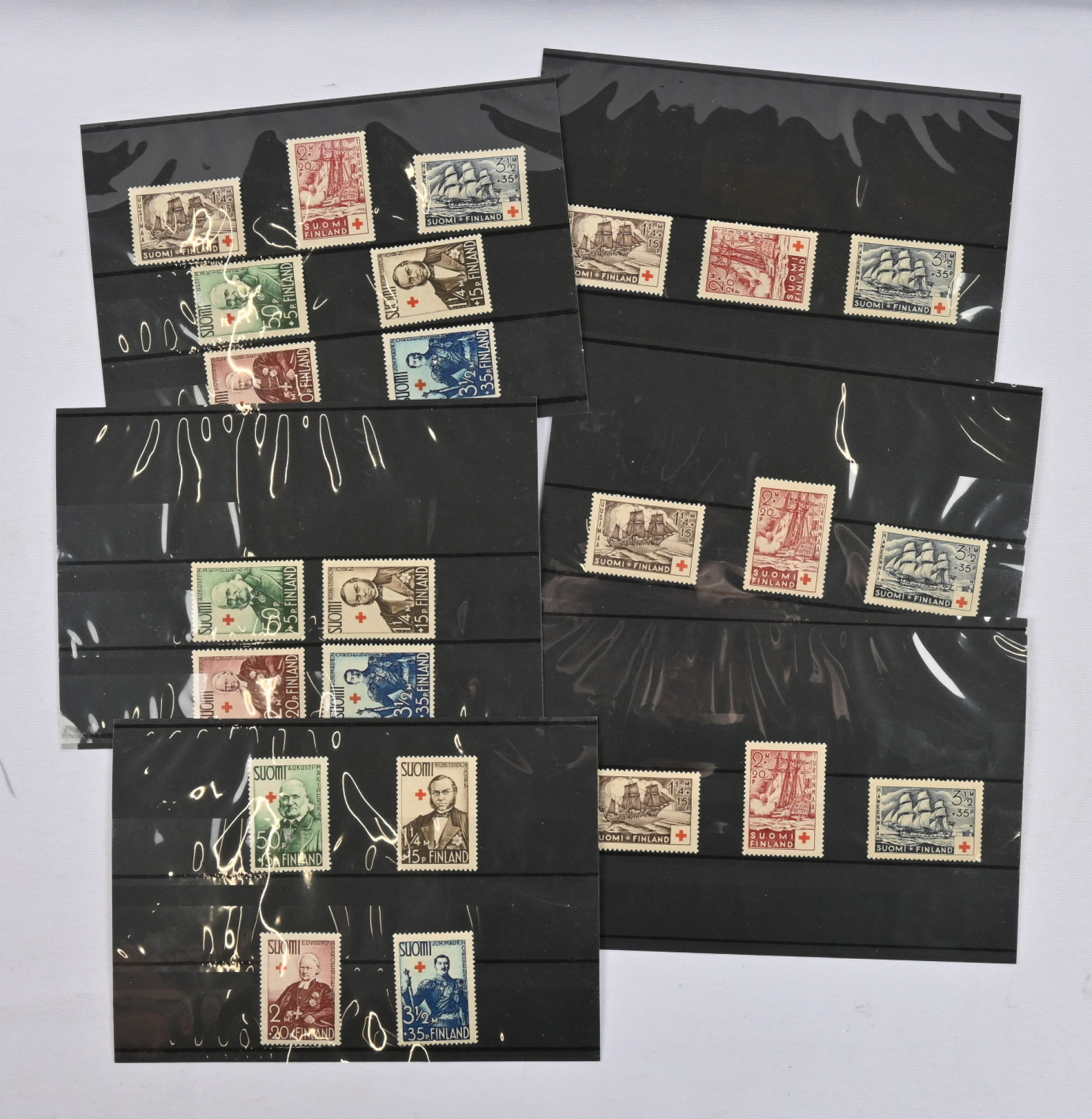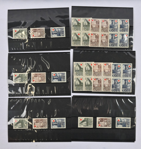 1931 alkaen hyvä erä Punaisen Ristin ja tuberkuloosin sarjoja yli 130 varastokortilla! Ilmeisesti vain postituoretta ** materiaalia, mm. Punainen Risti 1931 kaksi nelilösarjaa, vuosien 1931, 1937, 1939 sarjoja useampia jne.