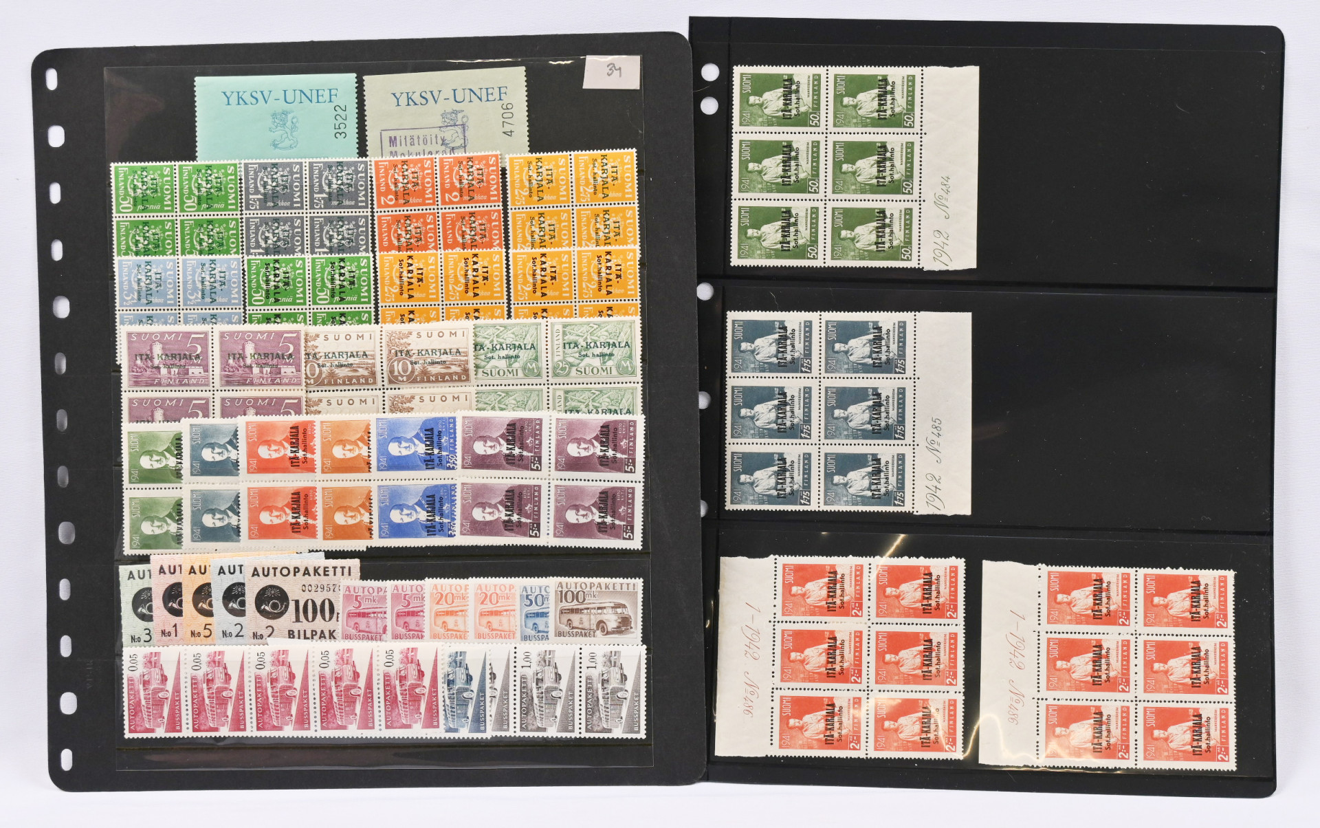 Reuna-alueita erä sivuilla pääosin postituoretta ** mm. YK pakettimerkkejä, Autopakettia, Itä-Karjalaa
