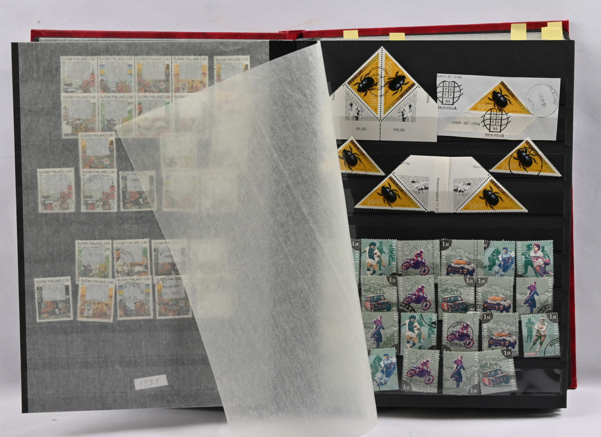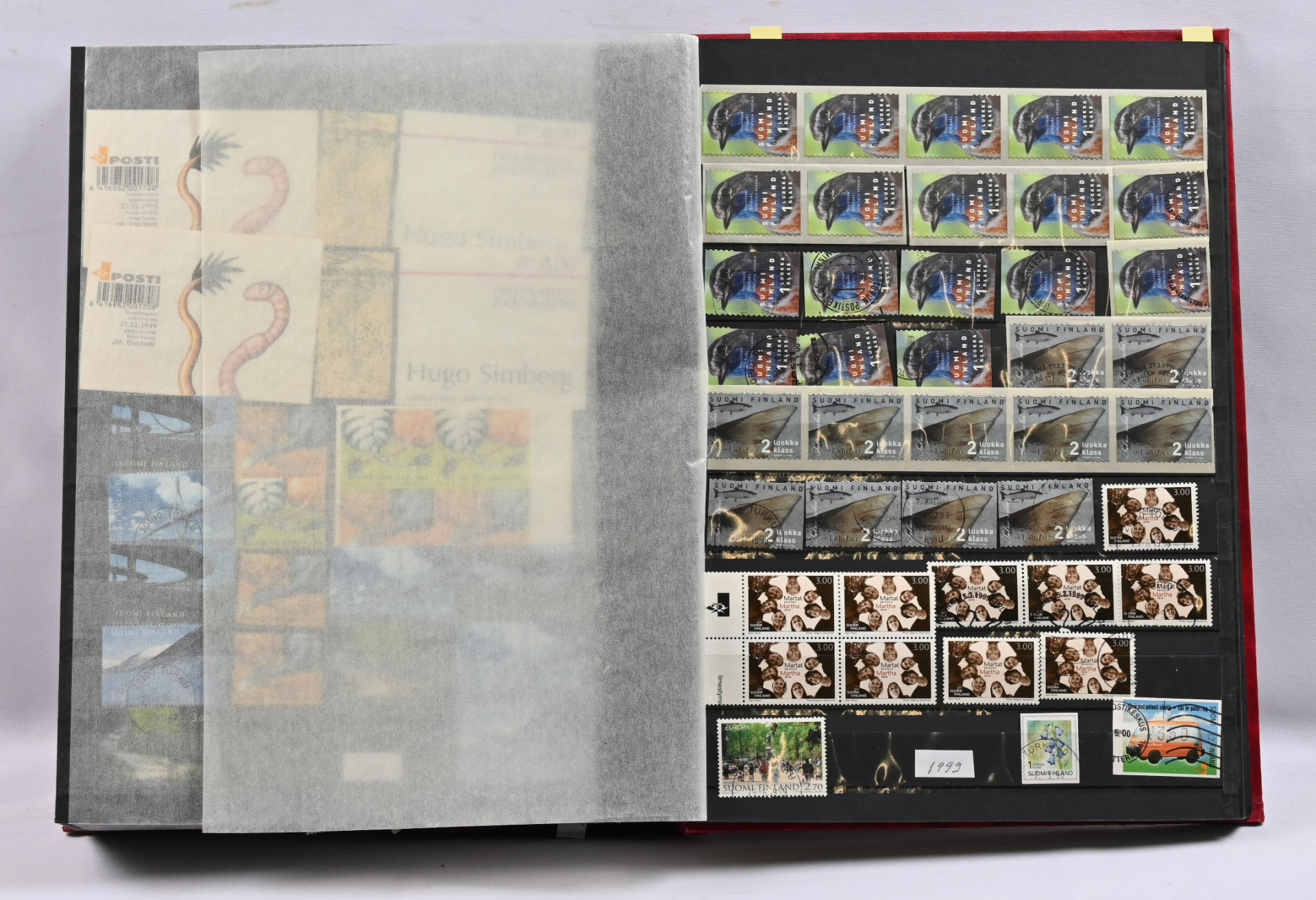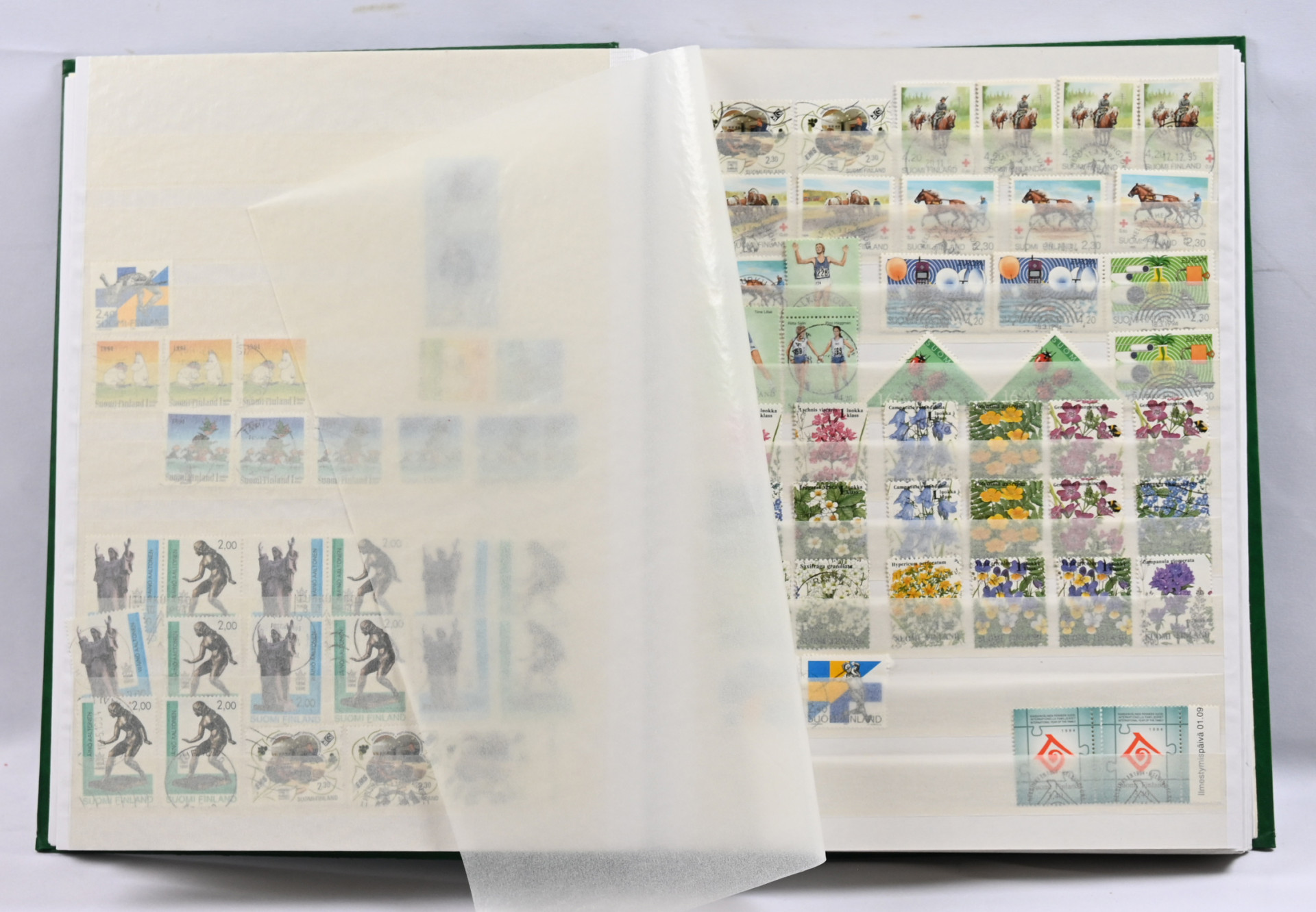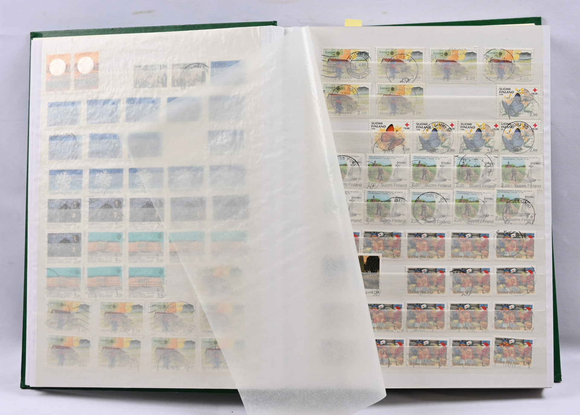 1980-luvulta 2000-luvun alkuun leimattu varastoerä kahdessa paksussa säiliökirjassa leimattua mm. loistoja ja postituoretta ** myös ikimerkkejä, joiden nimellisarvo jo yli 300€!