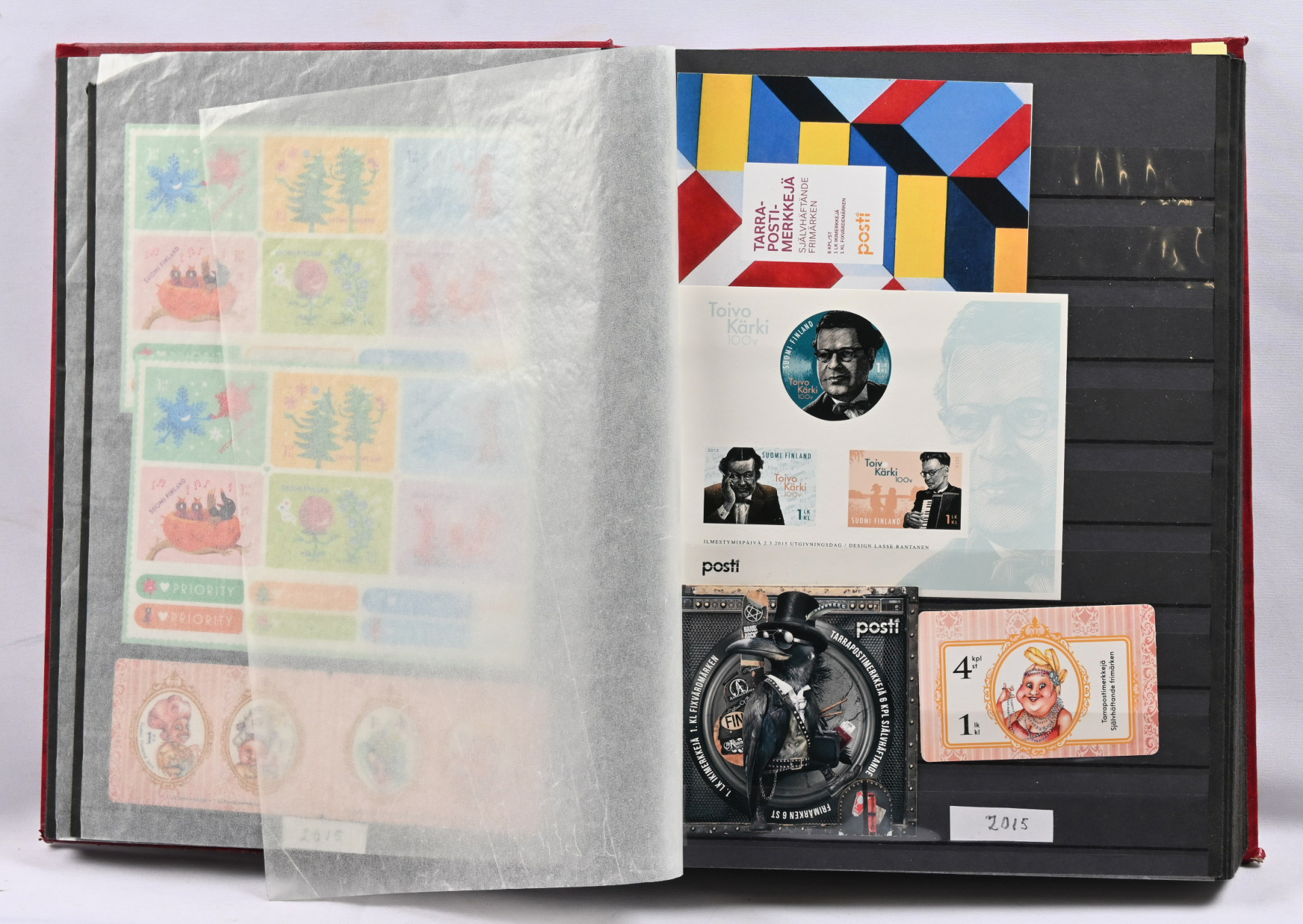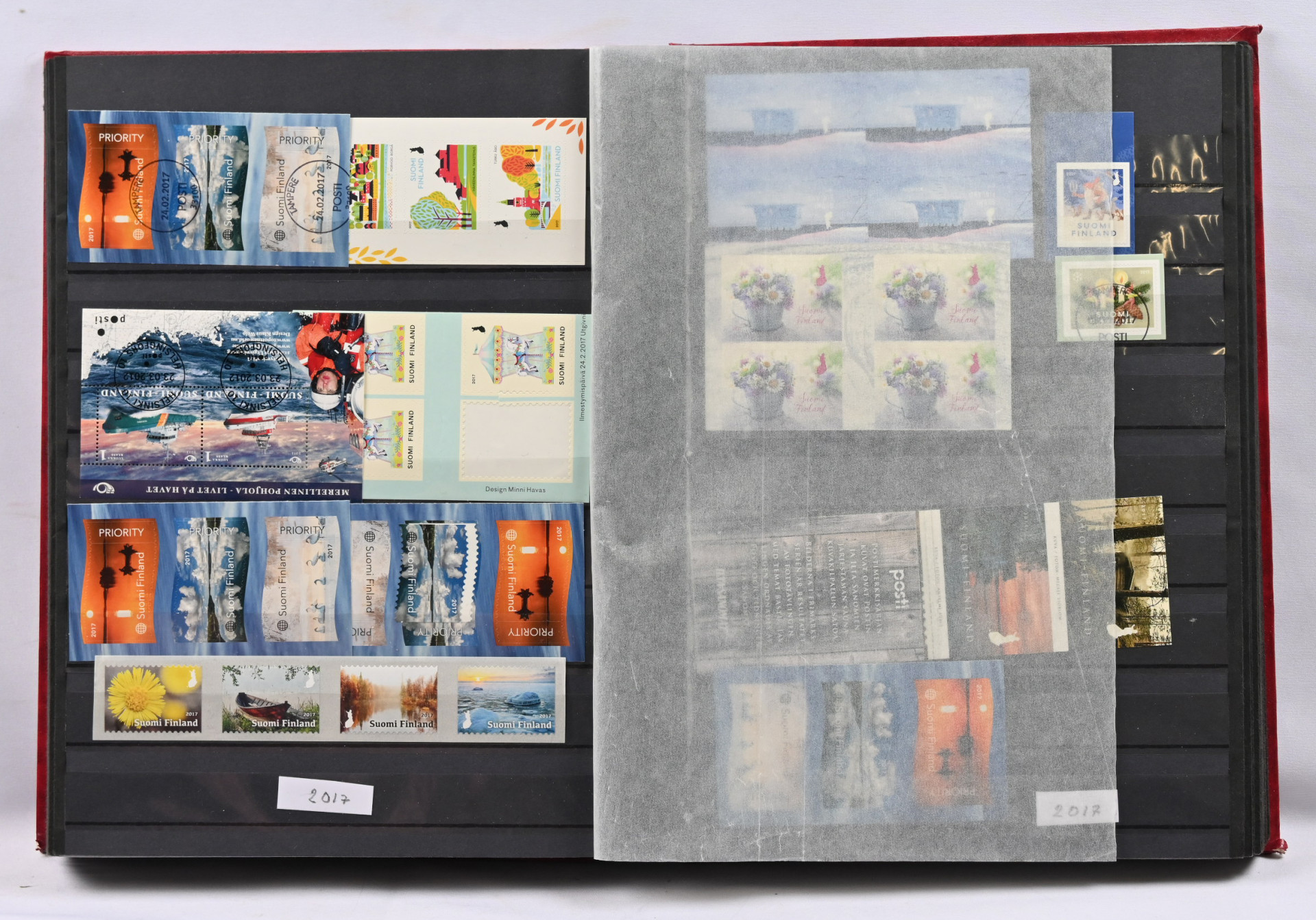 2015 - 17 varastoerä paksussa säiliökirjassa materiaalia leimattua ja postituoretta ** nimellisarvo jo yli 900€
